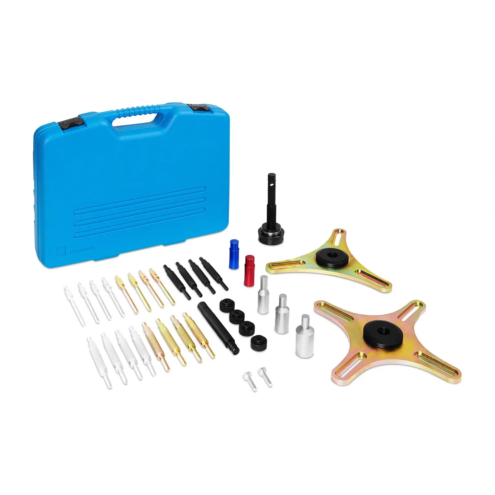 MSW: n SAC-kytkintyökalua MSW-SAC34. 2 käytetään SAC-kytkimien esijännittämiseen ja ammattimaiseen asentamiseen ja irrottamiseen erilaisissa ajoneuvotyypeissä. Ammattityökalusarja sisältää 48 erilaista työkalua, ja sitä voidaan käyttää useiden kytkimien työstämiseen. Laadukas asennussarja on siksi ihanteellinen ratkaisu kytkintöihin sekä ammattikorjaamossa että harrastelija-autotalleissa. Ammattimaisen kytkintyökalusarjan avulla itsesäätyvät kytkimet (SAC = self adjusting clutch= itsesäätyvä kytkin) on helppo asentaa ja purkaa. Yksittäiset työkaluelementit on valmistettu kestävästä teräksestä, jotka takaavat korkean vastustuskyvyn ulkoisille olosuhteille ja vakuuttavat siten niiden pitkäaikaisellä kestävyydellään. Työkalusarja tarjoaa turvallisen ja tehokkaan menetelmän SAC-kytkimien asennukseen ja purkamiseen. Erikoistyökalut varmistavat, että vastaava kytkin on esijännitetty ihanteellisesti ennen asennusta tai purkua. Tämä estää vääränläisen kiristyksen, joka mahdollisesti voi johtaa toimintahäiriöön tai vahingoittaa kytkintä. Painelevyn säätörengas on myös suojattu ei-toivotulta kiertymiseltä. Ammattimainen SAC-kytkintyökalu on yhteensopiva useimpien SAC-kytkinten kanssa ja siksi yleiskäyttöinen. Audi, Volkswagen, BMW, Mercedes, Opel, Renault, Alfa Romeo, Volvo, Fiat, Seat, Ford-automerkkien ja monien muiden merkkien kytkimet voidaan korjata, asentaa ja purkaa tällä yhdellä kokoonpanosarjalla. Koska sarjassa on kaksi ylimääräistä esijännityslaitetta, kytkimet voidaan työstää 3- ja 4-reikäjaolla. Työkalusarjassa on yhteensä 48 erilaista osaa, joten sitä voidaan käyttää monenlaisiin töihin. Koko työkalusarja toimitetaan käytännöllisessä muovisessa työkalulaatikossa. Yksittäiset työkaluelementit voidaan käytön jälkeen turvallisesti ja siististi säilyttää kotelossa sen yksittäisten syvennysten ansiosta.