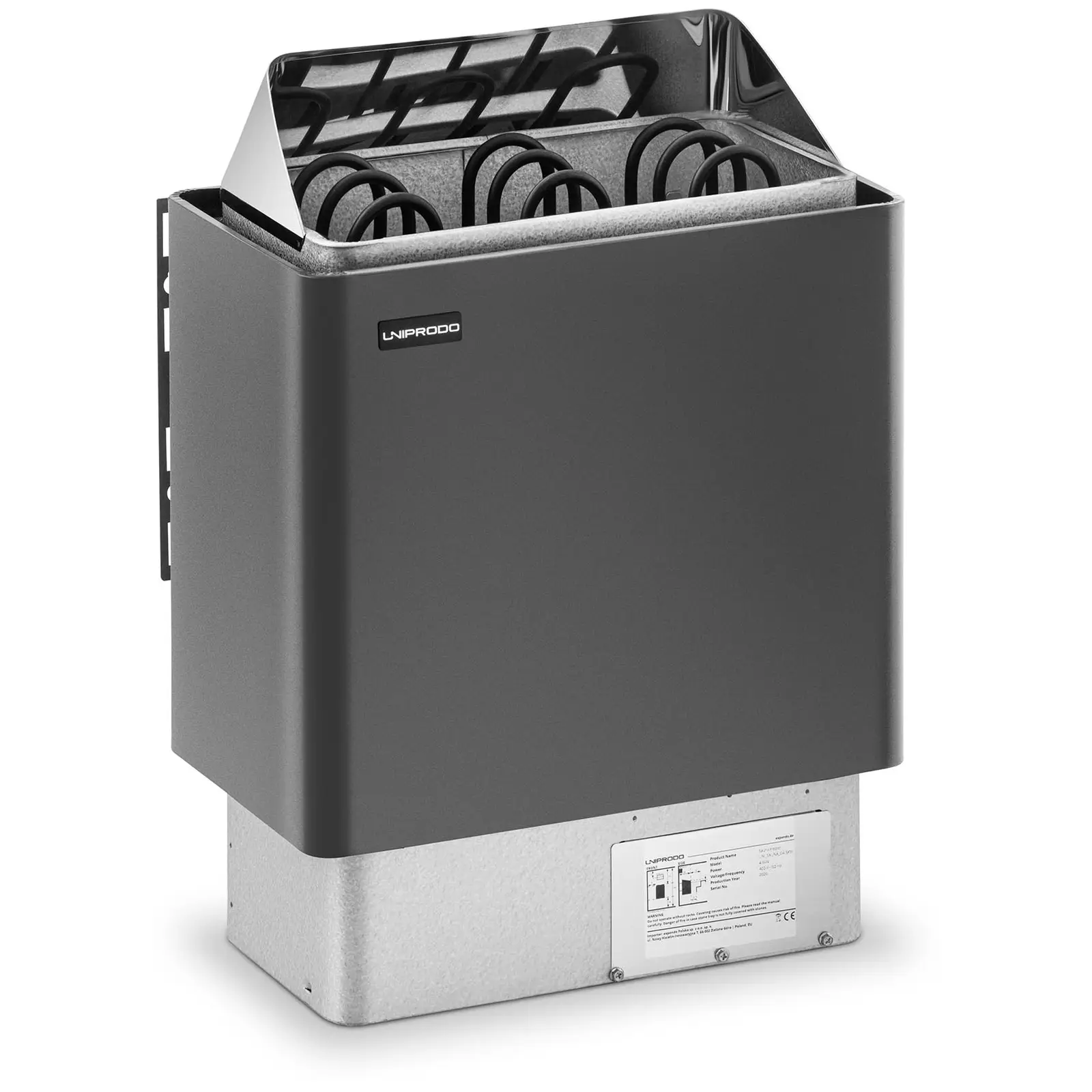 Kauneus ja terveys -tuotteiden ammattilaisen, Uniprodon laajasta sauna-kategoriasta löytyvä sähkökiuas UNI_SAUNA_G4. 5KW, sopii parhaimmiten 4,5 kW tehollaan 3 – 6 m³ saunoihin. Tarvittaessa lujatekoinen laite voidaan kiinnittää myös seinään. Laadukas sähkökiuas kuumenee nopeasti 110 °C:een ja saa sinut hikoilemaan halutussa lämpötilassa optimaalisen lämmönsiirtonsa ansiosta lyhyessä ajassa: 6 m³ sauna saavuttaa jo noin 30 minuutissa 110 °C lämpötilan. Sisäänrakennettu termostaatti takaa sen, että säädetty lämpötila pysyy tasaisena. Sähkökiukaaseen mahtuu jopa 10 kg kiuaskiviä – ihanteellisia tähän tarkoitukseen ovat Uniprodon kiuaskivet UNI_SAUNA_S01. Kiukaan osat on valmistettu korroosionkestävästä alumiini-sinkki-seoksesta. Ulkokuori on päällystetty harmaalla. Lisäksi tehokkaat lämpövastukset ovat korroosionkestäviä ja ruostumattomia. Ylikuumenemissuoja aktivoituu 115 °C:ssa ja takaa turvallisen ja luotettavan saunahetken. Tilaa jo tänään tämä sähkökiuas ja voit nauttia pian rentouttavista saunomishetkistä omassa kotisaunassasi. Tilaa samalla monitoiminnallinen kiukaan ohjauskeskus UNI_SAUNA_C04 tai UNI_SAUNA_C05 – yksilölliseen lämpötilan, päälläoloajan ja valaistuksen säätämiseen.