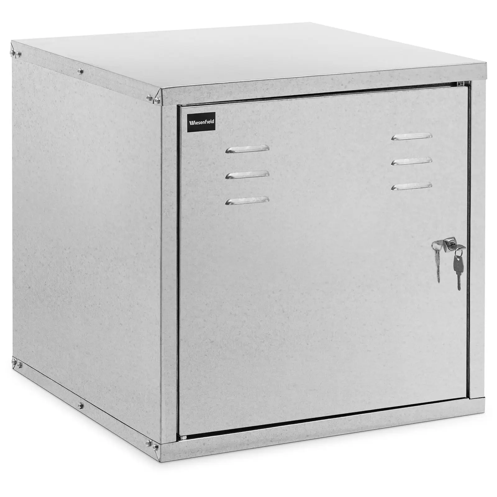 Sinkitystä teräksestä valmistettu satulakaappi Wiesenfieldin maataloustarvikkeiden valikoimasta tarjoaa turvallisen säilytystilan satuloille, suitsille ja harjoille. Vankka ja tukeva, sinkitystä teräksestä valmistettu satulakaappi, jonka mitat ovat 60 x 60 x 60 cm, on oikea tilaihme tallilla. Kaapin yläosassa sijaitseva hylly tarjoaa lisää säilytystilaa ja järjestystä kaappiin. Varustekaappi 0,8 mm paksuilla seinillä ei kulu käytössä ja kestää hyvin ulkoisia vaikutuksia, mikä tekee siitä erittäin pitkäikäisen. Integroidut tuuletusaukot varmistavat optimaalisen ilmankierron ja ehkäisevät siten epämiellyttäviä hajuja. Sileiden pintojen ansiosta voit puhdistaa satulakaapin perusteellisesti ja tehokkaasti hetkessä. Varustekaappi hevoselle säilytyshyllyllä ei ainoastaan tarjoa runsaasti tilaa ja säilytysmahdollisuuksia, vaan se on myös erittäin helppo koota ja asentaa. Toimitus sisältää kaikki tarvittavat asennusmateriaalit, joten tarvitset vain yleiset työkalut tallikaapin pystyttämiseen ja käyttöönottoon.