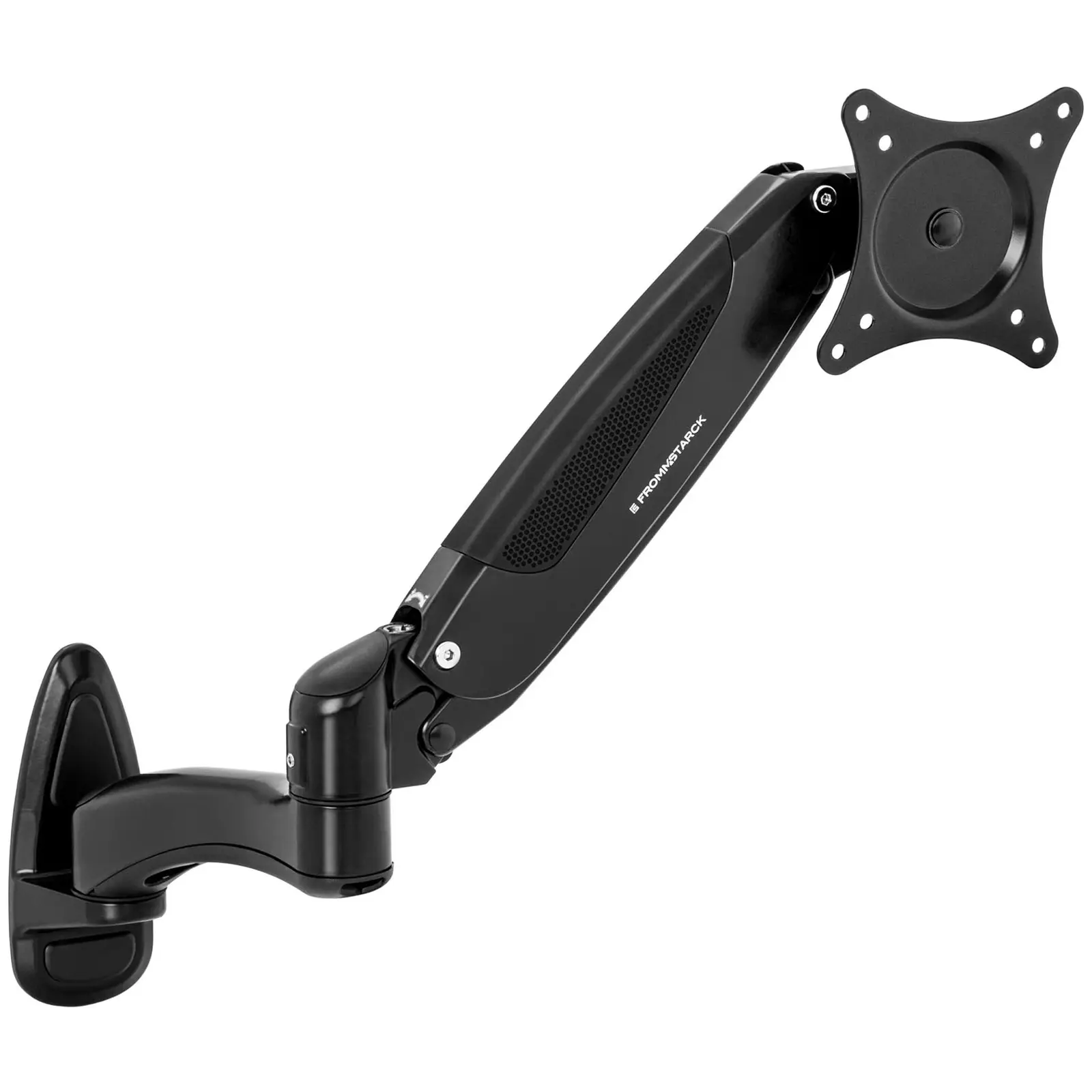 Asenna näyttö seinälle ja tee tilaa työpöydällesi – näytön pidike on säädettävissä sopivaksi yksilöllisiin työhaasteisiisi. Helpon kokoamisen jälkeen monitoria voidaan kääntää ja kallistaa portaattomasti. Lisäksi vartta voi pyörittää. Päivitä toimistokalusteesi ja työskentele tulevaisuudessa ergonomisesti Fromm & Starck-sarjan näyttövarsien avulla! Universaalia monitorivartta voidaan käyttää kaikissa vakiomalleissa, joiden näytön läpimitta on 15 ”- 27”. Painevaletusta alumiinista valmistettu vakaa ja kestävä rakenne sallii 8 kg:n maksimikuormituksen. Näyttö asetetaan varteen asennuslevyn avulla, jossa olevat rei´ät ovat 75 x 75 mm:n tai 100 x 100 mm:n etäisyydessä toisistaa (VESA-standardi). Tämän näyttövarren lyömätön etu on kuitenkin sen ihanteelliset asetusmahdollisuudet ja niiden mukanaan tuoma toimistolaitteiden joustavuus: liikkuvaa näyttövartta voidaan sujuvasti kallistaa -90 ° – 84 °, kiertää 360 ° ja kääntää 180 ° kaasujousella sen portaattoman säätömahdollisuuden ansiosta. Etäisyyttä monitoriin ja katselukulmaa voidaan helposti muuttaa ja mukauttaa kulloisinkiin tarpeisiin. Silmät, kaula ja selkä pääsevät helpommalla ja tietokoneella työskenteleminen on miellyttävämpää ja terveellisempää. Myös työtulosten esittäminen tai niistä keskusteleminen muiden työntekijöiden kanssa on helppoa, vakuuttavaa ja ammattimaista näyttövarren avulla.