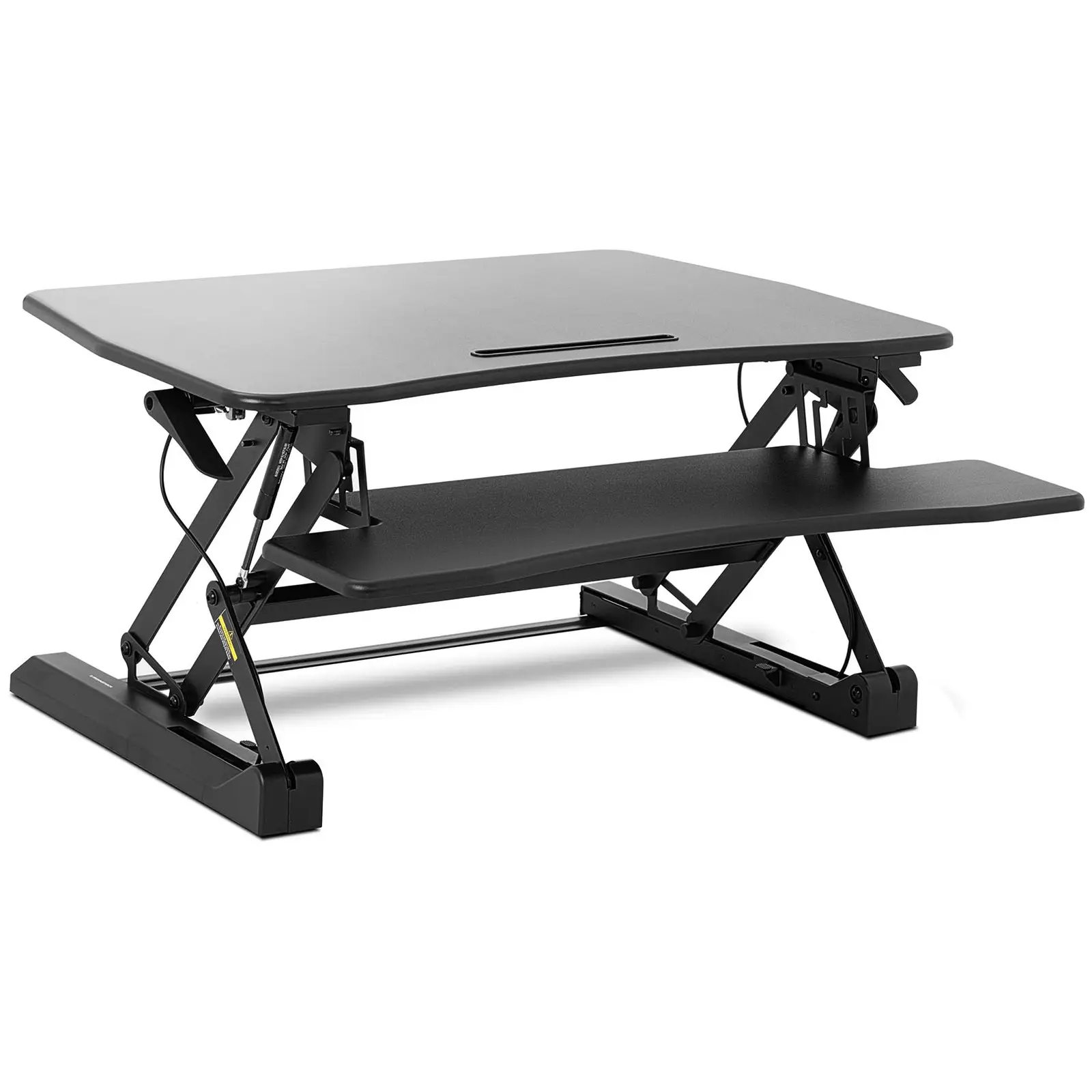 Joudutko sinäkin istumaan pitkiä aikoja työpaikallasi? Sattuuko selkääsi? Toimistokalusteiden asiantuntijoiden, Fromm & Starckin STAR_SSD_02-seisomatyöpisteellä voit muuntaa minkä tahansa yleisen toimistopöydän ergonomiseksi seisomatyöpisteeksi muutamassa sekunnissa. Vain sinä päätät, käytätkö tietokonetta istuessasi vai seisoessasi. Koko päivän toimistossa istuminen ei ole hyväksi terveydellesi, mutta tuntikausien seisominenkaan ei ole paras vaihtoehto! Miksi et siis luo itsellesi terveellistä tasapainoa päivittäisessä työssäsi ja vaihda yksinkertaisesti työasentoja useammin. Kahdeksankertainen korkeuden säätö 16,5-41,5 cm:n välillä tapahtuu helposti kahdella, työtason alla sijaitsevalla kätevällä vivulla. Kahden hydraulisen kaasupainejousen ansiosta työtaso ja näppäimistöalusta voidaan asettaa vaivattomasti haluttuun asentoon. Tilavalla 90 x 50 cm:n tasolla on tarpeeksi tilaa kahdelle näytölle. Tämän kuitulevystä ja teräskehyksestä valmistetun seisomatyöpisteen vakaa ja pitkäikäinen rakenne on erittäin kestävä: Näin työtason maksimikantavuus on 15 kg. Näppäimistön ja hiiren alusta kestää maksimissaan 2 kg:npainon. Korkeussäädettävän seisomatyöpisteen avulla voit paitsi parantaa ryhtiäsi myös edistää keskittymiskykyäsi ja siten lisätä tuottavuuttasi. Tutkimusten mukaan päätökset tehdään jopa 20 prosenttia nopeammin seisoma-asennossa, koska elimistön verenkierto toimii paremmin. Lisäksi seisominen ei ole ainoastaan hyödyllistä ruuansulatukselle ja hengitykselle, vaan kulutat myös n. 30 prosenttia enemmän kaloreita. Työpiste, jolla voit istua että seistä, on terveellinen ja hyödyllinen lisä jokaiseen toimistoon, lääkärin vastaanotolle tai kodin työhuoneeseen