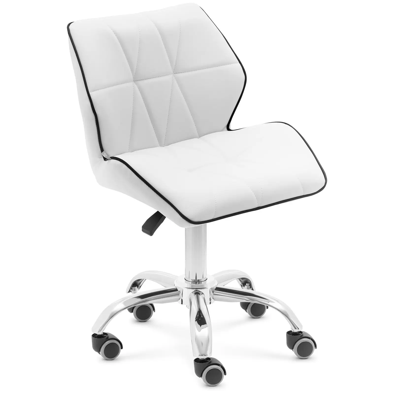 Onko työsi kampaamossa, kauneushoitolassa, toimistossa tai lääkärin vastaanotolla monipuolista ja vaatii paljon liikkumista? Valitse sitten käyttöösi joustava työjakkara ELGG WHITE physalta! Istuitpa sillä lyhyen tai pitkän aikaa, löydät aina työllesi parhaan asennon. Sen toimiva muotoilu ja hillitty, valkoinen värimaailma sopivat lähes kaikkiin käyttökohteisiin, joissa tarvitaan suurta liikkuvuutta. ELGG WHITE tarjoaa sinulle monia hyödyllisiä tietoja. Viidellä pehmeästi rullaavilla pyörillä voit viedä sen haluamaasi paikkaan. Kaasujousen avulla voit säätää työjakkaran istuinkorkeutta välillä 45 ja 59 cm. Näin pidät sen aina sopivassa asennossa ja istut rennosti. Tarvittaessa käännä jakkaraa 360° oman akselinsa ympäri. Pehmustetulla istuimella, jonka halkaisija on 48 x 39 cm, voit istua mukavasti jopa pitkiä aikoja. Mukavuuden maksimoimiseksi myös tuolin selkänoja on verhoiltu. Tämä selkänojallinen työtuoli tekee vaikutuksen vankalla rakenteellaan, joka kantaa jopa 150 kg. Työskenteletkö nesteiden tai pölyisten aineiden kanssa? Käytetyt materiaalit, kuten PU-synteettinen nahka ja alumiiniseos, ovat helppoja puhdistaa. Lisäksi istuimen päällinen on pölyä ja vettä hylkivä, mikä pitää työjakkaran jo itsessään siistinä.