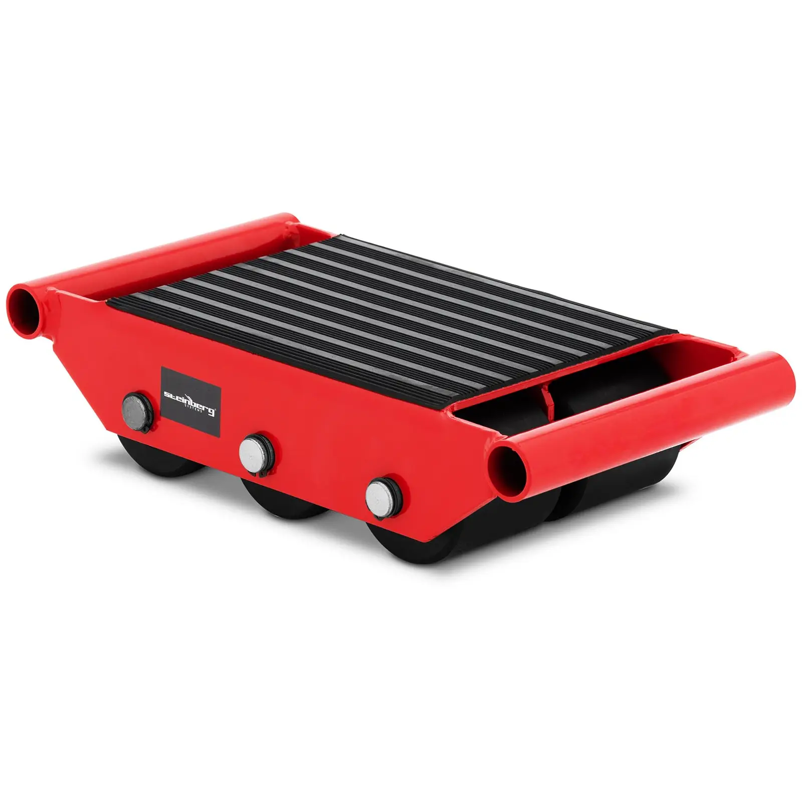 Steinberg Systemsin siirtoalustan avulla voit liikuttaa jopa 6000 kg:n painoisia kuormia helposti, turvallisesti ja kustannustehokkaasti. Kestävä siirtoalusta on täydellinen ratkaisu koneenrakennuksessa, autoteollisuudessa, tuotantolinjoilla tai missä tahansa, missä sinun täytyy kuljettaa raskaita kuormia paikasta toiseen. Kestävä siirtorulla on valmistettu punaiseksi maalatusta teräksestä ja tarjoaa ihanteellista liikkuvuutta 3 akselillaan ja 6 kevyesti pyörivällä pyörällään. Matalan korkeuden ansiosta kuormat on helppo asettaa alustan päälle, sillä sinun tarvitsee nostaa niitä vain vähän. Tällainen matala siirtoalusta myös vähentää kuorman kaatumisriskiä. Lisäksi 260 x 165 mm suuri kuljetuspinta profiloidulla kumipinnoitteella tarjoaa turvallisen alustan kuljetettavalle tavaralle. Kuljetusalusta sisältää kaksi kahvaa, jotka helpottavat sen ohjaamista. Samalla kulutusta kestävästä nylonista valmistetut Ø 85 x 85 mm:n kokoiset pyörät tarjoavat tasaisen kuljetuksen monenlaisilla pinnoilla. Laadukkaat materiaalit ja vankka työstö eivät ainoastaan takaa joustavia käyttömahdollisuuksia, vaan myös erittäin pitkän käyttöiän.