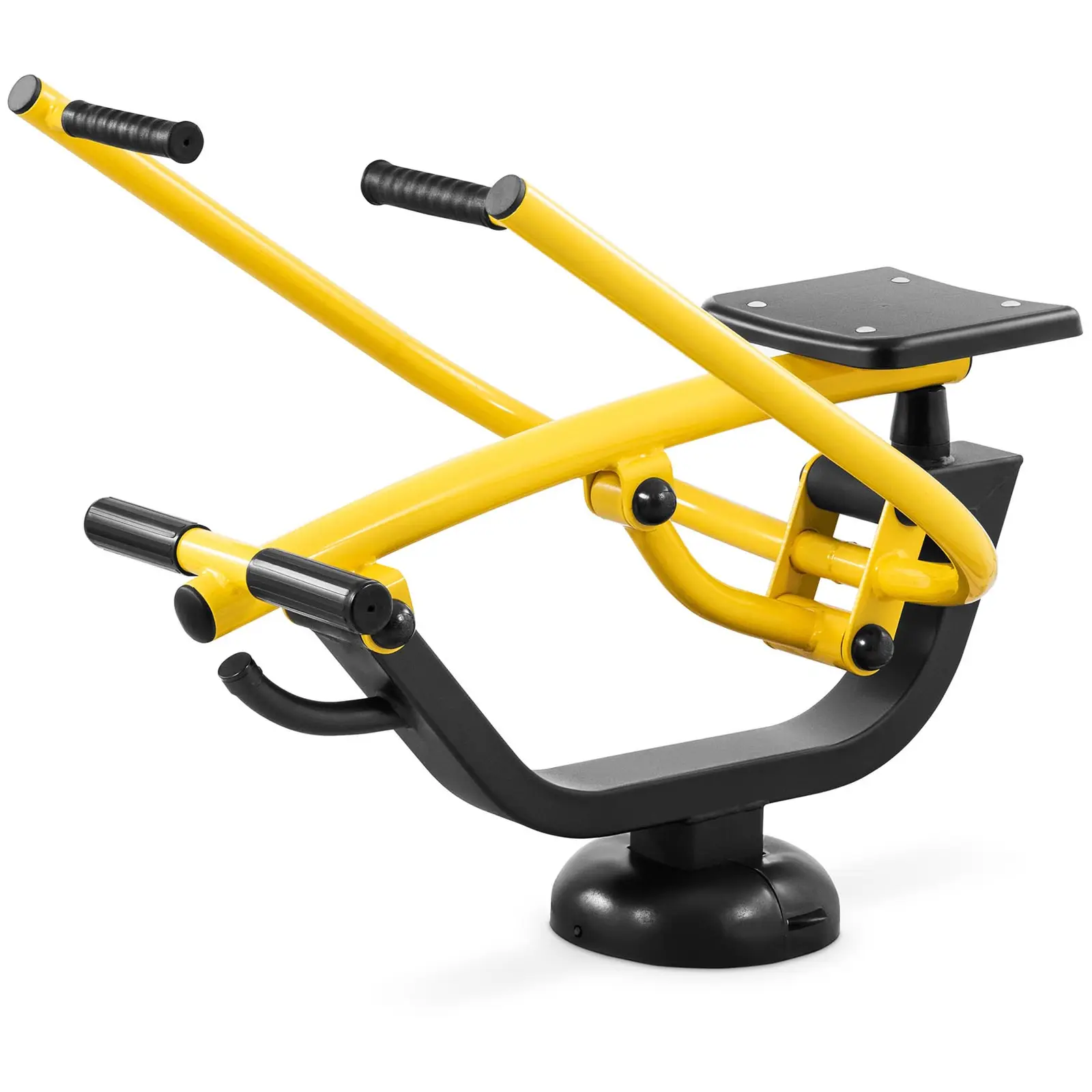 Gymrexin soutulaite GR-MG71 mahdollistaa helpon ja intensiivisen treenin tuki-, käsi- ja jalkalihaksille raikkaassa ilmassa. Ulkokuntoilulaite sopii erinomaisesti ulkokuntosaleihin ja kuntoilupuistoihin, koska se on rakenteeltaan lujatekoinen ja valmistettu säänkestävistä materiaaleista. Helppokäyttöisyytensä ansiosta laitetta voivat käyttää kaikenikäiset erilaisilla harjoittelutasoilla Soutulaite on yksi suosituimmista kuntoiluvälineistä, koska se sopii kaikentasoisille treenaajille. Laite jäljittelee liikkeitä, joita teet soutaessasi venettä. Koko vartalo on liikkeessä. Näin voit treenata soutulaitteella sekä käsiä ja jalkoja että tukilihaksia. Vauhdista riippuen soutuliikkeet toimivat lämmittelynä tai intensiivisenä kokovartalotreeninä. Käyttö on intuitiivista ja turvallista: istu istuimelle, laita jalat polkimille ja tee soutuliikkeitä pehmustetuilla kahvoilla. Säännöllinen harjoittelu ulkoliikuntavälineillä parantaa yleiskuntoa ja voi ehkäistä selkäkipuja. Teräksestä valmistettu soutulaite sopii erinomaisesti jatkuvaan ulkokäyttöön. Korroosionkestävät materiaalit kestävät tuulta ja säätä pitkään. Vankka rakenne ehkäisee ilkivallan aiheuttamia vahinkoja. Ulkoliikuntavälineen paino on 46,9 kg ja sen voi ankkuroida tukevasti maahan. Muoviset istuimet on varustettu 30 mm paksulla pehmusteella. Visuaalisesti näyttävän laitteen kahvat on valmistettu polyvinyylikloridista (PVC) ja ne antavat hyvän pidon harjoitteluun. PVC kestää valoa erinomaisesti ja on kulumaton, joten se edistää soutulaitteen pitkäikäisyyttä. Asennussuositus: huomioi soutulaitteen ympärillä tarvittava 4000 x 3900 mm turva-alue.