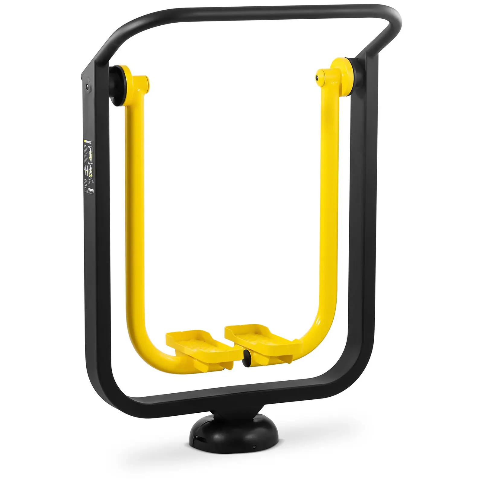 Gymrexin stepperi GR-MG68 mahdollistaa pakaroiden ja lantionpohjan lihasten helpon harjoittelun raikkaassa ilmassa. Ulkokuntoilulaite sopii erinomaisesti ulkokuntosaleihin ja kuntoilupuistoihin, koska se on rakenteeltaan lujatekoinen ja valmistettu säänkestävistä materiaaleista. Helppokäyttöisyytensä ansiosta laitetta voivat käyttää kaikenikäiset erilaisilla harjoittelutasoilla Stepperi on yksi ergonomisimmista kuntoiluvälineistä, sillä se ei rasita polvia tai nilkkoja. Täten se on sopiva kaikenikäisille kunnosta riippumatta. Laite jäljittelee liikkeitä, joita teet kävellessäsi tai hölkätessäsi. Koko alavartalo on liikkeessä. Näin voit treenata sekä jalkoja että lantiota ja ylävartaloa ulkokuntoilulaitteella. Vauhdista riippuen liikkeet toimivat lämmittelynä tai intensiivisenä jalkatreeninä. Käyttö on intuitiivista ja turvallista: laita jalat yksinkertaisesti polkimille, pidä käsilläsi kiinni poikkitangosta ja tee hitaasti kävelyliikkeitä. Säännöllinen harjoittelu ulkoliikuntavälineillä parantaa kestävyyttä ja vahvistaa sydän- ja verisuonijärjestelmää. Teräksestä valmistettu stepperi sopii erinomaisesti jatkuvaan ulkokäyttöön. Korroosionkestävät materiaalit kestävät tuulta ja säätä pitkään. Vankka rakenne ehkäisee ilkivallan aiheuttamia vahinkoja. Ulkoliikuntavälineen paino on 59,5 kg ja sen voi ankkuroida tukevasti maahan. Visuaalisesti näyttävän laitteen kahva antaa hyvän pidon harjoitteluun. Asennussuositus: huomioi stepperin ympärillä tarvittava 3510 x 4030 mm turva-alue.