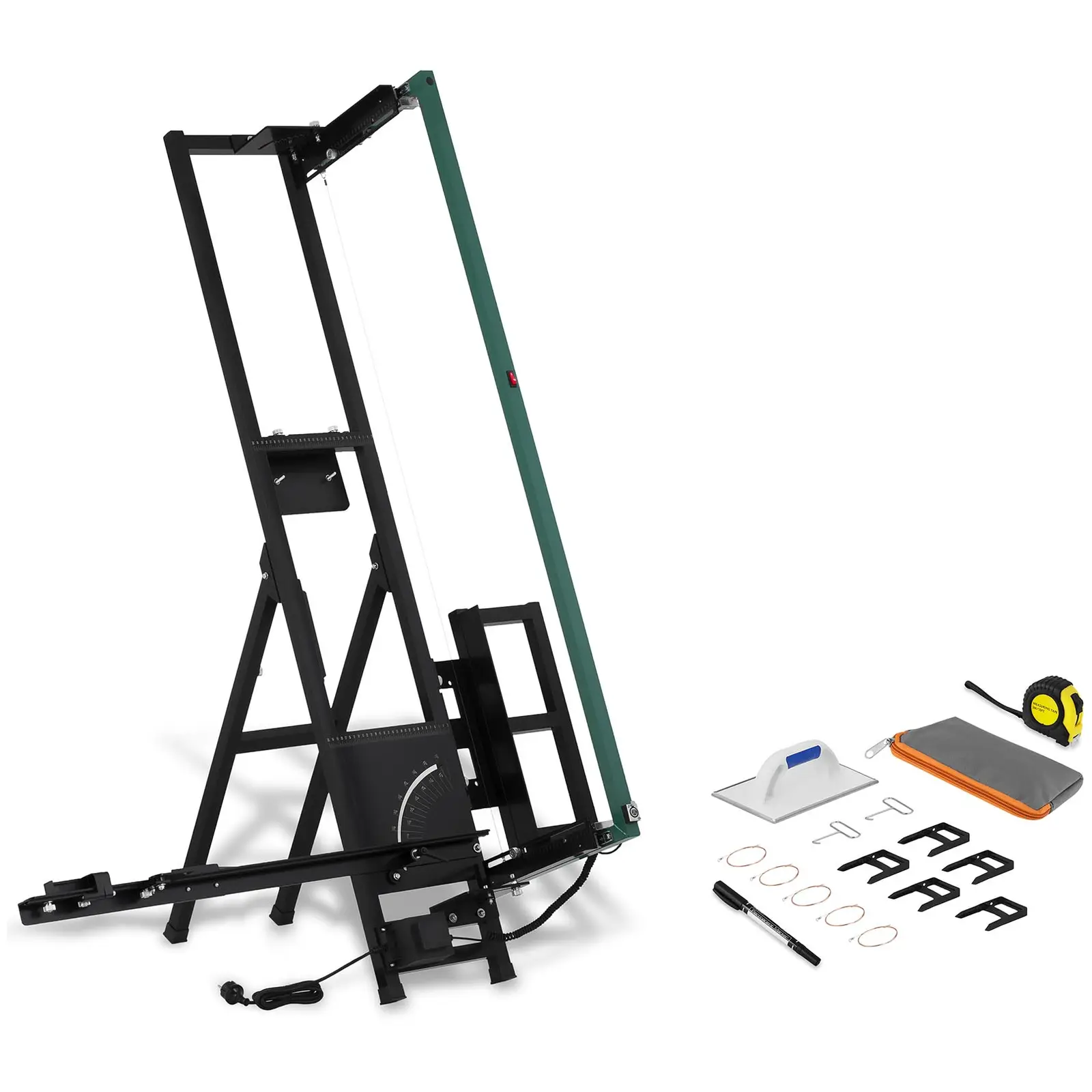 Pro Bauteamin styrox-leikkuri Alucutter on optimaalinen kuumalankaleikkuri eristysmateriaalin leikkaamiseen keskikokoisten ja isohkojen rakennusten remonteissa ja saneerauksissa. Ammattimainen styrox- ja routaeristelevyjen leikkaaminen sujuu tällä työkalulla millimetrin tarkkuudella. Lankaleikkuri Alucutter leikkaa isotkin eristelevyt vaivatta jopa 1 350 mm:n matkalta ja 330 mm syvyyteen. Sivuttaisvaste estää kookkaiden levyjen luiskahtamisen pois paikaltaan. Tämä minimoi leikkuuvirheet ja -jäänteet. Tehokas 200 W:n muuntaja kuumentaa leikkuulangan 1 – 2 sekunnissa ja on myös luotettava jatkuvassa käytössä. Leikkuulanka pysyy jatkuvasti kireänä jousitetun ripustusmekanisminsa ansiosta. Leikattaessa lanka liukuu vaivattomasti ohjauskiskoa pitkin eristemateriaalien läpi. Leikkausjälki on aina suora, sileä ja siisti. Laitteen etuna on myös sen soveltuvuus ulkokäyttöön rakennustyömaille. Huono sää ei ole tälle styrox-leikkurille mikään este. Muuntajan suojausluokka on IP68, eli se on vesitiivis. Leikkurin sangan ja muuntajan väliset sähköliitännät ovat XLR-teollisuusstandardin mukaisia ja ne ovat roiskevesisuojattuja. Sade ja kosteus eivät vaikuta niiden toimintaan. Laite on vankkuutensa ohella myös huipputarkka käytössä. Alucutter leikkaa millimetrin tarkkuudella leikkuupituuden, -syvyyden ja -kulman hienosäätömahdollisuuksien ansiosta. Pitkää levykannatinta voi kallistaa asteikon avulla erilaisiin kulmiin, jotka sallivat jiirileikkaukset sekä vaaka- että pystysuunnassa. Alucutterin syvyysrajoitin ja pidike takaavat, että leikattava materiaali pysyy kallistetussakin asennossa aina tukevasti ja turvallisesti paikallaan. Styrox-leikkurissa on esiasennetut vastemerkit, joiden avulla voit toistaa leikkauksia nopeasti ja tarkasti. Auki taitettava tukijalka ja telinepidike kuuluvat jo valmiiksi tähän ammattilaisten styrox-leikkuriin. Niiden avulla tämä eristelevyjen leikkauslaite joko seisoo tukevasti rakennustyömaalla tai asennetaan käden käänteessä kiinni rakennustelineeseen. Tukeva ja säänkestävä rakenne pulveripinnoitetusta teräksestä tekee styrox-leikkurista todella kevyen ja helpon kuljettaa. Varsinkin rakennustelineeseen asennettuna sen voi taittaa hetkessä kokoon. Alucutterin mukana toimitetaan viisi styrox-kahvaa. Niiden avulla kokoon leikatuista eristelevyistä saa hyvän otteen, jolloin ne on helppo sijoittaa paikalleen. Lisäksi ne toimivat apuvälineenä kovavaahtolevyjen saumattomassa asennuksessa seinään. Levyt pysyvät paikoillaan, kunnes liima on kuivunut eivätkä pääse liukumaan mihinkään. Toimitukseen kuuluu myös käytännöllinen hiomaraspi.