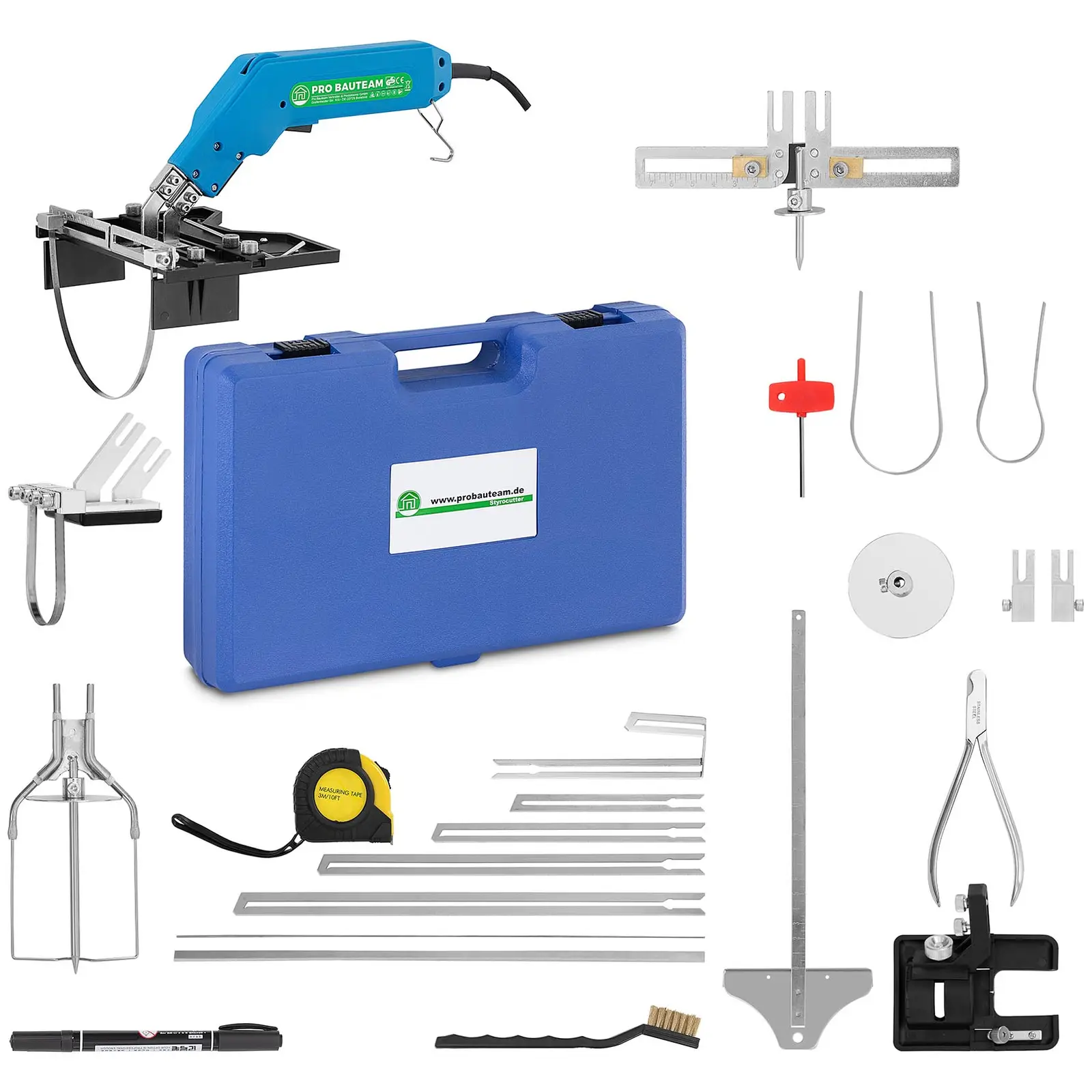 Pro Bauteamin sähkökäyttöinen Styrox-leikkuri STYRO CUTTER PBT04 on kehitetty muun muassa rakennusten eristysmateriaalin ja julkisivujen lisäeristeiden leikkaukseen, yksityiskohtien työstöön, kuten kaapeli- ja putkiaukkojen, pistorasian aukkojen, ikkunanpielien, kattoikkunoiden, pienoismallien tai muiden vastaavien leikkaukseen sekä kattoharjanteiden viisteiden tai lattialämmityksen eristeiden leikkaukseen. Tämä tehokas ammattilaite sopii sekä yksityiseen että kaupalliseen käyttöön ja vakuuttaa luotettavuudellaan ja käytännöllisyydellään, korkealuokkaisella leikkausjäljellään sekä äärimmäisellä työmukavuudellaan. Styrox-leikkuri liukuu korkean, jopa 580 °C:n lämpötilansa ansiosta vaivattomasti ja kitkattomasti monien eristemateriaalien läpi, kuten laajennettu polystyreeni (EPS), pursotettu polystyreeni (XPS), termoplastiset muovit tai PU-vaahto. STYRO CUTTER PBT04 on myös arvokas työkalu varastohalleissa, jos styrox-levyjä halutaan leikata tiettyyn kokoon tai muotoon tavaran pakkaamiseksi tarkasti ja turvallisesti pahvilaatikoihin. Styrox-leikkuri sulattaa leikattavan materiaalin leikkauskohdalta ja saa näin aikaan tarkan ja siistin leikkausjäljen. Sen terä kuumennetaan juuri ennen leikkaamista tarvittavaan leikkuulämpötilaan, jolloin se liukuu vaivattomasti materiaalin läpi. Leikkuujälki on ehdottoman siisti. Leikkurin STYRO CUTTER PBT04 leikkauslämpötilan voi säätää 16 eri asetukseen 580 °C:seen saakka. Laite saavuttaa käyttölämpötilansa sekunneissa tehokkaan muuntajansa ansiosta. Ergonominen yhden käden kahva sekä 3 m johto tekevät työskentelystä erityisen joustavaa. Leikkurissa voi käyttää mitä erilaisimpia teriä, mikä tekee siitä todellisen monitaiturin. Lisäksi tämä ammattikäyttöön suunniteltu laite on erittäin kompakti, kevyt ja siinä on kätevä sanka, johon voit ripustaa laitteen hetkeksi, jos tarvitset molempia käsiäsi suurempien styrox-levyjen käsittelyyn. Laitteen hyödyntämä teknologia on vuosien käytön yhteydessä havaittu luotettavaksi ja sen huoltotarve on hyvin pieni. Toimitukseen kuuluu myös kätevä kiskollinen uraleikkuriohjain styroxin vaivalloisen vapaan leikkaamisen helpottamiseksi. Näin leikkaat helposti uria, lovia ja muita eri muotoja. Ohjauskiskon pituus on säädettävissä yksilöllisesti, mikä takaa tarkat leikkaukset ja luiskahtamattoman käsittelyn. Ohjaimen asteikon avulla voit säätää haluamasi uraleveyden millimetrin tarkkuudella. Toimitukseen sisältyvä halutulla tavalla taivutettava terä tekee kaikenlaisten muotojen leikkaamisen mahdolliseksi. Pistorasia-aukon leikkuri sopii ihanteellisesti halkaisijaltaan enintään 70 mm:n ja syvyydeltään 30 – 90 mm:n kokoisten reikien leikkaamiseen. Sitä voidaan soveltaa esimerkiksi pistorasioiden lämpösillattomaan asentamiseen eristettyihin julkisivuihin. Toimituskokonaisuus sisältää leikkurin STYRO CUTTER PBT04 ja uraohjaimen lisäksi kattavan valikoiman lisävarusteita: neljä suoraa leikkausterää (100, 150, 200 ja 250 mm), kaksi säädettävää kiskoa uraohjaimeen, yhden kulmikkaan lovijyrsimen (85 x 35 mm) tarkkaan styroxin ja kovavaahdon urien ja viiltojen leikkaukseen, kolme pyöreää uraleikkuria (20, 27 ja 34 mm), yhden ohjauskiskon kallistuskulmille -45° … 45°, yhden sädeleikkurin, yhden pistorasia-aukkojen leikkurin, lattapihdit, kätevän ripustussangan, puhdistusharjan ja kuusiokoloavaimen terien nopeaa vaihtoa varten. Mittanauha ja merkintäkynä helpottavat tarkkaa työskentelyä. Kaikki osat säilyvät ja kulkevat kätevästi mukana vankassa salkussaan.