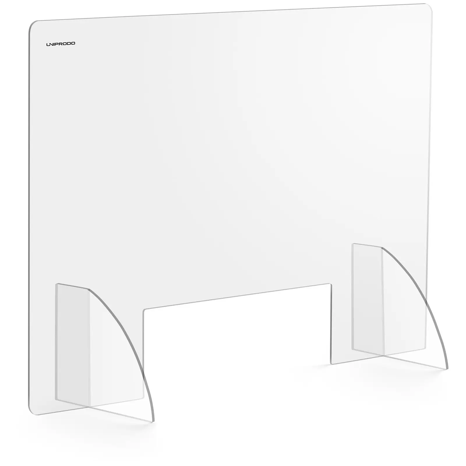 Oletpa missä hyvänsä: kassalla, lääkärin vastaanotolla, myyntipisteessä tai apteekissa: Uniprodon, yleisen työturvallisuuden asiantuntijoiden UNI- PPG01 pleksisuoja suojaa tehokkaasti sinua, työntekijöitäsi ja asiakkaitasi ihmisten yskimisen ja aivastuksen aiheuttamilta lentävililtä pisaroilta. 95 x 65 cm iso ja täysin läpinäkyvä pisarasuoja on tuskin näkyvä väliseinä työntekijöiden ja asiakkaiden välillä. Kaikki liiketoimet voidaan suorittaa tavalliseen tapaan – mutta kuitenkin siten, että molemmille osapuolille aiheutuu mahdollisimman pieni terveysriski! Pisarasuojan alareunassa olevan 45 x 15 cm aukko mahdollistaa tavaroiden, reseptien, kuittien sekä rahan tai pankkikorttien käsittelyn. Pistokejärjestelmän ansiosta 3 mm paksu pisarasuoja voidaan asentaa kätevästi muutamassa vaiheessa ilman työkaluja ja se seisoo vakaasti kahdella jalalla. Asennus tiskille ei ole välttämätöntä. Muutamassa sekunnissa sinulla on tehokas suojaus yskältä, joka on helppo kuljettaa pienen painonsa vuoksi, se voidaan asentaa mihin tahansa ja voidaan poistaa milloin tahansa. Pyöristetyt kulmat, joihin kukaan asiakas tai työntekijä ei voi satuttaa itseään, takaavat ylimääräisen turvallisuuden. Koska koko tiskin yläosa ja jalat on valmistettu iskunkestävästä ja kristallinkirkkaasta akryylilasista, se ei aiheuta näkyvyyteen minkäänlaisia esteitä tai vääristymiä. Käytetyn materiaalin ansiosta suojaseinä on helppo puhdistaa ja desinfioida. Tilaa tämä hygieniatuki jo tänään ja tee työpaikastasi turvallisempi paikka!