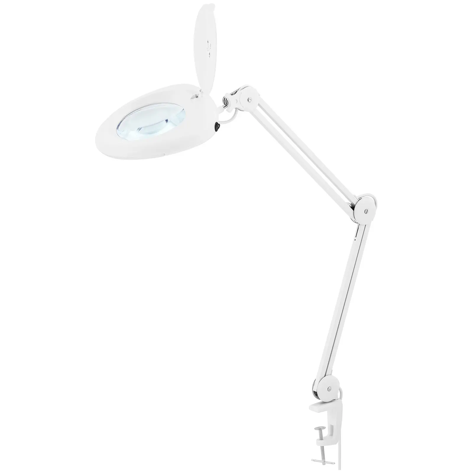 Physan suurennuslasivalaisin on tehokas, energiaa säästävä ja pitkäikäinen hankinta kauneushoitoloihin, meikkaus- tai tatuointistudioihin sekä koru- tai kellosepänliikkeisiin. Physan kauneushoitolaitteiden korkeussäädettävä luuppilamppu sopii myös yksityiseen käyttöön tarkkuutta vaativiin käsitöihin, postimerkkikokoelman tarkkailuun tai järjestämiseen. Erinomaiset tulokset saadaan aikaan osaamisella ja täydellisillä työkaluilla. Suurennuslamppu auttaa sinua saavuttamaan entistä parempia tuloksia 818,9 lm valovirrallaan, 5 diopterin suurennuksellaan ja 10,2 watin tehollaan kaikkien erityisen tarkkaa työskentelyä vaativien osien kanssa. Kirkkaanvalkoinen, väriltään 6 500 K valo hellii silmiä pitkässä työskentelyssä eikä väsytä niitä. Kaikki värit näyttävät aidoilta ja luonnollisilta. Sen takaa lisäksi linssin erittäin suurimittainen 152,4 mm halkaisija. 60 LEDiä mahdollistavat välittömän käyttöönoton ja ovat kaiken lisäksi erittäin energiatehokkaita alhaisen ernergiahävikin vuoksi sekä erittäin pitkäikäisiä. Helposti säädettävän varren lisäksi LED-suurennuslampussa on reilu virtajohto, jonka pituus on 1,38 metriä. Kiinnityspuristin mahdollistaa valaisimen helpon kiinnityksen minne tahansa jättämättä jälkiä tai naarmuja kiinnityspintaan. Pienen painonsa ansiosta tämä laite sopii myös liikkuvaan käyttöön talon ulkopuolella tai huoneen sisällä – esimerkiksi rullalaatikostoon kiinnitettynä. LED-luuppilamppu voidaan säätää mihin tahansa asentoon. Kolme niveltä ja 80 cm maksimikorkeus takaavat aina optimaalisen asennon. Säätö on vaivatonta, eikä varsia tarvitse lukita. Tämän vuoksi LED-valaisimen asentoa voidaan helposti säätää toisella kädellä myös käytön aikana. Valaisimen käytön jälkeen linssi suojataan pölyltä ja lialta, jolloin se on aina valmis seuraavaan käyttökertaan.