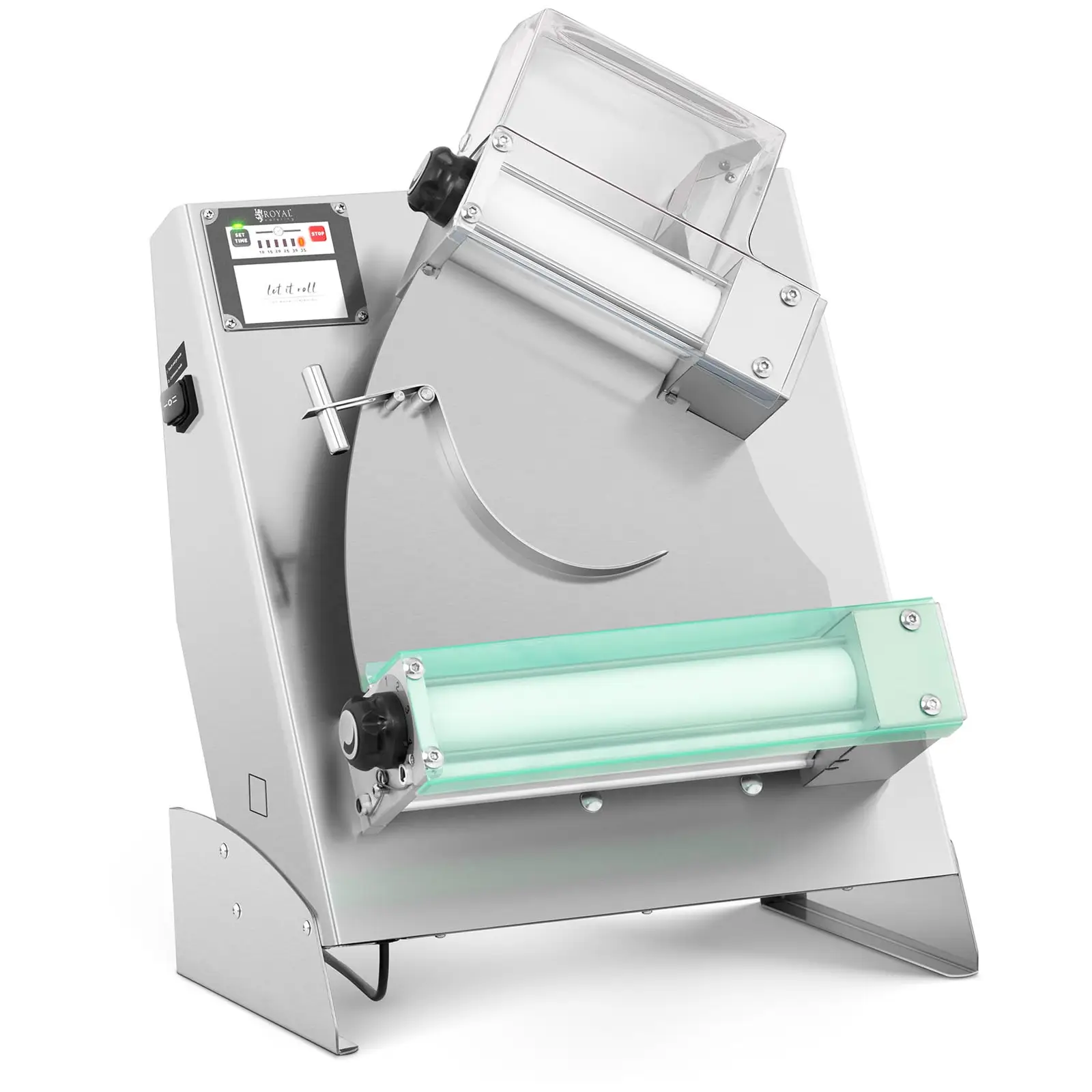 Joko pizzeriassa, leipomossa tai ravintolassa: korkealaatuisten keittiökoneiden asiantuntijoiden, Royal Cateringin, Universal Catering RC-DRM 310TG -taikinakaulin on välttämätön avustaja pizzapohjien, rieskojen, kakkupohjien, pitaleipien ja muiden pyöreiden taikinoiden nopeaan kaulimiseen. Nopeuta yrityksesi työprosesseja ja säästä arvokasta aikaa ja rahaa LET IT ROLL -järjestelmällä. Monipuolisen taikinakaulimen avulla uuvuttava taikinan vaivaaminen kuuluu menneisyyteen. Sillä heti, kun laitat 80 – 210 g raskaan taikinan kaulimen suppiloon, 240 W moottori käynnistää automaattisesti tarttumista estävällä pinnoitteella varustetut rullat. Tämä estää koneen tarpeettoman käymisen sekä vähentää myös virrankulutusta ja laitteen kulumista. Valitse vain taikinan haluttu paksuus 0 – 5 mm väliltä kiertosäädintä käyttäen. Taikinamäärästä ja valitusta paksuudesta riippuen taikinakaulin loihtii halkaisijaltaan 14-29 cm pizzapohjat (14 cm ylemmällä tellla, 29 cm alemmalla telalla). Ja tämä kaikki vielä erittäin nopeasti! Esiasetuksista riippuen työprosessi kestää vain 10-35 s. Tämän avulla voit valmistaa herkullisia pizzoja liukuhihnatyönä jopa kiireiseen lounasaikaan, jottei kukaan vieras lähde kotiin tai palaa takaisin toimistoon nälkäisenä. Vatkain kuljettaa taikinan ensimmäiseltä telalta toiselle, jotta vältät raa´an taikinan käsin koskettamista niin paljon kuin mahdollista hygieniasyistä. Kahden telan päällä oleva läpinäkyvä pleksilasi ei toimi vain turvallisuuden takaajana vaan takaa myös työprosessin optimaalisen valvonnan. Taikinakaulin on valmistettu korkealaatuisista ja kestävistä materiaaleista, kuten ruostumattomasta teräksestä ja muovista, mitkä ovat helppoja puhdistettavia.