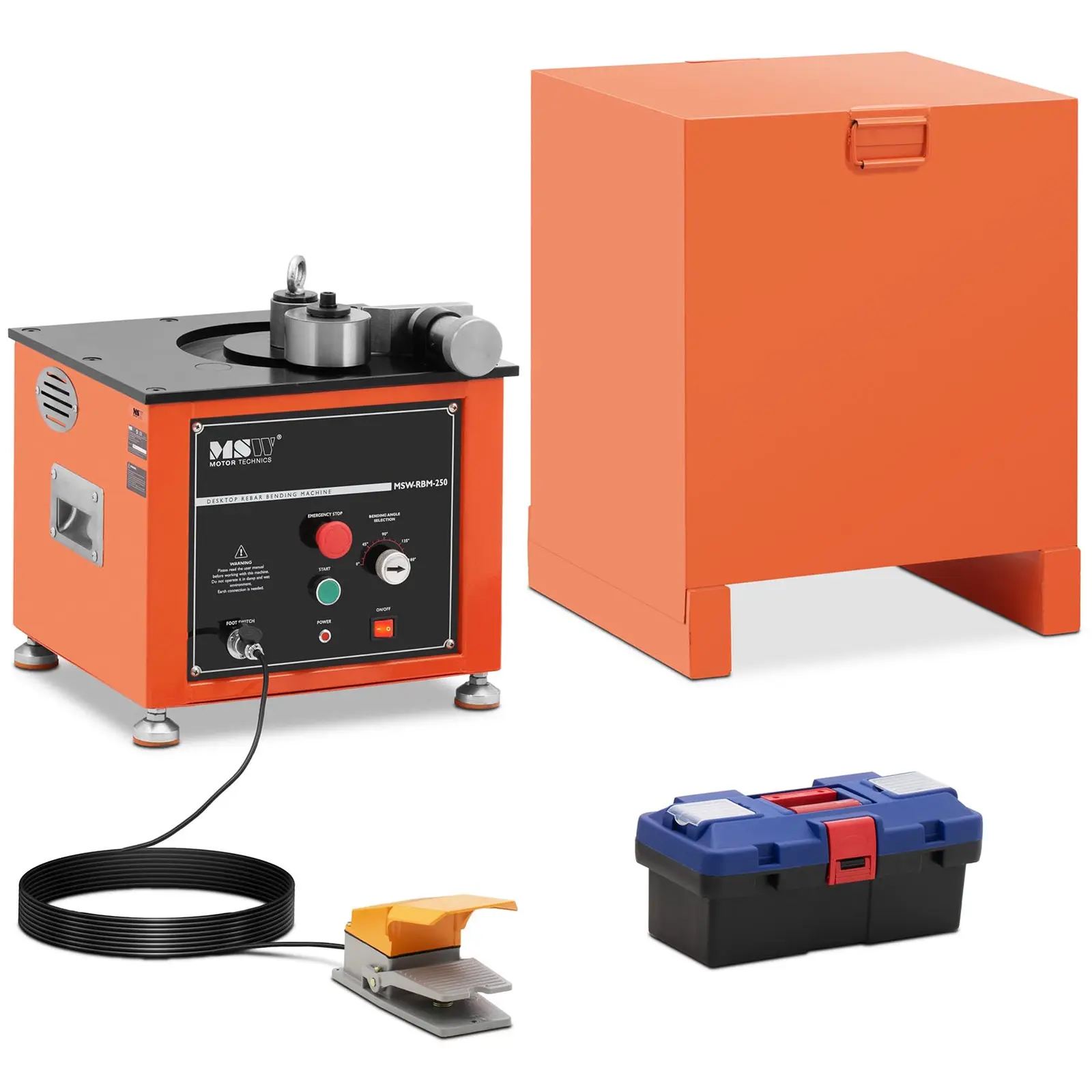 MSW:n taivutuskone on ihanteellinen väline rakenneteräksen taivuttamiseen. Taivutin on välttämätön apulainen, kun sinun täytyy valmistaa erityisiä kaarevia työkappaleita jokapäiväisessä työssäsi työpajassa, tehtaassa tai autotallissa. Aseta haluttu taivutuskulma manuaalisesti välille 0 – 180°. Putkentaivutin voi käsitellä terästä 6 – 25 mm alueella tarkasti ja nopeasti. Se taivuttaa materiaalin 5 sekunnissa. 1600 – 2 000 W moottori mahdollistaa nopean ja tehokkaan työskentelyn vankalla taivutuskoneella. Laite on varustettu käyttöturvallisuutta parantavalla hätäpysäyttimellä. Olipa kyse asennuksista, tehdastyöskentelystä, lämmitysrakentamisesta tai kotinikkareista; vankoista materiaaleista valmistetulla taivutuskoneella kulloinenkin teräskappale taipuu nopeasti aina tarvittaessa. Tämä tapahtuu niin kevyesti, ettei työstettävät kappaleet vahingoitu tai rikkoudu.