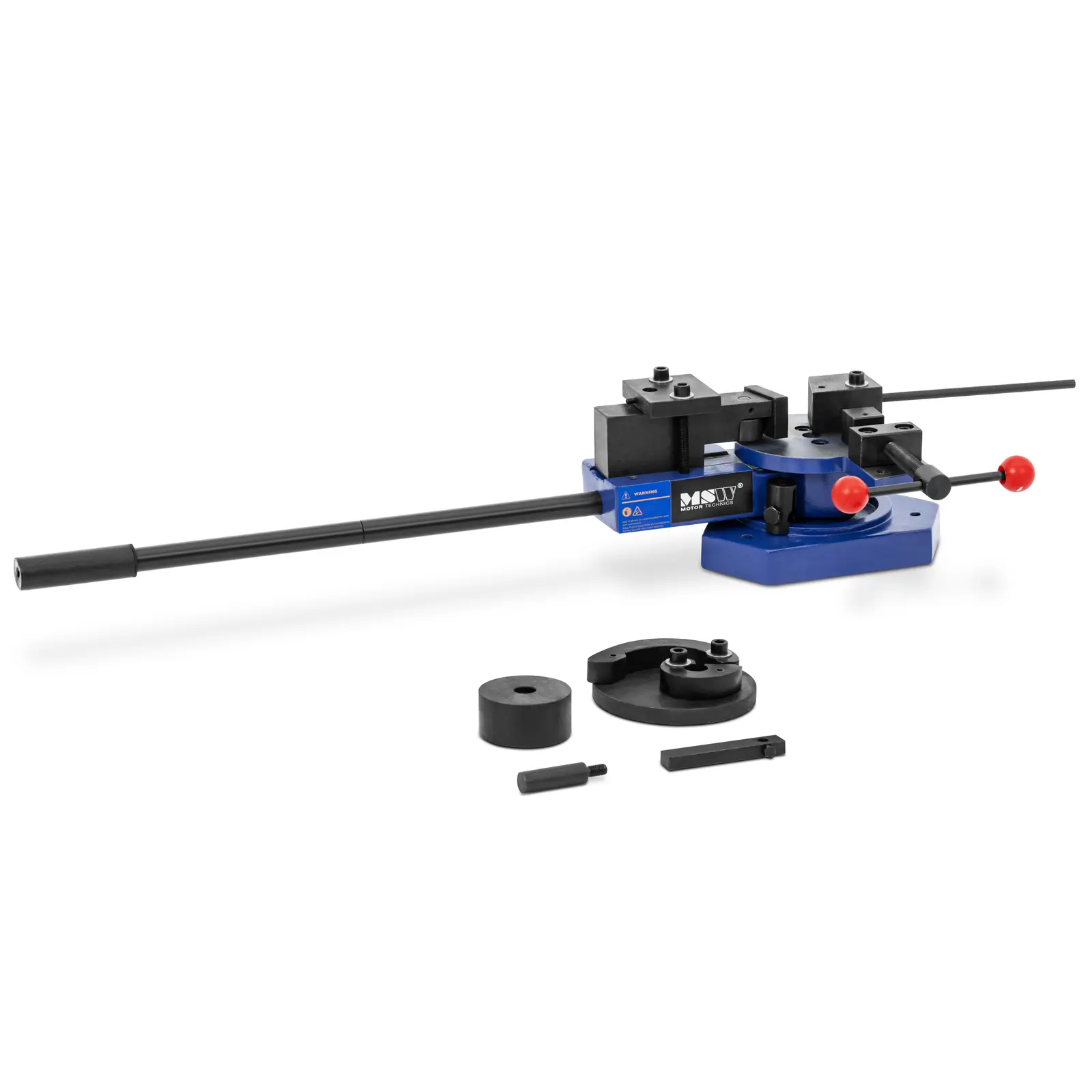 Tämä yleiskäyttöinen taivutustyökalu tarjoaa ammattimaisen ratkaisun monenlaisiin metallintyöstöalan tarpeisiin. Se mahdollistaa kaarien ja kulmien tarkan muotoilun välillä 0-360°. Yksinkertaisen toiminnan ansiosta voit käsitellä sillä vaivattomasti litteää metallia 30 x 8 mm:n kokoon asti, pyöreää metallia enintään 15 mm halkaisijaan saakka ja neliskanttista metallia, jonka kummankin sivun pituus on enintään 10 mm. Taivutustyökalu sopii monenlaisten metallien, kuten teräksen, takoraudan, messingin, kuparin, alumiinin ja monien muiden materiaalien työstämiseen. Tämän työkalun monipuolisuuden takaavat sen säädettävät toiminnot: Kahden vaihdettavan lestin avulla voit mukauttaa taivutuskoneen joustavasti erilaisiin vaatimuksiin sopivaksi, ja laajentaa siten sen käyttömahdollisuuksia merkittävästi. 50 cm pitkä vipu mahdollistaa optimaalisen voimansiirron ja tehokkaan toiminnan. Tämä vähentää työhön tarvittavaa voimaa ja maksimoi tuottavuuden taivutusprosessin aikana. Esiporattujen reikien ansiosta raudantaivutin on vaivatonta kiinnittää tukevasti työtasoon, mikä takaa luotettavan toiminnan ja tarkat työtulokset. Tukevan ja kestävän teräsrakenteensa ansiosta taivutustyökalu täyttää monenlaisten työpajojen tai tuotantoympäristöjen tarpeet. Myös pitkä käyttöikä tekee siitä luotettavan investoinnin ammattikäyttöön.