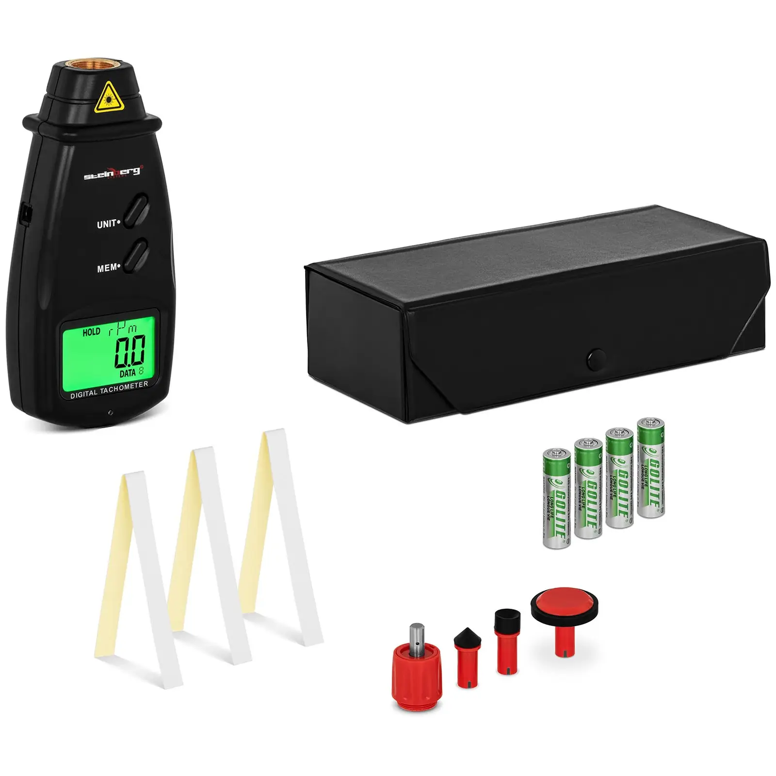 Laser-kierroslukumittarilla SBS-DT-999 voit mitata pyörivien kohteiden pintanopeuksia ja kierroslukuja kontaktittomasti. Optinen kierroslukumittari työskentelee tarkasti myös vaihtelevissa valaistuksissa. Laitetta voidaan käyttää koneiden ja laitteistojen ylläpito- ja huoltotöissä. Steinberg Systemsin teollisuustarvikkeet ja mittaustekniikka rikastaa työelämääsi, olitpa sitten rakennusmies tai automekaanikko. Kontaktimittaus toimii 7 – 25 000 r/min alueella. Kontaktiton lasermittaus voi määrittää arvoja jopa 7 – 99 999 r/min alueella ja on turvallinen vaihtoehto kontaktimittaukselle. Mittaustulokset tulevat näkyviin takometrin selkeälukuiselle nestekidenäytölle välittömästi. Takometrin valmistuksessa käytettiin hyvälaatuisia komponentteja, joten laite antaa myös jatkuvassa käytössä aina tarkat tulokset. Kompaktien mittojensa ja pienen, 177 g olevan nettopainonsa ansiosta kierroslukumittari mahtuu taskuun kuin taskuun. Laitetta voidaan säilyttää turvallisesti toimituksen sisältöön kuuluvassa säilytysrasiassa. Jos laitetta ei käytetä 30 sekuntiin tai mitattava kohde ei pyöri, sammuu takometri automaattisesti ja säästää täten paristoja.