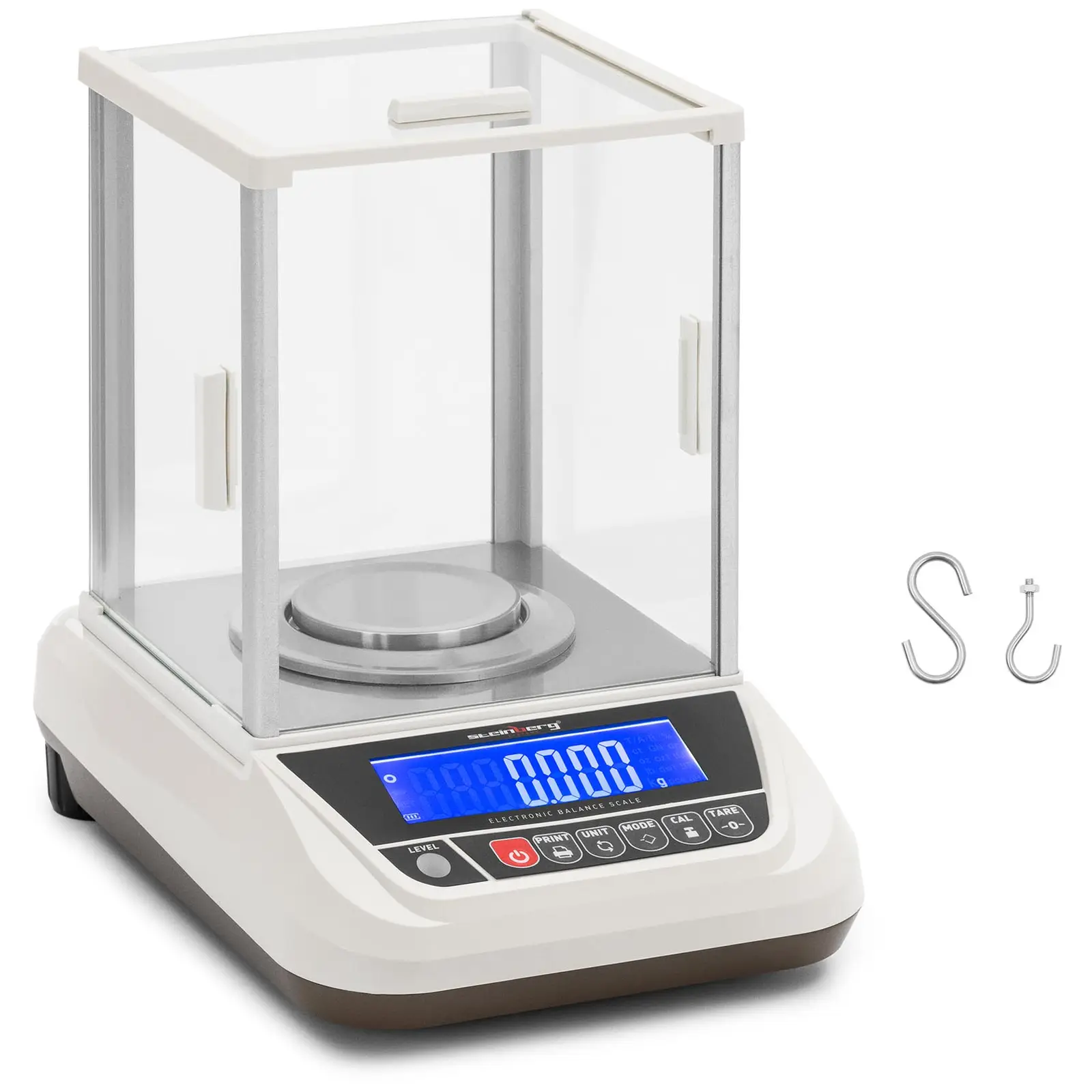 Työskenteletkö laboratoriossa, teollisuudessa tai tutkimuksessa ja punnitusten on tapahduttava gramman tarkkuudella tai oikeastaan vielä tarkemmin? Steinberg Systemsin teollisuustarvikkeisiin lukeutuvalla tarkkuusvaa’alla saat tarkan mittalaitteen, joka täyttää 100 % tarkkuusvaatimuksesi. Vaa’an tarkkuus on 0,001 g ja enimmäispunnituskapasiteetti 200 g. Tuulisuoja takaa tarkat tulokset. Tarpeidesi mukaan voit valita mittauksiisi erilaisia yksiköitä, kuten kg, g tai lb. Intuitiiviselta näppäimistöltä voit valita punnitukseen tarvittavat toiminnot. Voit valita prosenttilaskun, laskun, taarauksen, nollauksen tai nopean yksikön vaihdon. Liitä vaaka tulostimeen RS-232-liitännällä ja tulosta tulos suoraan yhtä nappia painamalla. Suuri LCD-näyttö 26 mm korkeilla luvuilla, näyttää kaikki mittaustulokset selvästi ja hyvin luettavasti. Aseta punnittavat tavarat ruostumattomasta teräksestä valmistetulle, halkaisijaltaan 8,2 cm punnitustasolle. Puhdista tarvittaessa sileät pinnat etukäteen, jotta lika ei vaikuta mittaustuloksiisi. Tuulisuoja suojaa punnitustasoa tuloksia vääristäviltä ympäristövaikutuksilta. RS-232-liitännän ansiosta voit liittää asteikon tietokoneeseen tai, kuten edellä mainittu, tulostimeen. Punnitustason lisäksi voit suorittaa riippupunnituksen kahden koukun avulla. Tätä varten vaa’an pohjassa on syvennys. Ripusta kaksi mukana toimitettavaa koukkua niille tarkoitettuihin paikkoihin ja aseta ne aukon kohdalle. Nyt voit liittää punnittavat esineet tai punnitusastian koukkuihin punnitaksesi esineitä, jotka eivät mahdu punnitustasolle. Ota tarkkuusvaaka mukaasi! Alhaisen painonsa ja jopa 24 tunnin akkukäytön ansiosta vaakaa voidaan käyttää missä tahansa sähköverkosta riippumatta. Jos virta on vähissä, kytke vaaka virtalähteeseen ja lataa akku täyteen ainoastaan 8 tunnissa. Integroidun vatupassin ja säädettävien kumitassujen ansiosta voit helposti tasapainottaa tarkkuusvaa’an luotettavien mittaustulosten saavuttamiseksi. Lisäksi luistamattomat kumijalat suojaavat alustaansa naarmuilta ja varmistavat turvallisen jalustan.