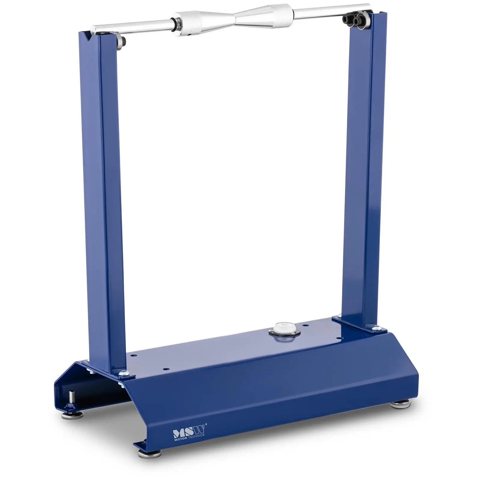 MSW:n ammattivälinevalikoiman tasapainotuspukilla voi nopeasti ja helposti paikantaa ja korjata epätasapainot erityyppisissä pyörissä. Vankka ja tilaa säästävä tasapainotuspukki sopii ammattimaisiin työverstaisiin tai kilparadoille sekä oman moottoripyörän, skootterin tai polkupyörän korjauksiin. Kahden säädettävän pyörän keskityskartioiden ansiosta moottoripyörän tasapainotuspukille mahtuu halkaisijaltaan enintään 80 cm:n ja leveydeltään jopa 25 cm renkaat, akselin halkaisija saa puolestaan olla 1,5-3 cm. Näillä arvoilla tasapainotuspukki takaa laajan valikoiman sovelluksia monen kokoisille renkaille, onpa kyseessä sitten moottoripyörä tai polkupyörä. Akseli kahdella sujuvasti liikkuvalla laakerilla varmistaa mahdollisen epätasapainon nopean löytymisen: Pyörän raskaampi puoli liikkuu automaattisesti alaspäin. Moottoripyörän tasapainotuslaitteessa on sisäänrakennettu vesivaaka ja säädettävät jalat. Nämä mahdollistavat tasapainotuspukin täydellisen kohdistuksen epätasaisellakin maalla. Tämä mustalla suojapinnoitteella varustettu korkealaatuinen hiiliteräspukki vakuuttaa pitkällä käyttöiällään – jopa ankarissakin ympäristöissä tai kovassa käytössä. Kompaktin koon ansiosta sitä on myös helppo kuljettaa – esimerkiksi kilpailuissa käytettäväksi.