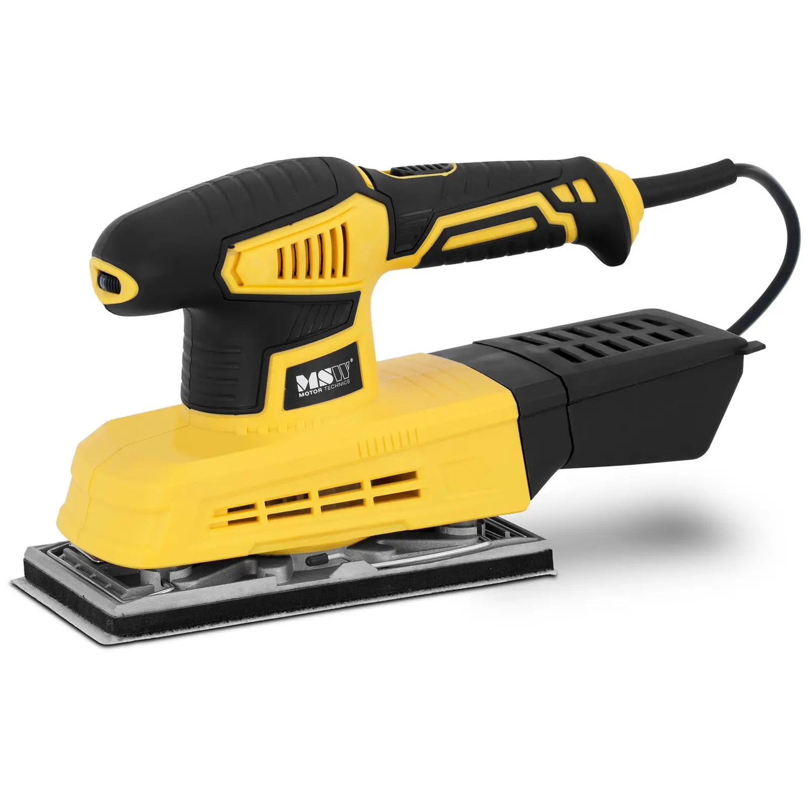 Jotta kaikki sujuisi ongelmitta: MSW:n kätevällä tasohiomakoneella työstät erilaisia pintoja nopeasti ja kätevästi. Ergonomisella kahvalla varustettu hiomakone istuu mukavasti käteen ja on nopea varustaa hiekkapaperilla. Valitse haluamasi nopeus väliltä 6 000 – 12 000 r/min kulloisenkin projektin mukaan. Erityisominaisuus: hiomapöly päätyy automaattisesti integroituun pölysäiliöön. Oli kyseessä viilu, puu, maali tai kitti, tällä koneella voit hioa monia erilaisia pintoja sileäksi. Oikeanlaista hiekkapaperia käyttämällä voit hioa myös mineraali- ja akryylipintoja. Hiomapaperin vaihto on myös erittäin helppoa, sillä klipsien ja tarrakiinnityksen ansiosta oikea karkeus asettuu paikalleen käden käänteessä. Voit kytkeä laitteen nopeasti päälle tai pois päältä sen yläosasta. Pehmeän kahvan ansiosta tämä tasohiomakone istuu käteesi mukavasti. Ergonominen kahva on muotoiltu niin, että saat siitä turvallisen otteen eri asennoissa. Näin pidempäänkin kestävä hiominen onnistuu mukavasti. Tällä hiomakoneella saavutat erinomaiset tulokset sekä karkeissa että hienoissa hiomatöissä. Ainutlaatuinen tärinänvaimennusjärjestelmä mahdollistaa tasaisen ja rauhallisen käytön. Lisäksi laite on suojattu II-luokan mukaisesti kaksinkertaisella ja vahvistetulla eristyksellä.