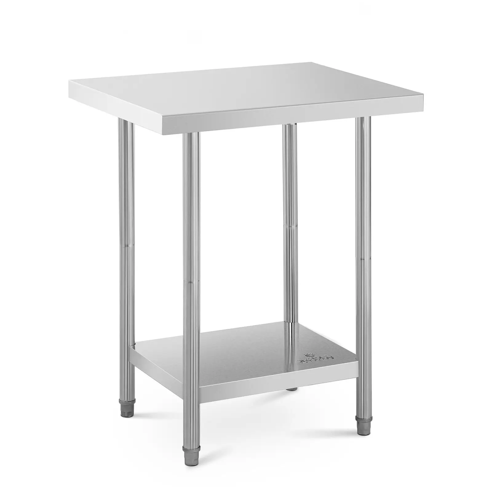 Mitä hyötyä on modernimmasta tekniikasta, jos ei ole tarpeeksi tilaa ruoan valmistamiseen oikein ja puhtaasti sekä keittiövälineiden säilyttämiseen. Ruostumattomasta teräksestä valmistetut huonekalut ovat hygieenisen keittiön ja kaikenlaisten elintarvikkeiden puhtaan tuotannon perusta. Ruostumattomasta teräksestä valmistetut työpöydät Royal Cateringin ravintolalaitteista kuuluvat jokaiseen ammattimaisesti sisustettuun keittiöön. Teräksinen työpöytä RCSSCB-76X61-E on suunniteltu erityisesti ravintola-alan korkeisiin vaatimuksiin, ja sen kaksikerroksinen rakenne tarjoaa ylimääräistä säilytystilaa. Kompaktin teräspöydän työtaso on 76 x 61 cm, joten se tarjoaa runsaasti tilaa päivittäiseen työhösi. Suurempi työtaso voi olla tarpeen, kun säilytät ja käsittelet ruokaa, ainesosia, työkaluja, laitteita tai valmistelet aterioita. Toinen, alempi taso tarjoaa lisää säilytystilaa, mikä mahdollistaa hyvin jäsennellyn ja selkeän työskentelyn. Työpöytä on ihanteellisen vakaa epätasaisillakin pinnoilla korkeussäädettävien jalkojensa ansiosta. Pöydän tukevat pyöreät jalat lisäävät myös osaltaan sen kantokykyä, joka on yhteensä 400 kg. Ylempi työtaso kantaa 200 kg ja alempi 200 kg. Laadukas, kiillotettu työpöytä ruostumattomasta teräksestä on erittäin kestävä ja pitkäikäinen olematta herkkä korroosiolle tai naarmujen kaltaisille mekaanisille vaurioille. Tämän materiaalin voi puhdistaa helposti ja perusteellisesti, mikä on loistava ominaisuus elintarvikkeiden käsittelyn vaatiman hygieenisyyden kannalta.