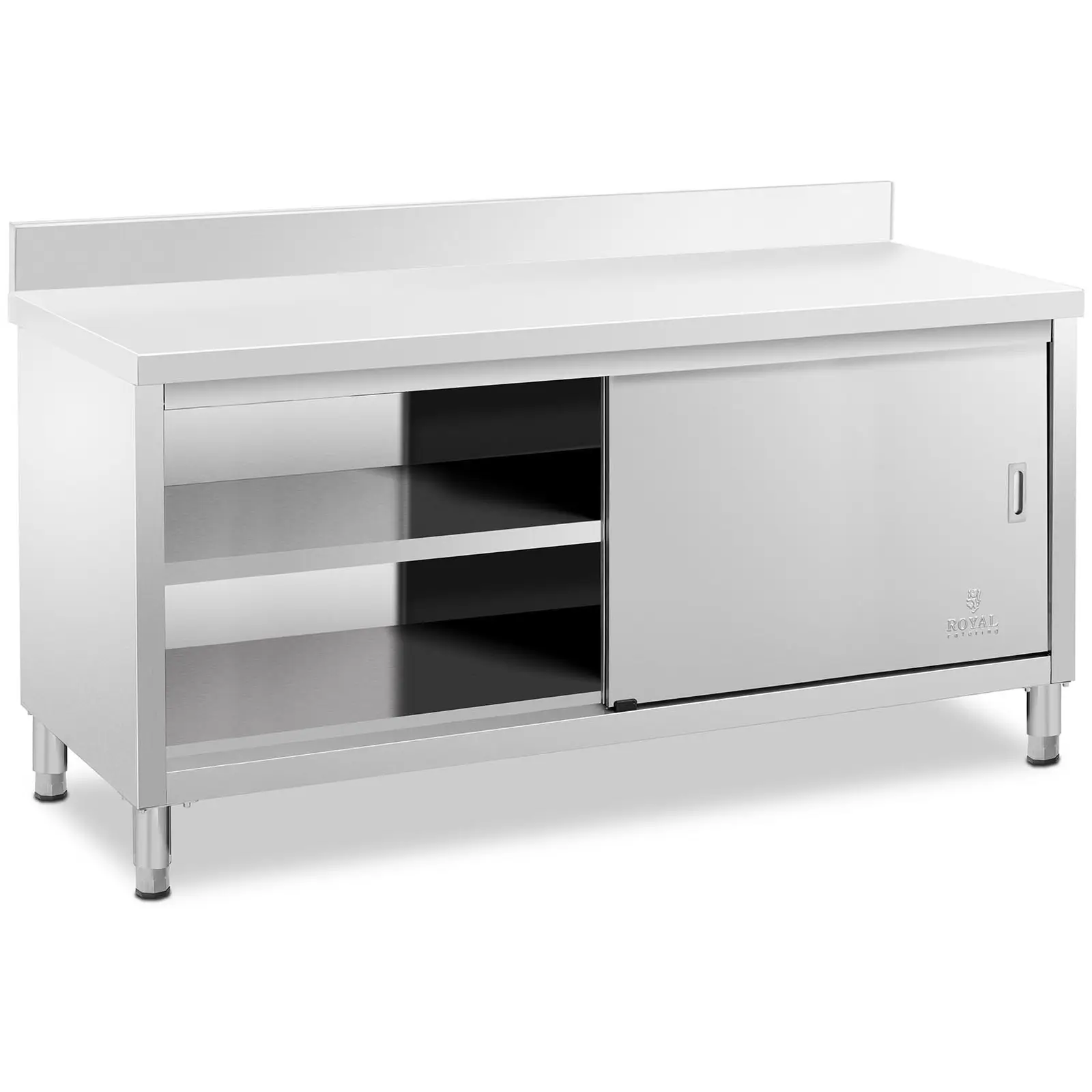 Olipa kyseessä sitten ravintola, ruokala, hotelli, leipomo, sairaala tai ammattikeittiö: ruostumattomasta teräksestä valmistetut huonekalut ovat perusta puhtaalle keittiölle ja kaikenlaisten ruokien hygieeniselle käsittelylle. Laadukkaiden ravintolalaitteiden asiantuntijan, Royal Cateringin työkaappi RCSSCB-180X60-E-B kuuluu jokaiseen ammattimaisesti varusteltuun keittiöön ja on suunniteltu erityisesti ravintola-alan korkeisiin vaatimuksiin. Modernin, ruostumattomasta teräksestä valmistetun kaapin 180 x 60 cm:n työtaso tarjoaa runsaasti tilaa päivittäiseen työskentelyyn tuoreiden ruokien, raaka-aineiden ja keittiölaitteiden kanssa. Nerokas työtason ja säilytyskaapin yhdistelmä mahdollistaa laajan käyttötarkoituksen ja varmistaa, että keittiösi pysyy siistinä. Seinäpuoleen kiinnitetty 100 mm korkea ruostumattomasta teräksestä valmistettu roiskesuoja sulkee työtason ja seinän välisen aukon, estäen tavaroiden tai ruokien putoamisen kaapin ja seinän väliin. Lisäksi se suojaa seinää vesiroiskeilta. Kahdella käytännöllisellä ja tilaa säästävällä liukuovella varustettu työkaappi on erityisen suosiollinen kapeissa keittiöissä. Sisällä olevat keittiövälineet pysyvät turvallisesti ja siististi kätevien ja helppokäyttöisten liukuovien takana. Sisätila on jaettu tukevalla hyllyllä, joka ylläpitää järjestystä. Pohjatason ja työtason tapaan, myös hylly kantaa 200 kg. Tämän seurauksena työkaapin kokonaiskuormituskapasiteetti on erittäin korkea, jopa 600 kg. Ruostumaton teräskaappi on optimaalisen vakaa myös epätasaisilla lattioilla neljän korkeussäädettävän jalkansa ansiosta. Korkealaatuinen ruostumaton teräs tekee vaikutuksen kestävyydellään, antaa kaapille pitkän käyttöiän ja kestää korroosiota sekä mekaanisia vaurioita (esim. naarmuja). Materiaali voidaan puhdistaa helposti ja perusteellisesti ja se tarjoaa siten täydelliset olosuhteet elintarvikkeiden käsittelyyn hygieenisesti. Tyylikkään työkaapin kokoaminen on vaivatonta mukana toimitettujen selkeiden asennusohjeiden ansiosta.