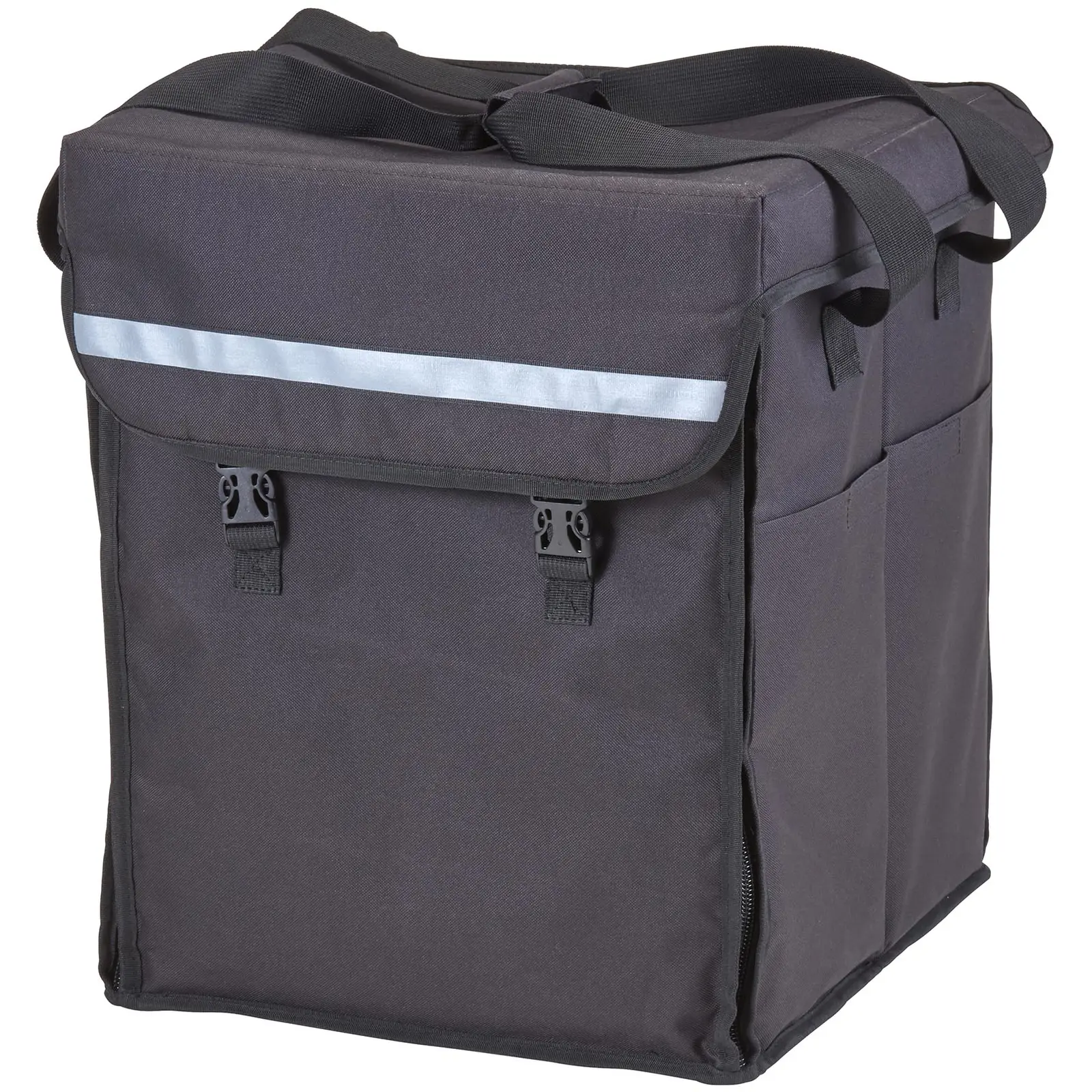 Aina suosittu, olipa kyseessä sitten toimisto tai kotitoimisto – valmiit ruoat lounaaksi. Mutta niiden on oltava myös lämpimiä! Siksi CAMBROn lämpölaukku GBBP151417110 on yksinkertaisesti välttämätön, jos haluat ilahduttaa asiakkaitasi lämpimillä ruuilla. 38 x 35,5 x 43 cm:n kokoinen kannettava lämpölaukku on tilava, jonne mahtuu paljon elintarvikkeita kerralla. Tilaukset voidaan kuljettaa asiakkaidesi kotiovelle vain yhdessä lämpölaukussa. Termoslaukku on säänkestävän valmistusmateriaalinsa (polyesteri) ansiosta. Riippumatta siis sateesta, tuulesta tai lumesta, ruoan kuljetuslaukulla toimitat asiakkaillesi ruoat aina ehjinä ja lämpiminä. Termoslaukussa on kaksi pehmustettua olkahihnaa, joten se sopii käytetäväksi mukavana selkäreppuna. Tällä tavalla ruoka voidaan toimittaa optimaalisesti polkupyörällä tai potkulaudalla. Vetoketjujen ansiosta lämpölaukun sivuseinä voidaan avata kokonaan. Tällä tavalla ruoka on laitettavissa laukkuun erityisen helposti ravintolassa ja otettavissa sieltä pois asiakkaan luona.