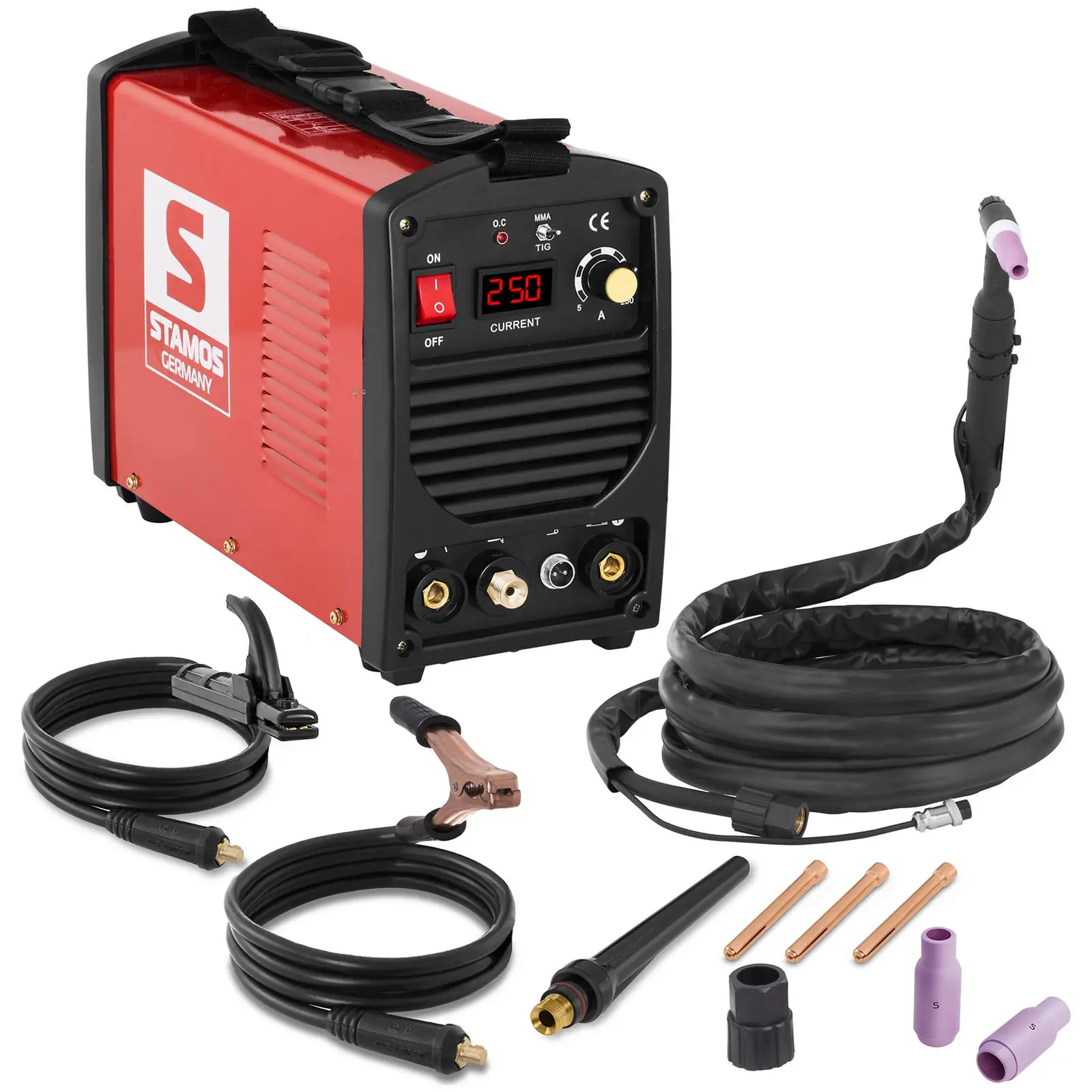 Stamos Germanyn S-WIGMA 250 -invertterihitsauskone on erittäin luotettava vakaan rakenteensa ja uusimman teknologian ansiosta. Sen sisäänmenojännite on 230 V, ja tukevien mutta kevyiden materiaalien ansiosta se painaa vain 13,15 kg ja on mitoiltaan 16 x 36,50 x 24 cm. S-WIGMA 250 TIG -hitsauskoneen hitsausvirta on säädettävissä alueella 5 – 250 ampeeria, joten laite mukautuu hyvin kulloisiinkin tarpeisiin. Osta jo tänään edullinen S-WIGMA 250 TIG -hitsauskone Stamos Germanylta. S-WIGMA 250 TIG-hitsauskone toimii MOSFET-teknologialla ja saavuttaa energiankäytössä 93 % tehoasteen. Jatkuva virransyöttö takaa laadukkaan hitsaussauman.