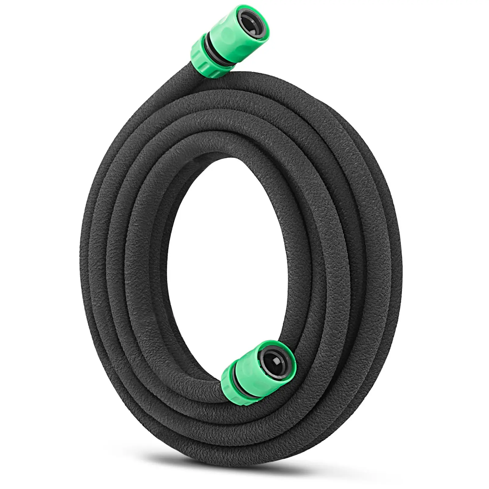 Tämä letku vuotaa ja hyvä niin. Sillä tällä tavalla letku jakaa veden tasaisesti kasveillesi. Monien kasvilajien, kuten tomaattien tai kurpitsojen tapauksessa on parempi, että niiden lehdet kastuvat mahdollisimman vähän. Hillvertin tihkuletku jakaa veden koko letkun pituudelta suoraan maahan. Tällöin vesi päätyy suoraan juurille, ilman että se vahingoittaa lehtiä. Tihkukasteluletkun pituus on 7,5 m. Kahden liitoskappaleen avulla voit sopeuttaa sen tarkasti omalle kasvimaallesi sopivaksi. Katkaise letku yksinkertaisesti kohdasta, josta letkun tulee kääntyä ja luo uusi liitos liitoskappaleiden avulla. Liitoskappaleiden ja muiden tihkuletkujen lukumäärästä riippuen voit laajentaa tihkukastelusysteemiäsi haluamallasi tavalla. Toimituksen sisältöön kuuluu kaksi pikaliitintä vesihanaan liittämistä varten ja yksi hanaosa. Tihkuletku toimii 4 bar maksimipaineella. Näin aikaansaadaan jopa 840 – 1 200 l/h läpivirtaus. Optimaalista kastelua varten voit pienentää painetta tarpeen mukaan vähentäen samalla vedenkulutusta jopa 70 %. Kumia ja polyetyleeniä oleva letku on erittäin lujatekoinen ja notkea. Täten se voidaan asettaa maahan helposti ja vankasti myös vedenpaineen ollessa korkea. Letku soveltuu erityisen hyvin käytettäväksi kasvihuoneissa, joissa kasteluun tarjolla oleva tila on rajoittunut ja kasteluratkaisu on toteutettava ahtaassa tilassa.