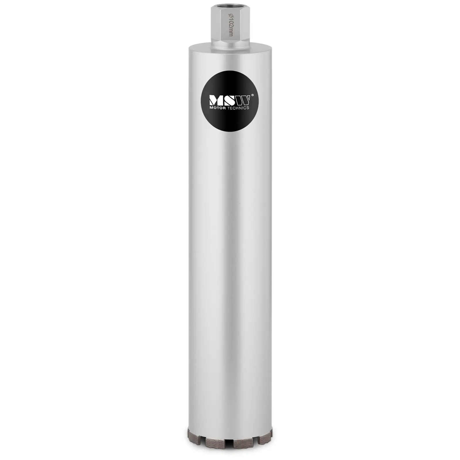 Timanttikuppiterä MSW-DCD-450/102PRO soveltuu sekä märkä- ja kuivaporaukseen. Tällä korkealuokkaisella porakoneen terällä voit porata 450 mm syviä ja halkaisijaltaan 102 mm kokoisia reikiä. Timanttikuppiterä kestää erinomaisesti kulumista. Sille kovat materiaalit kuten betoni, teräsbetoni, tiilet, kaakelit, kalkkikivi tai valetut lattiat eivät ole mikään ongelma. MSW:n porat ja vääntimet ovat ihanteellinen ratkaisu tarkkaan ja tehokkaaseen työskentelyyn. Huipputehokkaalla timanttikuppiterällä kaikenlaisen materiaalin poraus sujuu asianmukaisesti ja tarkasti. Korkealaatuisessa kuppiterässä on timanttipinnoite, joka tekee siitä äärimmäisen vankan ja pitkäikäisen. Poratuista rei’istä tulee aina siistejä ja jäysteettömiä Tämä kuppiterä poraa kovimpiakin materiaaleja turvallisesti ja tehokkaasti. Timanttikuppiterän halkaisija on 102 mm ja sen poraussyvyys on 450 mm. Nämä mitat tekevät siitä ihanteellisen varaterän tehokkaisiin keernaporakoneisiimme. Tämä terä sopii lisäksi kaikkiin sähkötyökaluihin, joiden kierreistukan koko on 1 1/4″. Timanttikuppiterä on valmistettu kovetetusta teräksestä, mikä takaa erittäin suuren tukevuuden. Tämä terä säilyttää muotonsa jopa kestokäytössä. Sen timanttipinnoitteen avulla saat aikaan parasta porausjälkeä moniin eri materiaaleihin. Sekä kuiva- että märkäporaus on mahdollista, mutta suosittelemme kuitenkin märkäporausta. Se on turvallisempaa ja pitää terän pidempään käyttökunnossa.