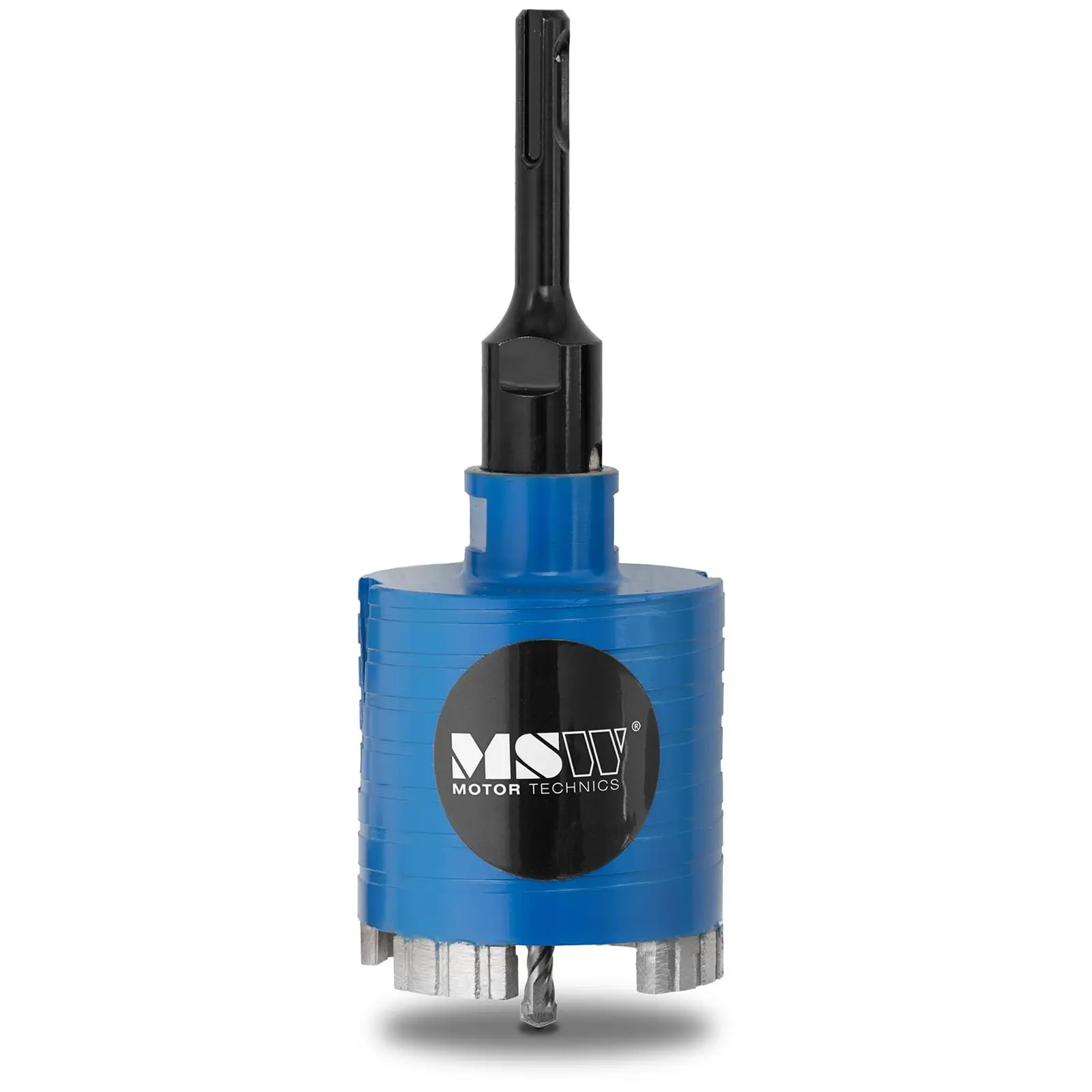 Jos poraat kuivana timanttiporakoneellasi, luota MSW:n tarkkaan timanttiporaan. Laserhitsattu poranterä on korkealaatuinen ja sen pinnassa on uria, jotka kuljettavat pölyn pois porattaessa. Käytä niitä, kun haluat porata betoniin, kalkkihiekkaan tai muuhun muuraukseen saadaksesi tarkkoja reikiä. Neljäsegmenttisessä porapäässä on timanttipinnoite, joka leikkaa tarkasti 68 mm:n reikiä erilaisiin rakennusmateriaaleihin. Voit saavuttaa jopa 0. 056 metrin poraussyvyyden. Magneettisesti kiinnitetty keskipora, johon on saatavana SDS-plus-adapteri, varmistaa puhtaan porauksen. M16-liitännällä voit kiinnittää timanttiterän turvallisesti timanttiporaan. Kovuusasteella 95 HRB saavutat optimaaliset tulokset jopa betonissa. Laserhitsattu rakenne osoittautuu erittäin vakaaksi ja kestäväksi.