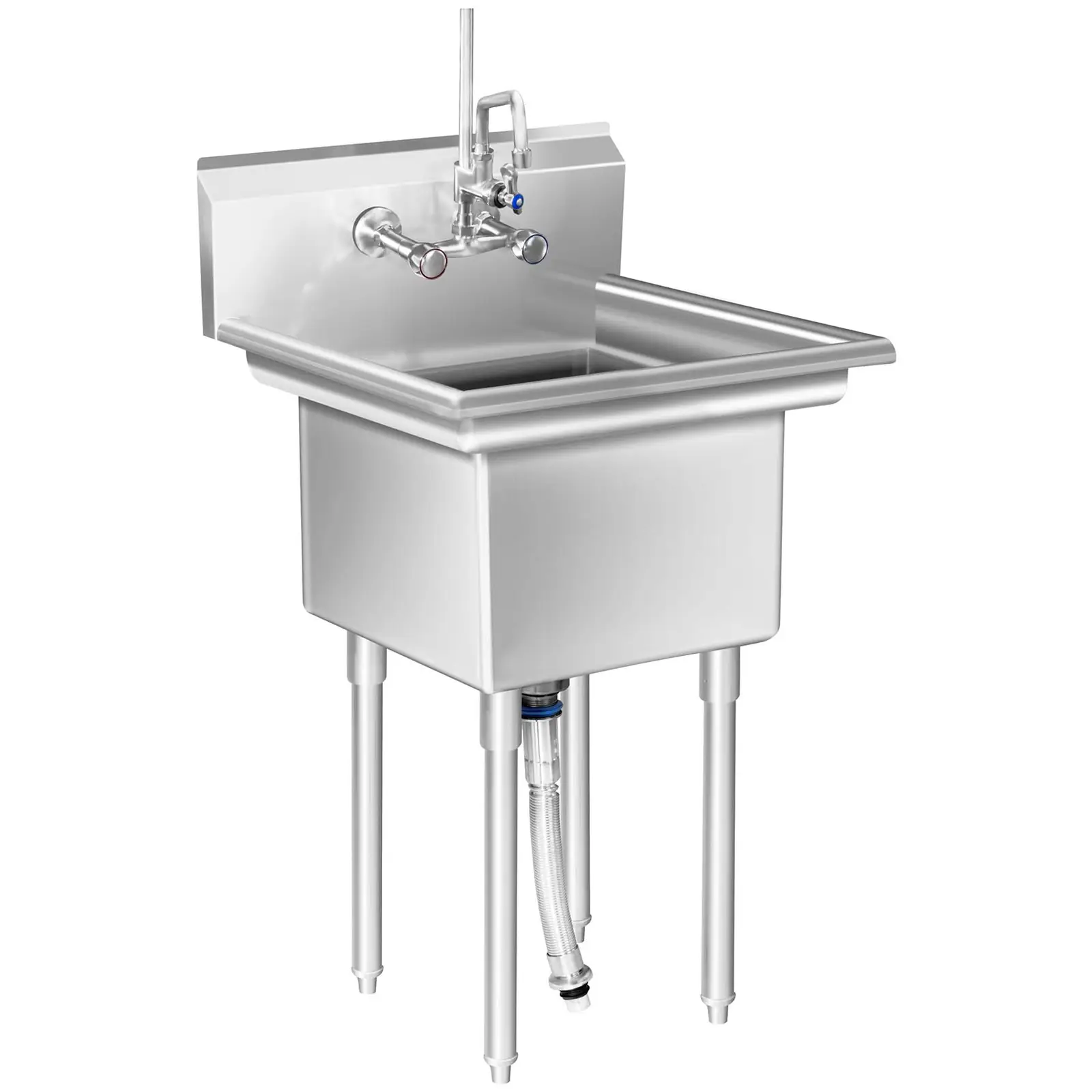 Ravintola-alan asiantuntija Royal Catering tarjoaa RCHS-7 tiskipöydällään ihanteellisen ratkaisun jokaiseen suurkeittiöön, ravintolaan, pitseriaan tai pikaruokalaan. Oikean varustuksen, kuten tämän kestävän tiskialtaan avulla epäsuositut työt, kuten tiskien pesu, sujuvat mutkattomammin kiireisessäkin keittiössä. 45 x 45 x 30 cm suuruinen allas tarjoaa riittävästi tilaa jopa suurien kattiloiden, pannujen tai paistoritilöiden pesuun. 20 cm korkea roiskesuoja sekä korotetut reunat suojaavat seinää ja estävät huuhteluveden tai ruuantähteiden valumisen reunojen yli. RCHS-7 tiskipöytä on valmistettu kokonaan ruostumattomasta teräksestä, jolloin sen puhdistus onnistuu helposti pelkän veden ja astianpesuaineen avulla. Materiaali on erityisen hygieeninen, kestävä ja integroituu hyvin erilaisiin keittiöihin. Jokaisessa altaassa on sihti, joka kerää tehokkaasti suurimmat ruuantähteet ja ehkäisee täten viemärin tukkeutumista. Korkeudestaan säädettävien jalkojen ansiosta, voit asettaa tiskipöydän optimaaliselle työskentelykorkeudelle ilman että pöydän vakaus tai pito heikkenee. Jalkojen säätöväli on 2,5 cm ja 6 cm. Toimituksen sisältöön kuuluu tietysti myös pöytään tarvittavat lisävarusteet, kuten viemäriputki siivilällä, tiivistysrenkaat ja lavuaarin kumitulppa. Asennustarvikkeet eivät sisälly kuljetukseen.