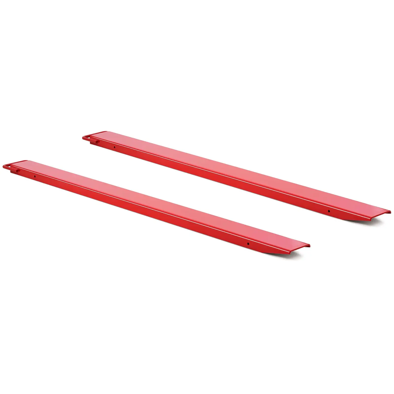 Steinberg Systemsin avoimet trukin jatkopiikit auttavat sinua kuljettamaan erityisen suuria tavaroita ja kuormalavoja. Jatkopiikit trukkiin tarjoavat kustannustehokkaan ja joustavan ratkaisun, jonka voit kiinnittää trukkiin nopeasti, turvallisesti ja täysin ilman työkaluja. Käytön jälkeen voit varastoida jatkopiikit tilaa säästävästi. Steinberg Systems tarjoaa laajan valikoiman jatkohaarukoita. Tämä malli, jonka haarukan poikkileikkaus on 165 x 60 mm, on suunniteltu trukkipiikeille, joiden paksuus on 50 mm. Jatkopiikkien kokonaispituus on 2438 mm, ja siitä 60 % tulisi asettaa trukkipiikkien päälle, jolloin kokonaispidennys on 40 % jatkopiikkien pituudesta. Suurin kantavuus riippuu ajoneuvon kantavuudesta. Trukin jatkohaarukat voi kiinnittää trukkipiikkiin nopeasti ja luotettavasti teräshihnalla. Pulverimaalatusta hiiliteräksestä valmistettu ja täyshitsattu haarukan jatke tarjoaa maksimaalista vakautta ja pitkän käyttöiän. Toimitus sisältää kaksi punaista jatkopiikkiä Steinberg Systemsiltä!
