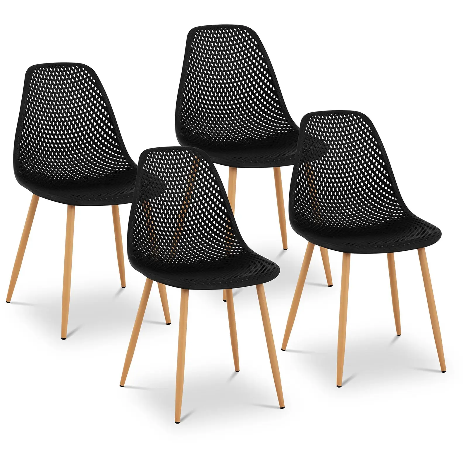 Haluatko varustaa sillä sitten ravintolan, bistron, toimiston taikka odotushuoneen: Fromm & Starckin, korkealaatuisten toimistokalusteiden asiantuntijoiden STAR_SEAT_ 05 -tuoli on aina mukava istuttava. Tietysti sinä ja perheesi voitte viihtyä tuolilla myös kotona keittiössä tai parvekkeella. Kestävästä muovista valmistetussa mustassa nojatuolissa on 40 x 46 cm:n kokoinen tilava istuin. Takaosa ja sivutuet koostuvat jatkuvasta ristikosta ja ovat siksi erityisen ilmaa läpäiseviä, mikä tekee niillä istumisesta miellyttävää myös kesällä. Tämän 4 tuolia käsittävän sarjan tuolien enimmäispaino on 150 kg, eivätkä ne natise suurimmallakaan kuormituksella. Ergonomisesti muotoiltu keittiötuoli korkealla selkänojalla kutsuu sinut viipymään pidempään – olipa se sitten tyylikkäässä kahvilassa tai taukotilassa. Vankka nelijalkainen runko varmistaa, että muovituoli on aina tukeva. Muoviset suojat neljässä teräksisessä tuolinjalassa puuoptiikalla suojaavat lattiapäällystettä ja estävät ärsyttävien naarmujen muodostumista. Käytetyt materiaalit, kuten polypropeeni ja teräs, ovat paitsi erittäin kestäviä ja pitkäikäisiä, myös erittäin helppohoitoisia. Valitse tänään tämä ajattoman tyylikkäästi muotoiltu tuoli ja virkistä sisustustasi!