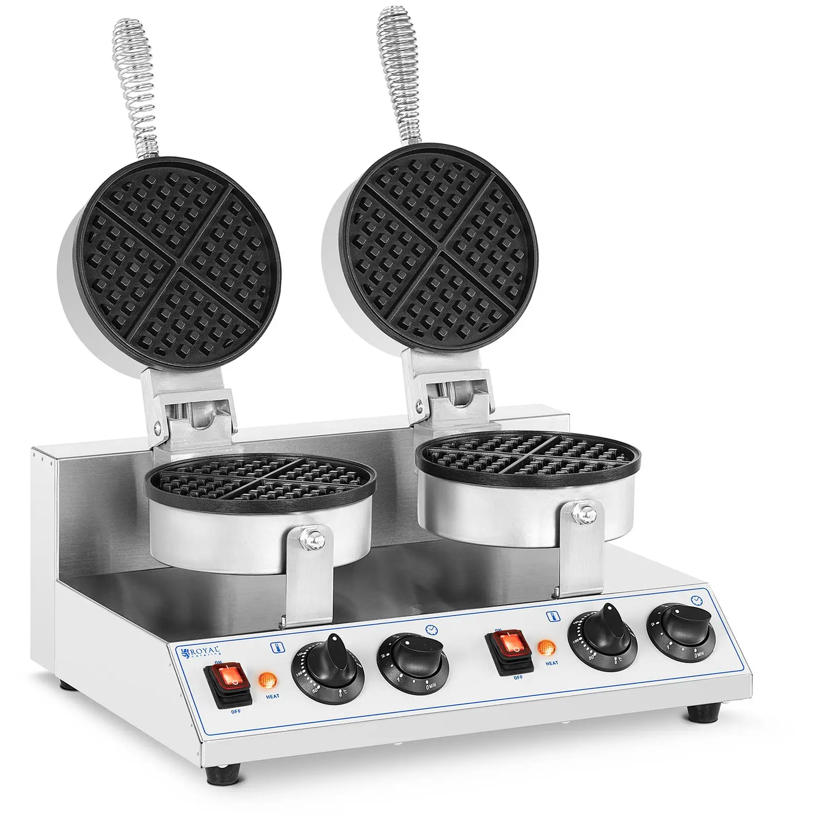 Tuoreet ja rapeat vohvelit, jotka on nopeasti ja helposti tehty! Royal Cateringin vohveliraudalla RC-WMD01 saat tuoreiden vohveleiden tuoksun kahvilaasi tai ravintolaasi ja lumoat vieraasi täysin rapealla ja kullanruskealla vohvelilla. Olipa kyseessä sitten makea vohveli suklaalla ja marjoilla tai ruokaisampi versio tuoreilla yrtteillä ja kinkulla – vohvelikoneella tarjoilet herkullisia ja monipuolisia, kooltaan 185 mm olevia pyöreitä vohveleita käden käänteessä. Kaikki, mitä tarvitset markkinoiden tarpeisiin jokapäiväisessä elämässä ja muualla, löydät Royal Cateringin valikoimasta! Vohveliraudassa on kestävä ja pitkäikäinen ruostumattomasta teräksestä valmistettu kotelo sekä teflonpinnoitetusta alumiinista valmistetut paistolevyt ylhäällä ja alhaalla. Molemmat tuplalevyt lämmitetään sähköllä 2 600 W:n teholla, ja ne mahdollistavat tehokkaasti paksuudeltaan 19 mm olevien pyöreiden vohvelien valmistamisen tehokkaasti vohvelikoneessa. Paistolevyt mahdollistavat vohvelien vaivattoman irrottamisen. Niiden rakenne luo vohveleille kauniin muodon. Levyjen integroitu ylivuotosuoja estää ylimääräistä taikinaa likastamasta pyöreää vohvelirautaa ja helpottaa siten puhdistusta. Voit helposti asettaa haluamasi lämpötilan automaattisella termostaatilla, jolloin integroitu automaattinen järjestelmä huolehtii kaikesta muusta puolestasi. Lämpötila on valittavissa 50 – 300 °C väliltä halutusta ruskistusasteesta riippuen. Paistoaika voidaan asettaa ajastintoiminnolla välille 1 – 5 minuuttia. Tällöin vohvelien valmistus sujuu aina optimaalisesti. Lämpöeristetyt kahvat takaavat vohvelikoneen turvallisen käsittelyn. Pohjassa on kumitassut, jotka takaavat aina optimaalisen pidon lähes kaikilla säilytyspinnoilla ja suojaavat niitä samalla naarmuilta. Valitse Royal Cateringin vohvelirauta ja lumoa vieraasi rapeilla kulinaarisilla vohveliherkuilla!