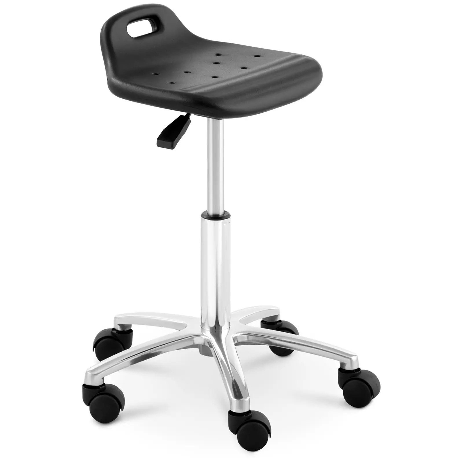 Nousetko työskennellessäsi useasti ylös? Onko toimistosi pieni? Siinä tapauksessa valitse Fromm & Starckin ergonominen toimistojakkara. Pelkistetty muotoilu ja 5 pehmeästi kulkevaa pyörää auttavat sinua pysymään työssäsi joustavana. Lisäksi sen pieni koko tekee siitä sopivan erilaisiin työympäristöihin, kuten varastoihin ja korjaamoihin. Mukava, vakaa ja joustava – juuri sellainen kuin työjakkarasi on oltavakin. Ergonomisesti muotoiltu 35 x 25 cm:n istuin takaa riittävän istuinmukavuuden töihin, joissa liikutaan paljon. Tukeva rakenne kestää jopa 120 kg. Voit säätää yksilöllisesti haluamasi istuinkorkeuden 420 – 555 mm istuimen alla olevalla vivulla, johon pääsee helposti käsiksi.