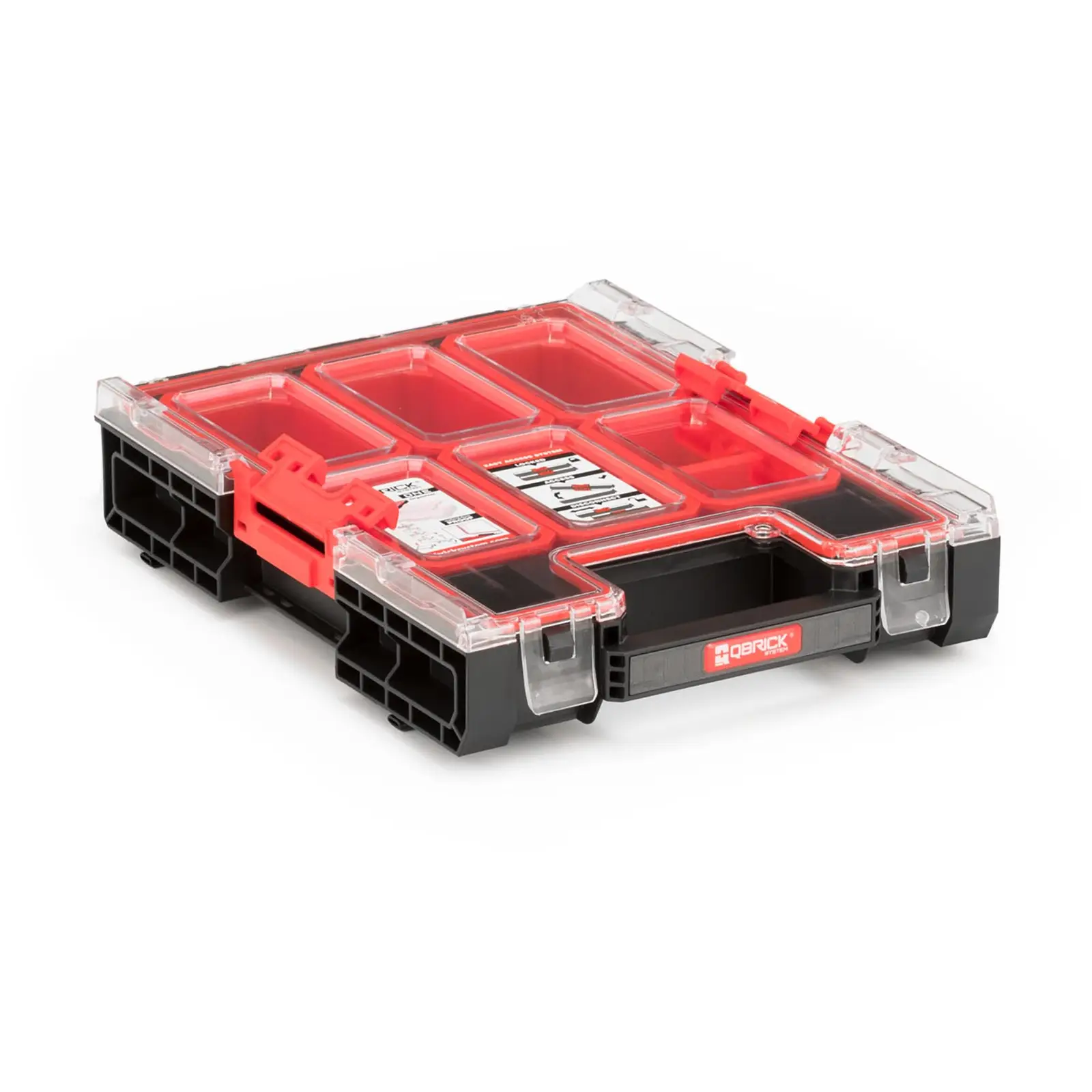 Qbrick System tarjoaa ONE-sarjansa avulla liikkuvan, loputtomasti yhdisteltävän säilytysjärjestelmän työkalulaatikoillaan, kuljetusalustoillaan ja muilla säilytysvaihtoehdoillaan. ONE-järjestelmä säilyttää kaikki työkalusi turvallisesti ja pitää ne kätevästi ulottuvillasi riippumatta siitä, tarvitsetko niitä ammatti- vai harrastelijakäyttöön. Työkalulokerikko ORGQMCZAPG003 laittaa työpajasi järjestykseen. Työkalulaatikko tarjoaa optimaalisen vaihtoehdon pienten työkalujen tai korjaamotarvikkeiden, kuten ruuvien, mutterien tms. säilytykseen. 6 lokerollaan työkalulaatikko tarjoaa paljon kätevää säilytystilaa pienille esineille. Tarvitsetko kuitenkin lisätilaa? Silloin voit yhdistää työkalulaatikon muihin Qbrick System ONE -sarjan laatikoihin! 24,6 x 36,4 x 77 cm kokoinen säilytyslokerikko tarjoaa paljon tilaa ja on silti käytännöllinen ja kannettava. Ergonominen kahva takaa kantomukavuuden ja helpon kuljetuksen. Valmistusmateriaaliensa, polypropeeni + polykarbonaatti, ansiosta työkalulokerikko on erityisen kestävä ja vankka ja tarjoaa laitteillesi täydellisen säilytystilan!
