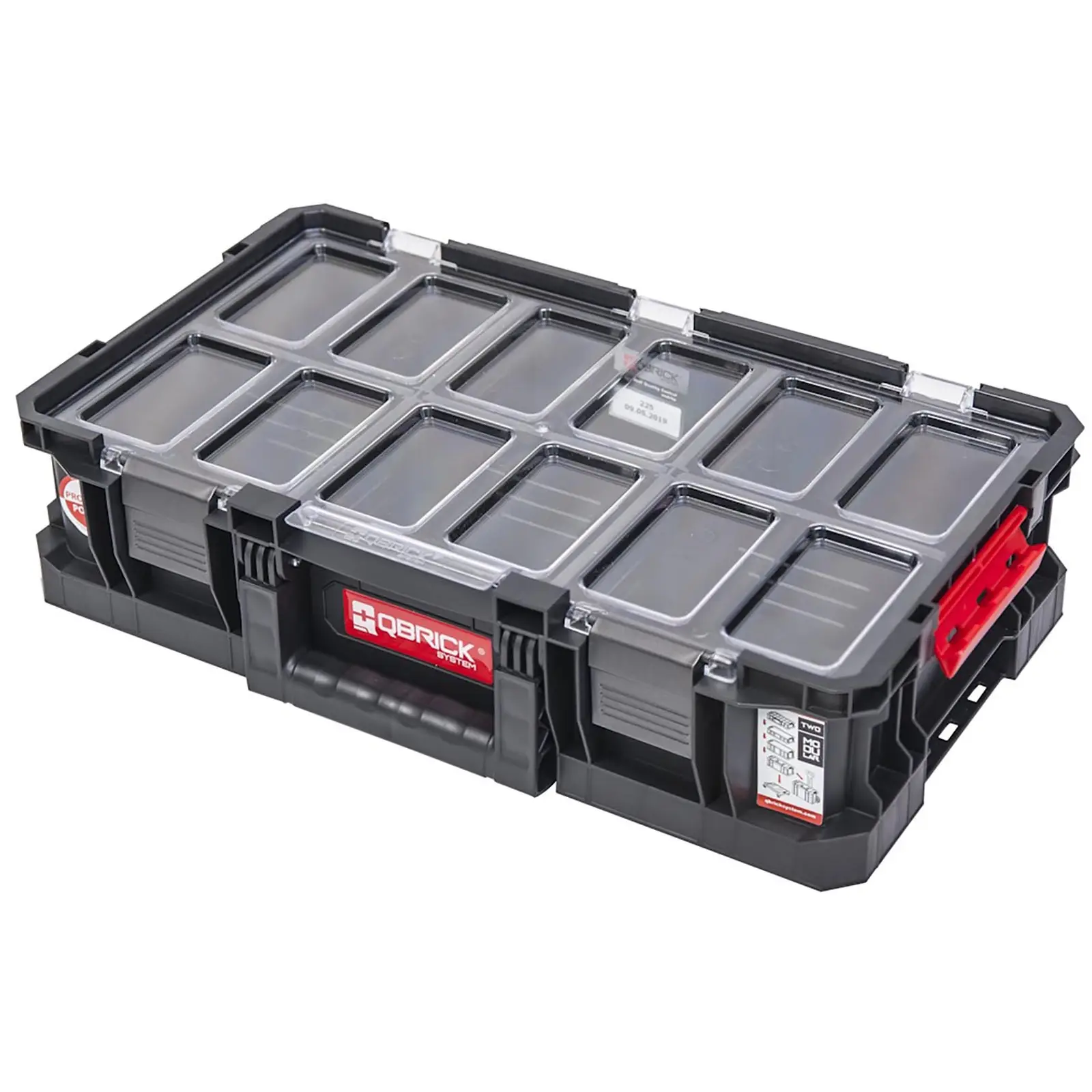 Qbrick System tarjoaa TWO-sarjansa avulla liikkuvan, loputtomasti yhdisteltävän säilytysjärjestelmän työkalulaatikoillaan, kuljetusalustoillaan ja muilla säilytysvaihtoehdoillaan. TWO-järjestelmä säilyttää kaikki työkalusi turvallisesti ja pitää ne kätevästi ulottuvillasi riippumatta siitä, tarvitsetko niitä ammatti- vai harrastelijakäyttöön. Työkalulokerikko SKRQTWOPAOFCZAPG003 laittaa työpajasi järjestykseen. Säilytyslokerikko tarjoaa optimaalisen vaihtoehdon pienten työkalujen tai korjaamotarvikkeiden, kuten ruuvien, mutterien tms. säilytykseen. 6 yksittäisesti irrotettavalla lokerollaan työkalulaatikko tarjoaa paljon kätevää säilytystilaa pienille esineille. Tarvitsetko kuitenkin lisätilaa? Silloin voit yhdistää työkalulaatikon muihin Qbrick System TWO -sarjan laatikoihin! 31 x 53 x 13 cm kokoinen työkalulaatikko tarjoaa paljon tilaa ja on silti käytännöllinen ja kannettava. Ergonominen kahva takaa kantomukavuuden ja helpon kuljetuksen. Valmistusmateriaaliensa, polyamidi + polykarbonaatti, ansiosta työkalulokerikko on erityisen kestävä ja vankka ja tarjoaa laitteillesi täydellisen säilytystilan!
