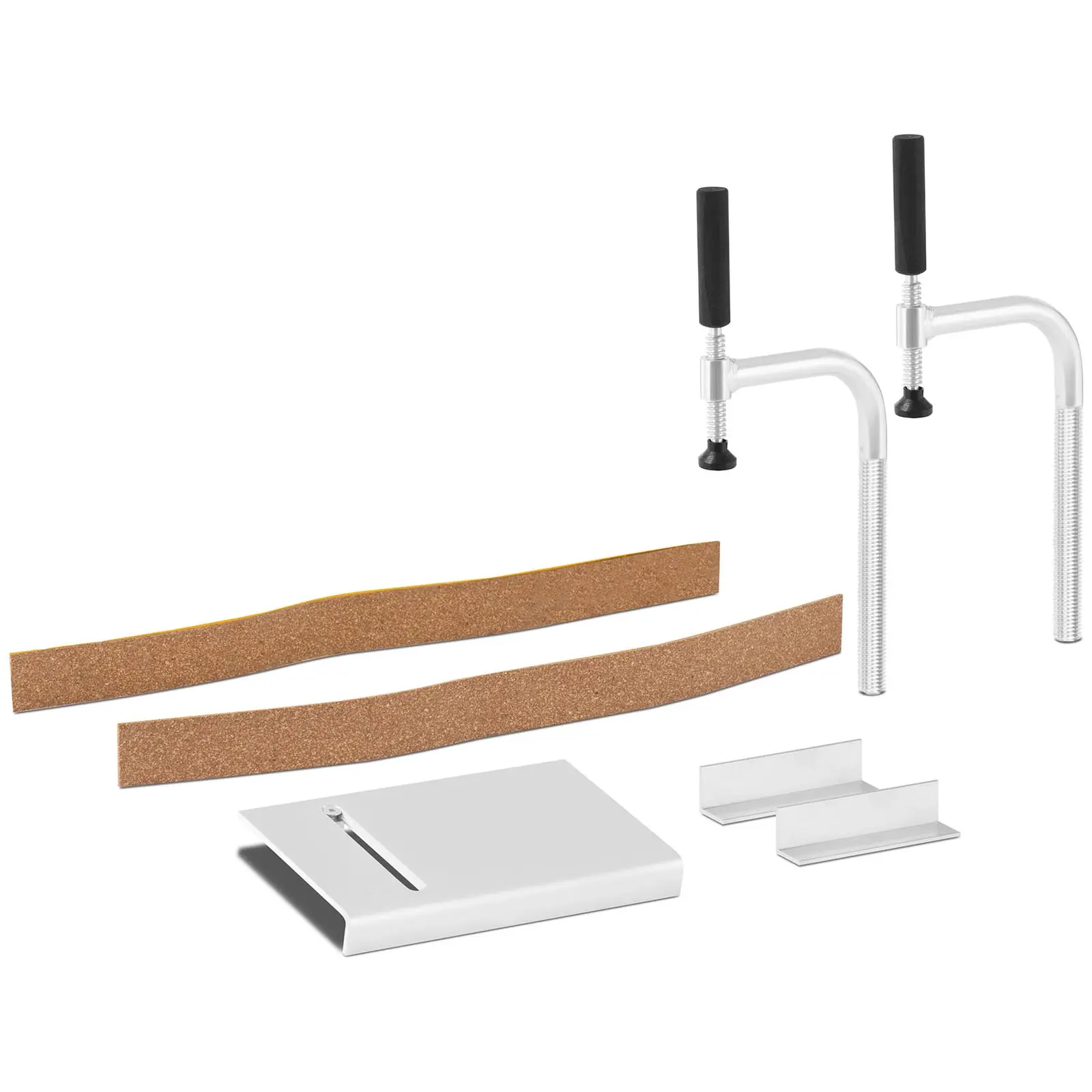 RAMIAn yleiskäyttöiset puusepän tarvikkeet sopivat ihanteellisesti täydentämään jokaista työpenkkiä. Suojien ansiosta suojaat työkappaleesi ja työpenkin naarmuilta ja lovilta. Kiinnitä alasin ja puristimet helposti työpenkin reikiin – ja työ voi alkaa. Käytä kiinnitettävää 250 x 150 x 4 mm alasinta pienten metalliosien työstöön. Yhtä helppokäyttöisiä ovat puusepän tarvikkeisiin sisältyvät teräskiinnikkeet, joiden halkaisija on 19 mm. Ne sopivat sekä pyöreisiin että suorakulmaisiin penkin kiinnitysreikiin ja kiinnittävät työkappaleet luotettavasti työpenkkiin. Suojaa herkkää materiaalia naarmuilta käyttämällä korkkisuojia. Ne sopivat lisäksi RAMIAn työpenkkien puristimiin. Suojien avulla kiinnität pehmeäpintaiset työkappaleet varovasti mutta tukevasti työpenkkiin. Alumiinisuojien ansiosta työpenkin puristimessa voi helposti työstää kovempiakin kappaleita ilman että työtaso vahingoittuu.