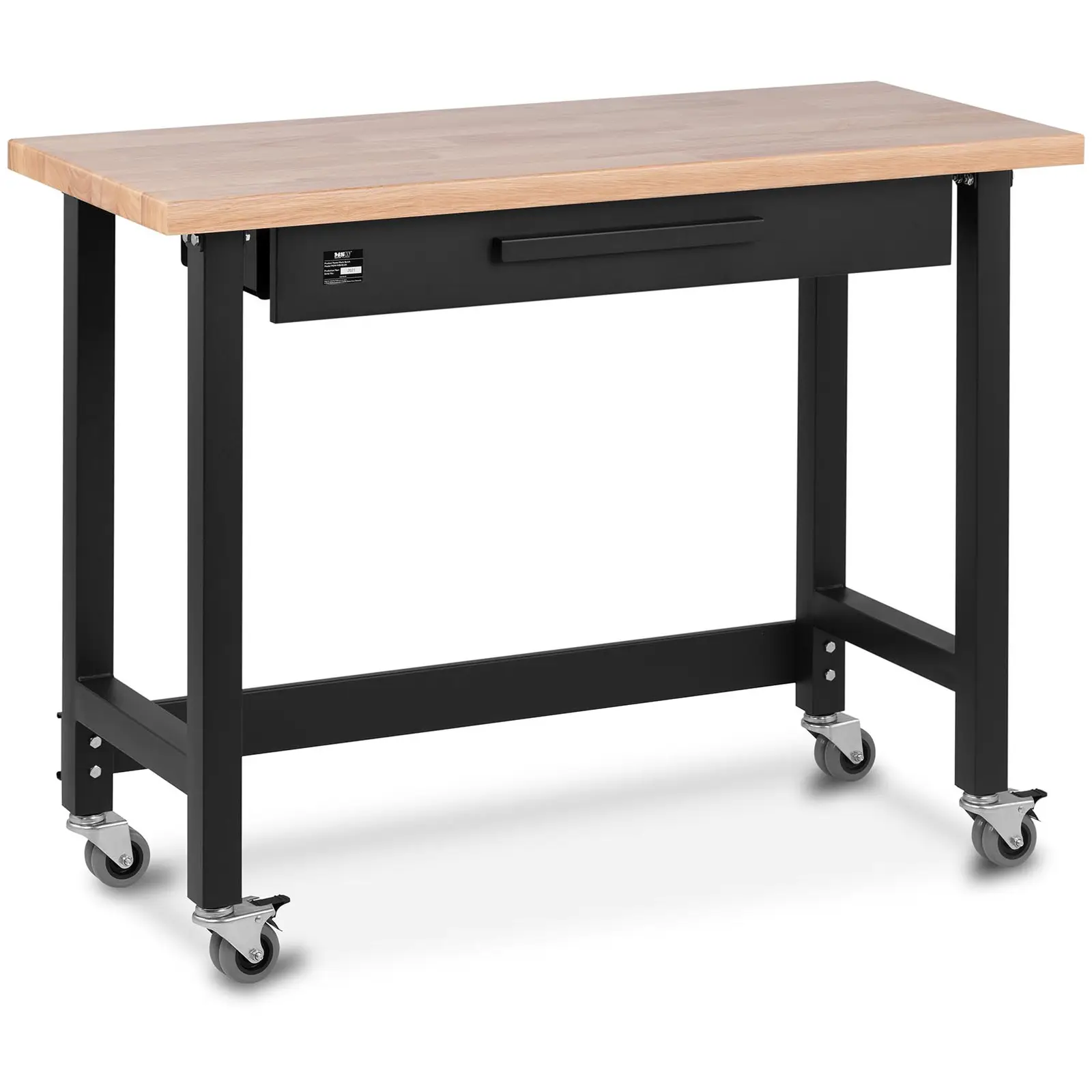 MSW:n ammattilaitteista löytyvä työpenkki MSW-WBHD-04 tarjoaa suuren työtason, jolla voit toteuttaa projekteja. Halusitpa sitten juottaa, porata tai sahata: verstaspöytä kestää kovimmatkin vaatimukset ja on siksi ihanteellinen valinta sekä ammattimaiseen että harrastelijakäyttöön. Vankka rakenne kestää jopa voimakkaan työn, ja sitä voidaan kuormittaa materiaalien ja työkalujen kanssa, joiden yhteispaino on enintään 227 kg. Työpenkin jalusta on valmistettu jauhemaalatusta teräksestä ja on siksi erittäin kestävä korroosiota vastaan. Puinen työtaso on erittäin vankka: työkalut, kuten porakone tai ruuvipenkki, voidaan kiinnittää kiinteään levyyn varmasti ja helposti. Työtason pinta-ala on 122 x 51 cm, joten se tarjoaa runsaasti tilaa monenlaisille töille ja projekteille. Korkeutta voidaan säätää välillä 95 cm mukavan ja ergonomisen työskentelyn mahdollistamiseksi. Vetolaatikossa on tarpeeksi säilytystilaa poraterille, ruuvimeisseleille ja ruuveille. Se voidaan vaivattomasta avata, jotta näet yhdellä silmäyksellä, missä työmateriaalisi on. Työpöytä voidaan koota tai purkaa uudelleen muutamalla yksinkertaisella vaiheella ilman suurta vaivaa. Sitä voidaan käyttää myös liikkuvana tai väliaikaisesti – esimerkiksi kunnostustöissä – ja sen jälkeen laittaa helposti säilytykseen. Tarvittava kokoamismateriaali ja -ohjeet sisältyvät toimitukseen.