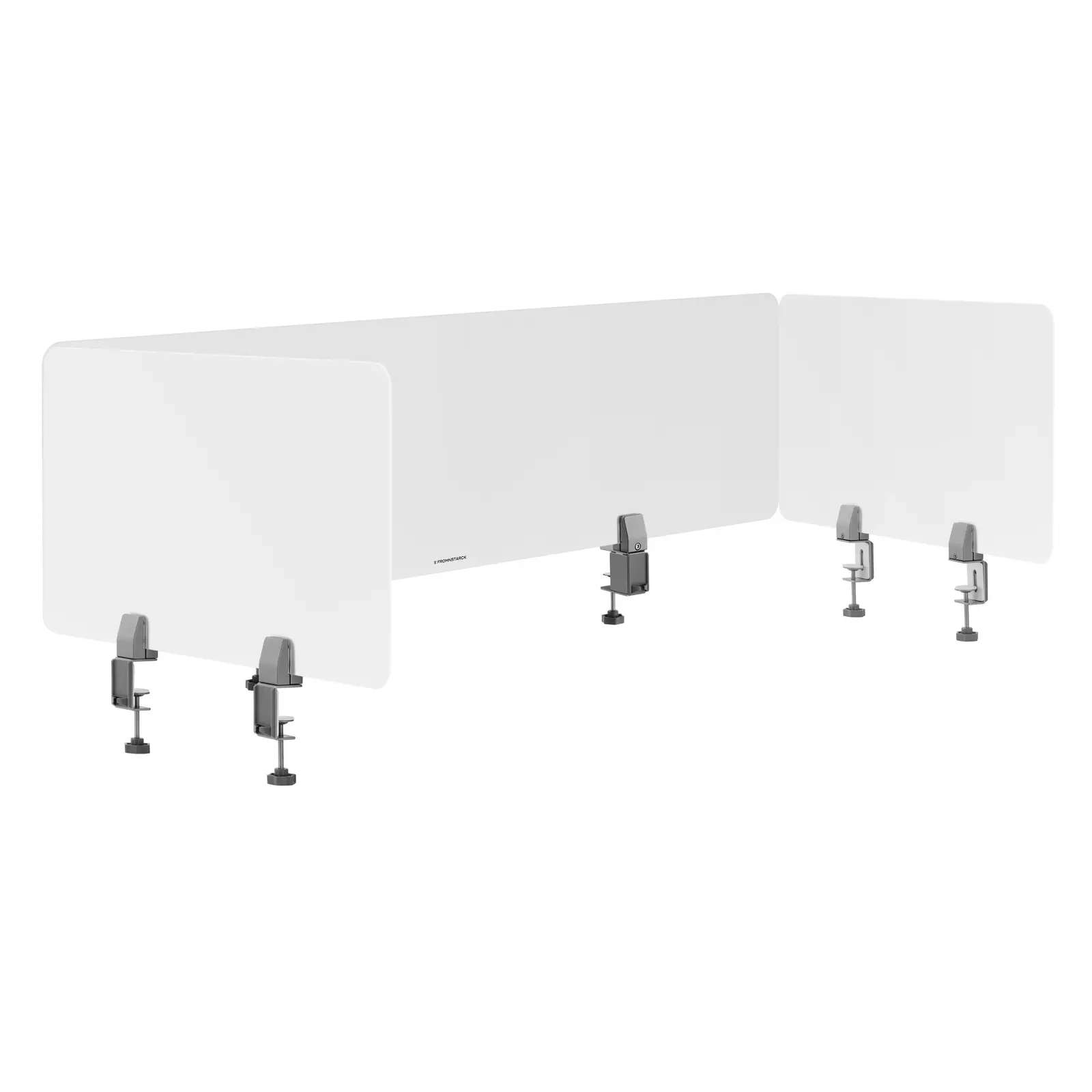 Etsitkö luotettavaa ja käytännöllistä ratkaisua työntekijöiden suojelemiseksi toimistossa? Vai haluatko nostaa ravintolasi tai kauneushoitolasi hygieniavaatimuksia? Fromm & Starckin kolme työpöydän väliseinää voidaan asettaa paikoilleen nopeasti suojaamaan tehokkaasti ilman tai syljen välityksellä leviäviltä viruksilta tai bakteereilta. Luo työntekijöillesi ja asiakkaillesi oma tila, jossa he tuntevat olonsa turvalliseksi! Kolmen väliseinän setti tarjoaa työntekijöille ja asiakkaille suojaa heidän työskennellessään ja hoidon aikana. Väliseinät on valmistettu akryylistä, joka on läpikuultavuudestaan huolimatta läpinäkymätön. Tämä luo erillisen tilan, joka ei vaikuta täysin eristetyltä, mutta tarjoaa silti suojaa. Se on myös erinomainen ratkaisu hygieniakonseptin optimointiin! Työpöydän näkösuoja on helppo asentaa ja sitä voidaan käyttää vaihtelevasti tarpeidesi mukaan. 5 mm paksuiset väliseinät on helposti liitettävissä pöydän reunaan kiinnikkeillä. Toimistokalusteiden asiantuntija Fromm & Starck tarjoaa valittavaksi erikokoisia tuotteita, joita voi yhdistellä keskenään. Työpöydän väliseinä parantaa työpisteiden turvallisuutta, jolloin työntekijät ja asiakkaat tuntevat olonsa suojatuiksi. Mutta myös ravintoloissa, jopa ahtaissa tiloissa hygieniakonseptia voidaan optimoida huomaamattomasti. Laadukas materiaali ei sisällä myrkyllisiä aineita ja sitä voidaan käyttää huoletta monenlaisissa ympäristöissä. Kaikki pinnat on helposti puhdistettavia ja desinfioitavia, mikä tarkoittaa, että ne täyttävät korkeimmatkin hygieniavaatimukset.
