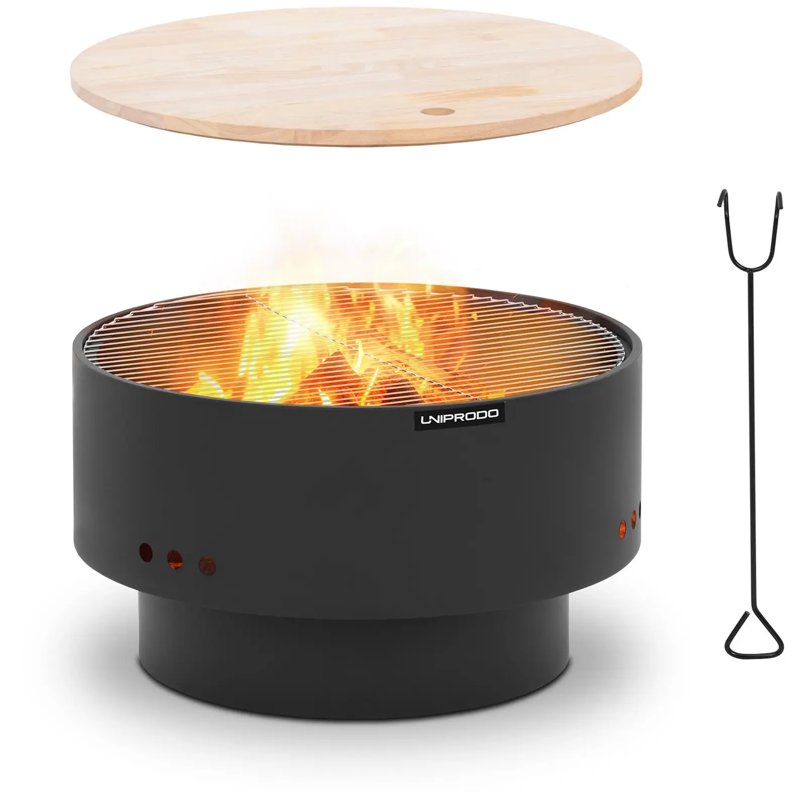 Uniprodon ulkotulisija on täydellinen lisä puutarhaan tai terassille ja tarjoaa lämpöä, rentoa tunnelmaa ja kutsuvan ilmapiirin iltanuotiolla istumiseen. Samalla tulipesä täydentää ulkotilojesi tyyliä ainutlaatuisella muotoilullaan. Toimitukseen sisältyy myös grilliritilä, jonka avulla voit paistaa tulipesässä makkaroita ja vaahtokarkkeja illanvieton yhteydessä. Keskitiheästä puusta valmistettu kansi mahdollistaa tulisijan käytön myös tyylikkäänä sivupöytänä. Ulkotulisijassa poltat nuotiota turvallisesti ja siististi. Sen erityinen rakenne varmistaa, että palavat puut saavat reilusti happea. Lisäksi se pitää savun ja tuhkan poissa silmistäsi. Pitkäikäisistä materiaaleista valmistettu tulipesä kestää loistavasti kovaakin kuumuutta sekä ruostetta ja muita ulkoisia vaikutuksia. Tulisija ulos takaakin kodikkaan tunnelman liekkien loimussa vuosien ajan.