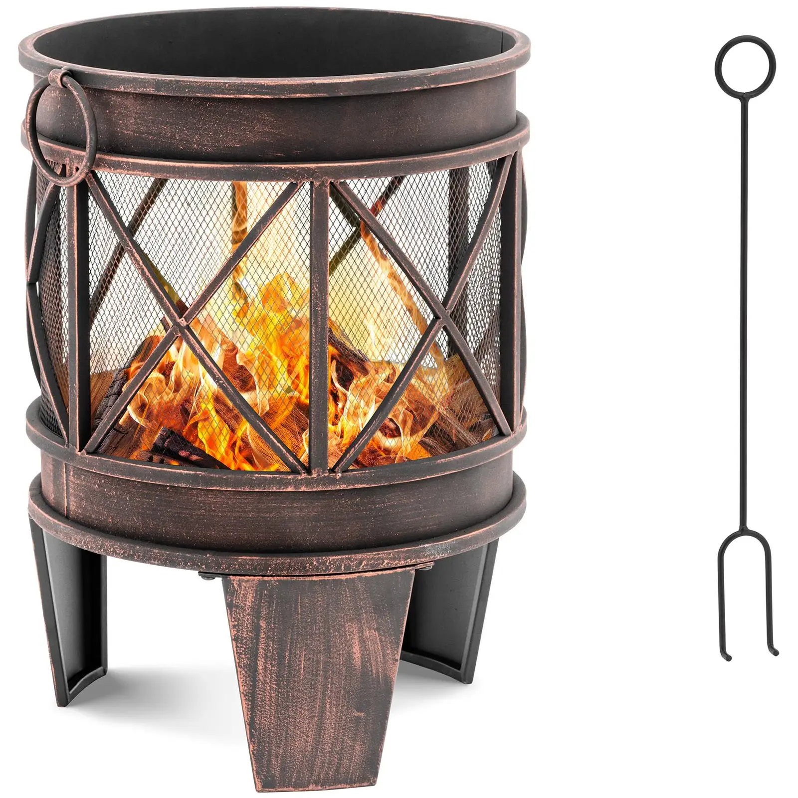 Etsitkö tapaa viettää viihtyisiä iltoja ystäväpiirisi kanssa? Siinä tapauksessa hillvertin pronssipinnoitettu ulkotulisija on ylellinen ja kestävä ratkaisu tarpeisiisi! Fiksun rakenteensa ansiosta tulipesä ei ole vain erityisen kevyt, vaan se on myös nopea pystyttää haluamaasi paikkaan, käytit sitä sitten puutarhassa, terassilla tai matkalla. Ulkotulisijassa voit pitää tulta turvallisesti ja siististi. Sen erityinen rakenne varmistaa, että palavat puut saavat reilusti happea. Lisäksi se pitää savun ja tuhkan poissa silmistäsi. Luotettava suojaritilä estää kipinöitä ja roskia lentämästä ympäriinsä palamisen aikana, kun taas suuri kapasiteetti takaa pitkät paloajat. Tämä malli seisoo kolmella jalalla ja on erityisen vakaa. X-muotoinen vahvistus lisää vakautta. Päällystetystä, tulenkestävästä teräksestä valmistettu tulipesä kestää loistavasti kovaakin kuumuutta sekä ruostetta ja muita ulkoisia vaikutuksia. Tulisija takaa kodikkaan tunnelman liekkien loimussa vuosien ajan. Toimitukseen sisältyy asennusmateriaalin lisäksi myös käytännöllinen hiilihanko.