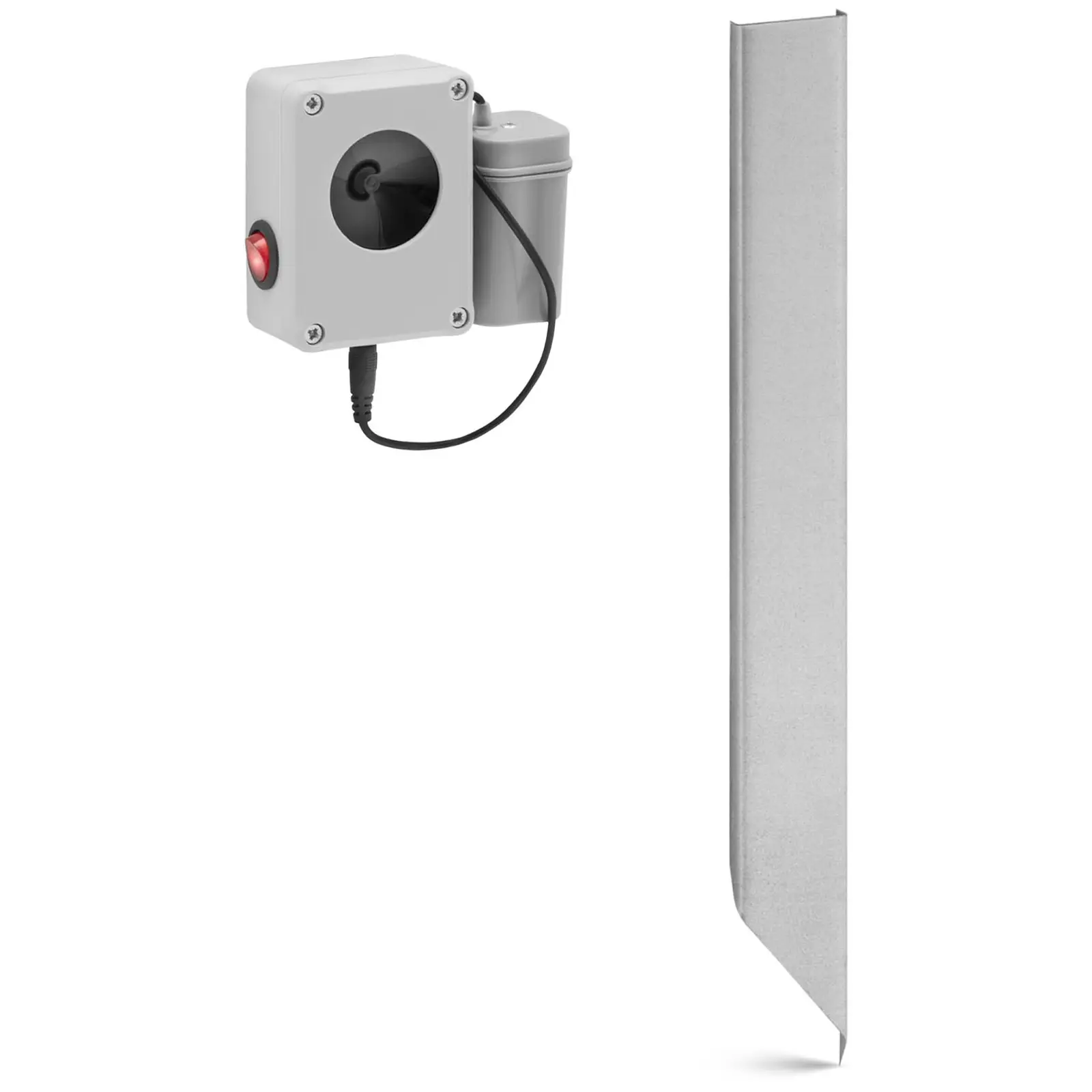 Puutarhassa tai rakennusten sisällä: Wiesenfieldin ultraäänikarkotin suojaa luotettavasti suuria alueita hiiriltä, rotilta, näädiltä ja muilta jyrsijöiltä. Vaaraton ja ihmisille huomaamaton ultraäänisignaali ajaa tuholaiset tehokkaasti pois. Säännöllisesti vaihtuvat taajuudet estävät eläimiä tottumasta signaaliin. Tehokkaassa ultraääni-eläinkarkottimessa on ammattimainen kaiutin, jossa on polypropeenikalvo. Se kattaa jopa 1500 m² kokoisen alueen 180° kulmassa. Vedenpitävällä kotelollavarustettu ja ladattavilla paristoilla (ei sisälly toimitukseen) toimiva Ultrasonic Animal Repeller sopii sekä sisä- että ulkokäyttöön. Ammattimainen teollisuuskotelo kuuluu suojausluokkaan IP67. Se on erittäin vastustuskykyinen mekaanisia vaurioita, auringon säteilyä, sadetta ja pakkasta vastaan. Lisäksi se sallii -30 ~ 70 °C käyttölämpötilan. Ultraääni-eläinkarkottimen asentaminen on lasten leikkiä: voit asentaa laitteen käyttämällä sen mukana toimitettavaa 45 cm korkeaa tukitolppaa, ripustaa sen metallikoukkuun tai kiinnittää sen putkiin, kouruihin, hyllyihin, lämpöpattereihin tai muihin rautapintoihin sen vahvalla magneetilla. Virtalähteenä käytät neljää ladattavaa AA-paristoa (ei sisälly toimitukseen), joten voit sijoittaa karkottimen juuri sinne, missä sitä tarvitset – jopa ilman pistorasiaa.