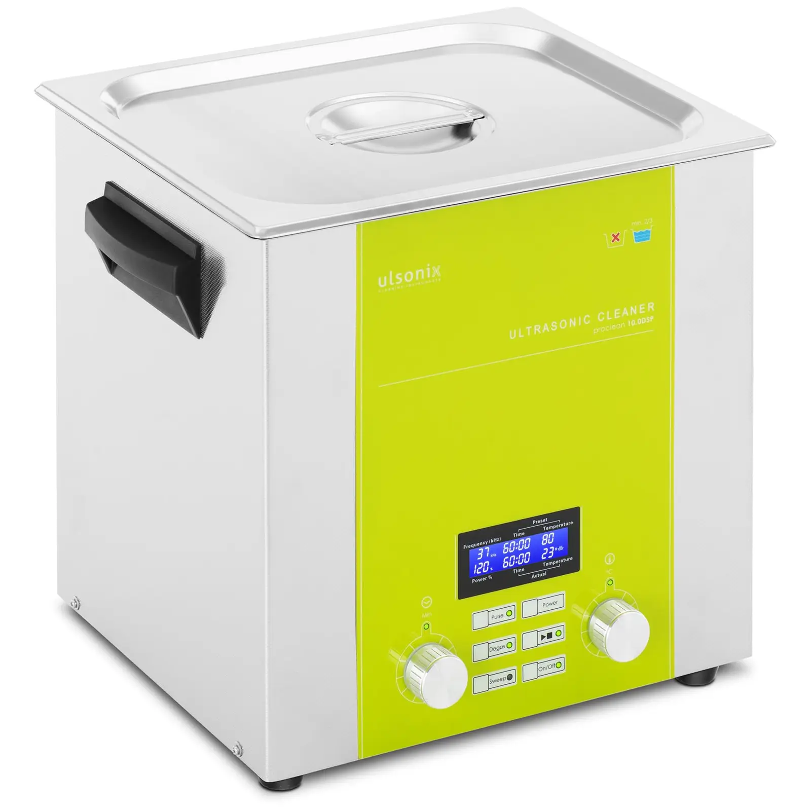 Tämä ulsonixin ultraäänipesuri PROCLEAN 10. 0DSP Degas-, Sweep- ja pulssitoiminnoilla on välttämätön kaikkialla, missä halutaan puhdistaa erittäin herkkiä instrumentteja, kuten kultasepän työkaluja tai mekaanisia ja elektronisia osia perusteellisesti: olipa kyseessä sitten lääkärin vastaanotto, laboratorio, tatuointistudio, koruliike, kellosepänliike, tai optikko. Pesurilla puhdistat lisäksi korut, jalokivet, kolikot, ruokailuvälineet tai silmälasit luotettavasti myös yksityiskäytössä. Lisätoimintojen, Degas, Sweep ja Pulse avulla voit vaikuttaa pesurin puhdistustapaan yksilöllisesti saavuttaaksesi parhaat tulokset. Degas-toiminnolla (kaasunpoisto) poistat puhdistusnesteestä siihen sitoutuneet kaasut, jotka saattavat häiritä puhdistusvaikutusta. Sweep-toiminto (pyyhkäisy) jakaa ultraäänitaajuuden tasaisesti pesusäiliössä, jolloin puhdistusteho paranee. Pulse – toiminto (pulssi) nostaa aallontaajuutta 120 prosenttiin – näin myös pinttynyt lika saadaan irrotettua. Memory Quick -toiminto yksinkertaistaa ultraäänipesurin käyttöä, sillä voit koska tahansa keskeyttää puhdistuksen tai soveltaa jo aiemmin säädettyjä aikoja. Puhdistusaika voidaan säätää LED-näytön sisältävältä, digitaaliselta käyttöpaneelilta välille 0 – 100 min. Jatkuva käyttö -toiminnolla voit puhdistaa erittäin likaiset osat. Ultraäänipesukoneen lämmitysteho on 310 W ja tarkkaan valitun puhdistusprosessin lämpötila on säädettävissä aina 80 °C saakka. Neljä 320 W ja 37 kHz ultraäänilähetintä puhdistavat huolellisesti ja tehokkaasti myös vaikeasti saavutettavat paikat ja jopa paikat, joita ihmissilmä ei erota. Ultraäänipesuri PROCLEAN 10. 0DSP sisältää ruostumatonta terästä olevan 10-litran-säiliön, korin ja kannen. Hyvälaatuinen materiaali tekee ultraäänipesukoneesta vankan ja helposti puhdistettavan.