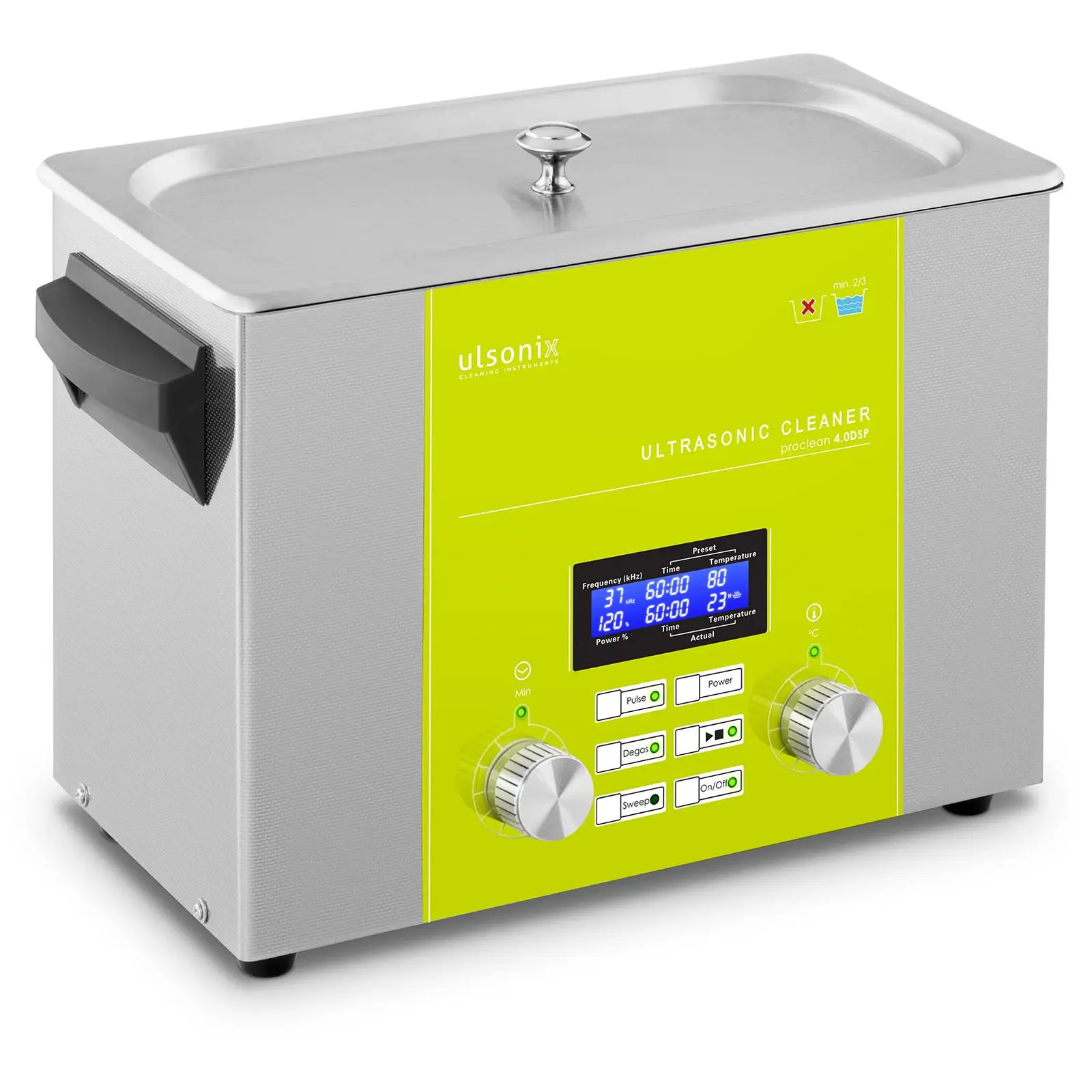 Tämä ulsonixin ultraäänipesuri PROCLEAN 4. 0DSP Degas-, Sweep- ja pulssitoiminnoilla on välttämätön kaikkialla, missä halutaan puhdistaa erittäin herkkiä instrumentteja, kuten kultasepän työkaluja tai mekaanisia ja elektronisia osia perusteellisesti: olipa kyseessä sitten lääkärin vastaanotto, laboratorio, tatuointistudio, koruliike, kellosepänliike, tai optikko. Pesurilla puhdistat lisäksi korut, jalokivet, kolikot, ruokailuvälineet tai silmälasit luotettavasti myös yksityiskäytössä. Lisätoimintojen, Degas, Sweep ja Pulse avulla voit vaikuttaa pesurin puhdistustapaan yksilöllisesti saavuttaaksesi parhaat tulokset. Degas-toiminnolla (kaasunpoisto) poistat puhdistusnesteestä siihen sitoutuneet kaasut, jotka saattavat häiritä puhdistusvaikutusta. Sweep-toiminto (pyyhkäisy) jakaa ultraäänitaajuuden tasaisesti pesusäiliössä, jolloin puhdistusteho paranee. Pulse – toiminto (pulssi) nostaa aallontaajuutta 120 prosenttiin – näin myös pinttynyt lika saadaan irrotettua. Memory Quick -toiminto yksinkertaistaa ultraäänipesurin käyttöä, sillä voit koska tahansa keskeyttää puhdistuksen tai soveltaa jo aiemmin säädettyjä aikoja. Puhdistusaika voidaan säätää LED-näytön sisältävältä, digitaaliselta käyttöpaneelilta välille 0 – 60 min. Jatkuva käyttö -toiminnolla voit puhdistaa erittäin likaiset osat. Ultraäänipesukoneen lämmitysteho on 220 W ja tarkkaan valitun puhdistusprosessin lämpötila on säädettävissä aina 80 °C saakka. Kaksi 160 W ja 37 kHz ultraäänilähetintä puhdistavat huolellisesti ja tehokkaasti myös vaikeasti saavutettavat paikat ja jopa paikat, joita ihmissilmä ei erota. Ultraäänipesuri PROCLEAN 4. 0DSP sisältää ruostumatonta terästä olevan 4-litran-säiliön, korin ja kannen. Hyvälaatuinen materiaali tekee ultraäänipesukoneesta vankan ja helposti puhdistettavan.