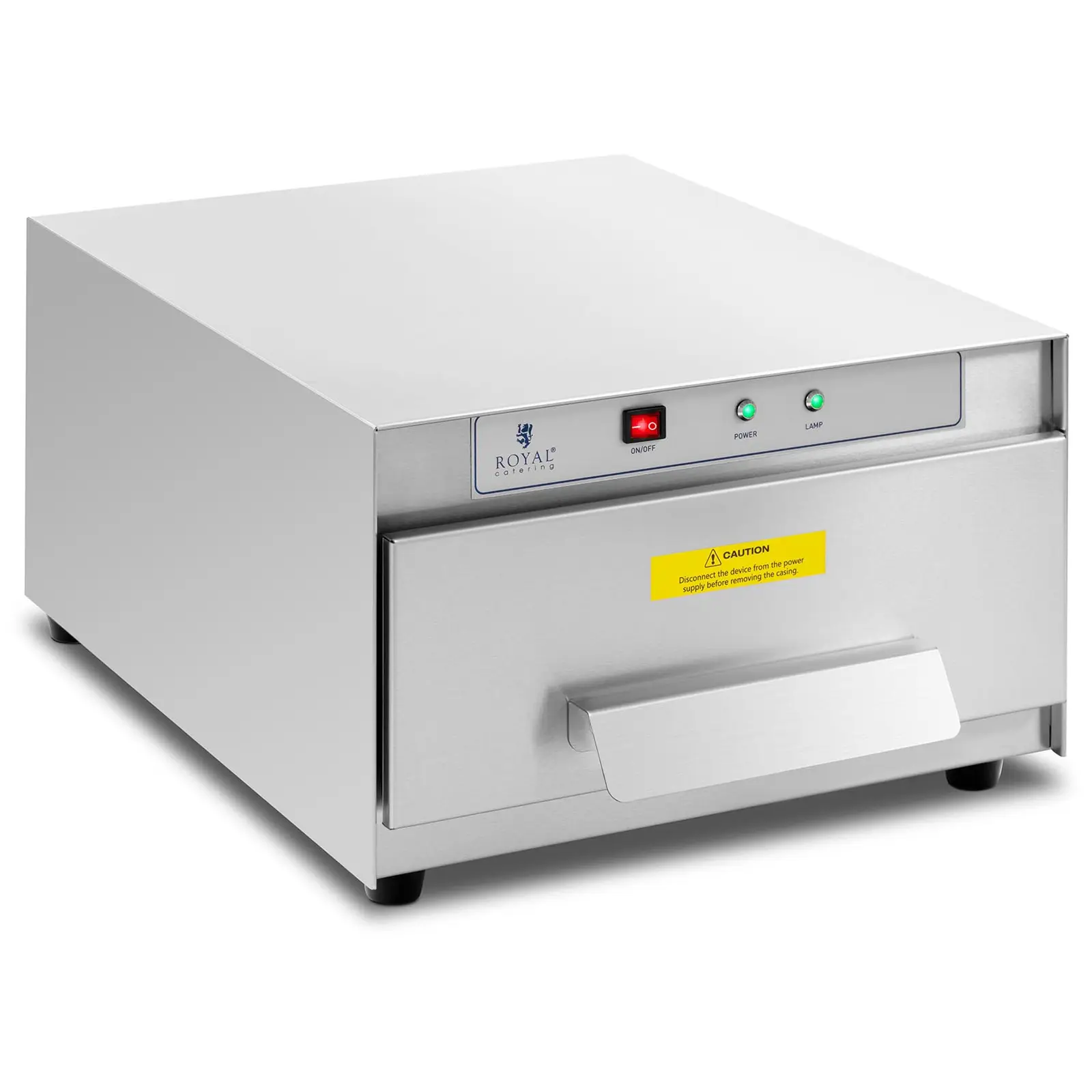 Royal Cateringin veitsisterilointilaitteella nostat keittiön hygieniastandardit uudelle tasolle. Ympäristöystävällinen, luotettava ja alhaisilla käyttökustannuksilla on tämä jopa 16 veitsen tai 30 munan sterilointilaite välttämätön keittiöväline, jolla on bakteereja tappava vaikutus ilman kemikaaleja. UV-valonsterilointi on erityisen tehokasta vähentämään jopa 99 % bakteereista, ja sitä on käytetty vuosien ajan desinfioimaan kirurgiset välineet tai työpinnat sekä laboratoriovälineet. Ympäristöystävällinen ja energiaa säästävä menetelmä otettiin käyttöön Royal Cateringin veitsisterilointilaitteelle ja mukautettiin ravintola-alan tarpeisiin. Sterilointilaite 16 veitselle tai 30 munalle on ihanteellinen ravintoloiden, hotellien, baarien ja muiden elintarvikkeita käsittelevien paikkojen tiukoille hygieniavaatimuksille. Sterilointilaitteen kotelo on valmistettu hygieenisestä ja kestävästä ruostumattomasta teräksestä. Kätevää käsittelyä varten sterilointilaite on varustettu LED-näytöllä ja ajastimella. Sterilointiprosessi kestää vain 90 s. Laite toimii erittäin tehokkaasti 60 W teholla. Viimeisenä, mutta ei vähäisimpänä, UV-sterilointilaite on erityisen ympäristöystävällinen, koska kemikaaleja ei tarvita keittiövälineiden sterilointiin.