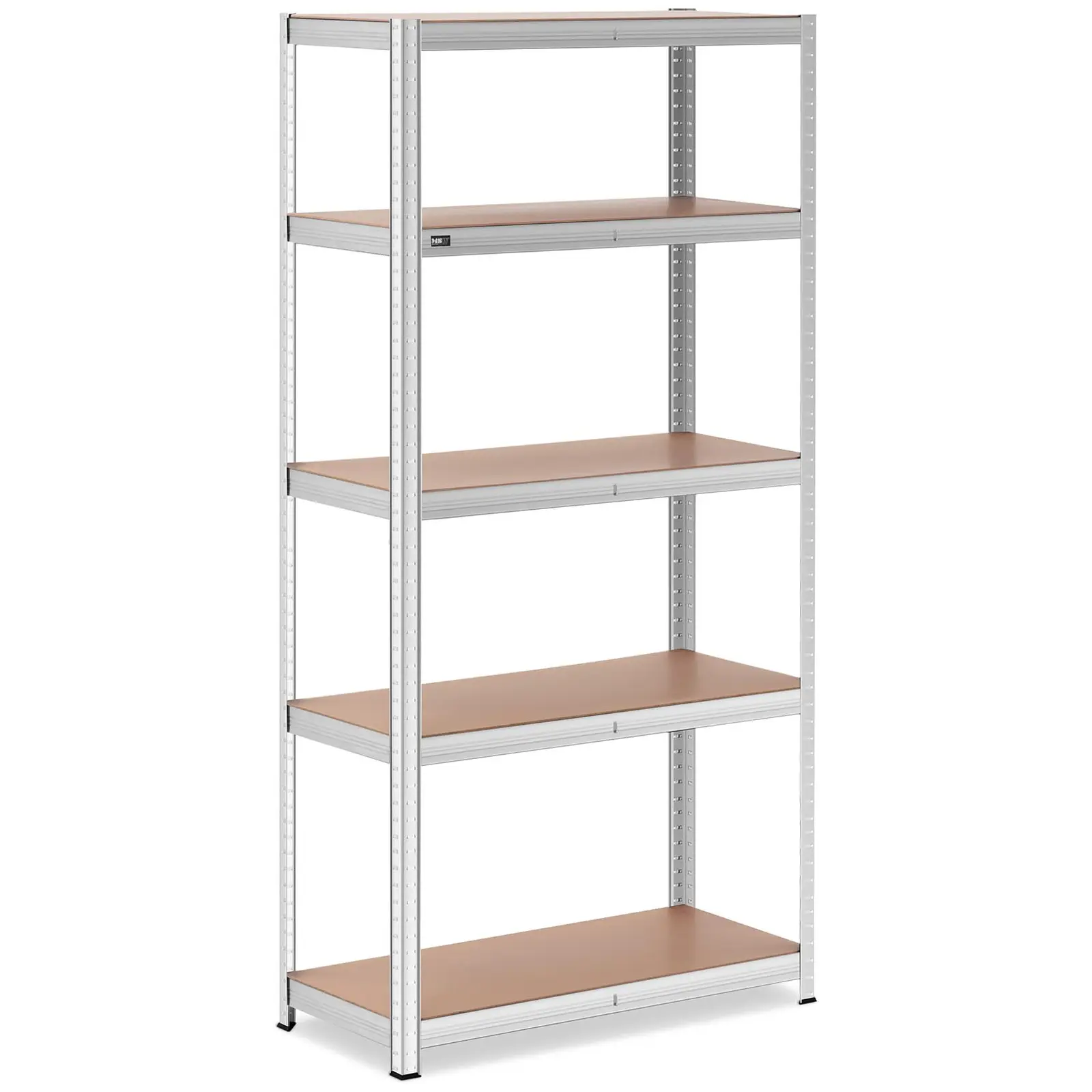 Haluatko säilyttää painavia tavaroita ja antaa sisustuksellesi modernin teollisen tyylin? Tällöin MSW:n varastohylly on juuri oikea valinta! Viidelle korkeudeltaan säädettävälle hyllytasolle mahtuu runsaasti tavaraa, olipa kyseessä varasto, supermarket, hotelli, kellari tai yksityisasunto. Tämän varastohyllyn kokoaminen sujuu käden käänteessä ilman vaivalloista ruuvaamista. Liität vain osat yhteen ja hylly on valmis. Näppärä ominaisuus: voit vapaasti päättää hyllytasojen korkeuden työntämällä ne haluamiisi kohtiin päädyissä. Jokaisen hyllytason kantokyky on 150 kg. Tasot ovat yhtenäisiä levyjä eivätkä ritilöitä. Tämän ansiosta voit säilyttää niillä pieniäkin esineitä. Alemmalla hyllyllä olevat esineet ovat myös suojassa mahdollisesti ulos vuotavilta nesteiltä. Varastohyllyn mitat ovat 100 x 50 x 197 cm, joten se mahtuu melkeinpä minne vain. Metallihyllyn putket ovat ruosteenkestävää ja helppohoitoista galvanoitua terästä. Toisaalta ne antavat varastohyllylle modernin, teollisen ilmeen. Siksi hylly sopii varastojen ja kellarien lisäksi myös esillä oleviin tiloihin kaupoissa, supermarketeissa, hotelleissa tai jopa yksityisasunnoissa.