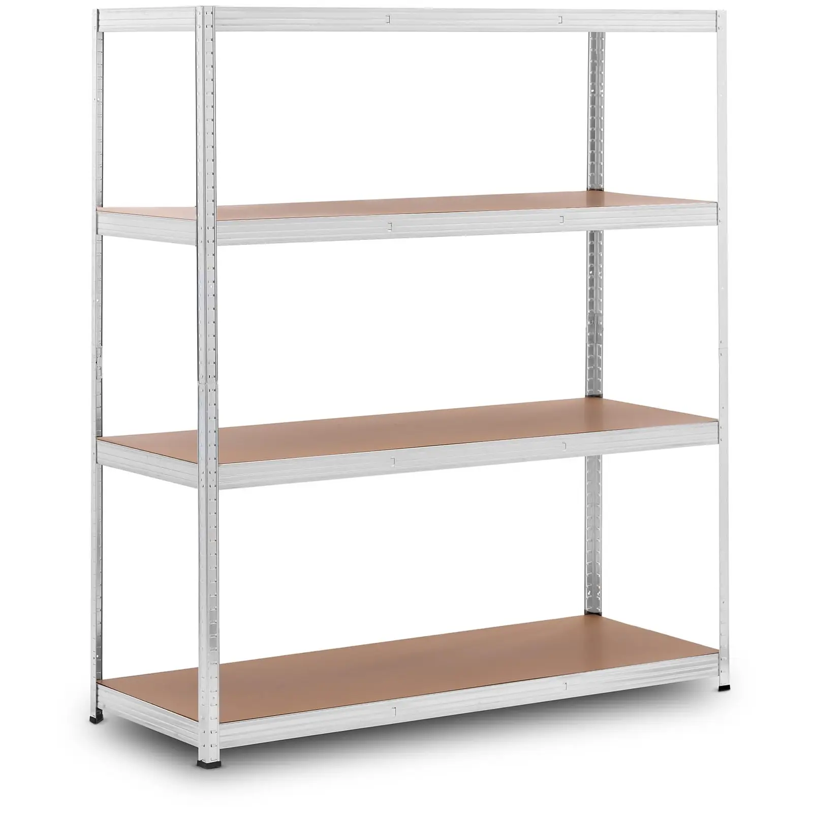 Haluatko säilyttää painavia tavaroita ja antaa sisustuksellesi modernin teollisen tyylin? Tällöin MSW:n varastohylly on juuri oikea valinta! Neljälle korkeudeltaan säädettävälle hyllytasolle mahtuu runsaasti tavaraa, olipa kyseessä varasto, supermarket, hotelli, kellari tai yksityisasunto. Tämän varastohyllyn kokoaminen sujuu käden käänteessä ilman vaivalloista ruuvaamista. Liität vain osat yhteen ja hylly on valmis. Näppärä ominaisuus: voit vapaasti päättää hyllytasojen korkeuden työntämällä ne haluamiisi kohtiin päädyissä. Jokaisen hyllytason kantokyky on 150 kg. Tasot ovat yhtenäisiä levyjä eivätkä ritilöitä. Tämän ansiosta voit säilyttää niillä pieniäkin esineitä. Alemmalla hyllyllä olevat esineet ovat myös suojassa mahdollisesti ulos vuotavilta nesteiltä. Varastohyllyn mitat ovat 160 x 60 x 180 cm, joten se mahtuu melkeinpä minne vain. Metallihyllyn putket ovat ruosteenkestävää ja helppohoitoista galvanoitua terästä. Toisaalta ne antavat varastohyllylle modernin, teollisen ilmeen. Siksi hylly sopii varastojen ja kellarien lisäksi myös esillä oleviin tiloihin kaupoissa, supermarketeissa, hotelleissa tai jopa yksityisasunnoissa.