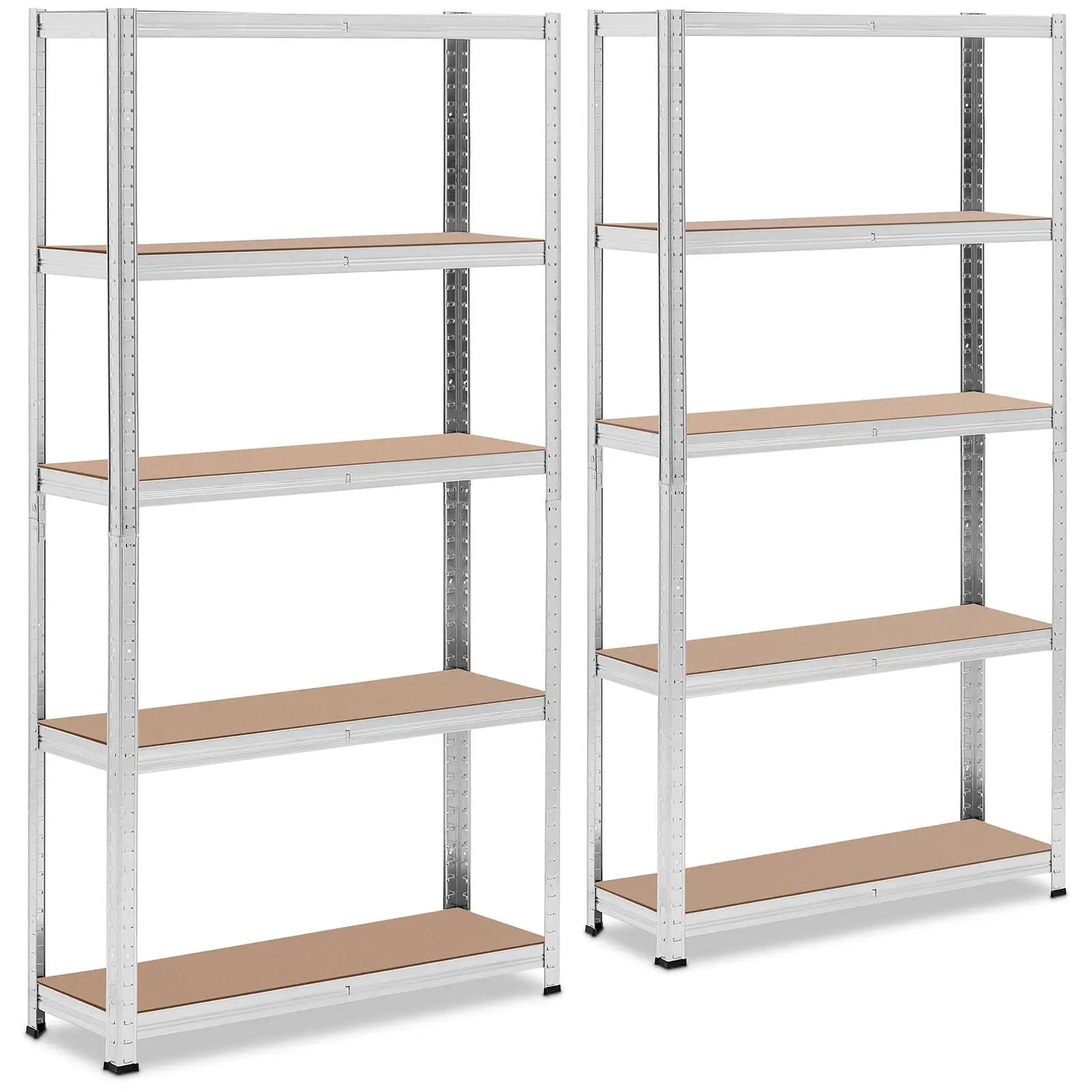 Haluatko säilyttää painavia tavaroita ja antaa sisustuksellesi modernin teollisen tyylin? Tällöin MSW:n varastohyllyt ovat sinulle oikea ratkaisu! Viidelle korkeudeltaan säädettävälle hyllytasolle mahtuu runsaasti tavaraa, olipa kyseessä varasto, supermarket, hotelli, kellari tai yksityisasunto. Tämän varastohyllyn kokoaminen sujuu käden käänteessä ilman vaivalloista ruuvaamista. Liität vain osat yhteen ja hylly on valmis. Näppärä ominaisuus: voit vapaasti päättää hyllytasojen korkeuden työntämällä ne haluamiisi kohtiin päädyissä. Jokaisen hyllytason kantokyky on 175 kg. Tasot ovat yhtenäisiä levyjä eivätkä ritilöitä. Tämän ansiosta voit säilyttää niillä pieniäkin esineitä. Alemmalla hyllyllä olevat esineet ovat myös suojassa mahdollisesti ulos vuotavilta nesteiltä. Varastohyllyn mitat ovat 90 x 30 x 180 cm, joten se mahtuu melkeinpä minne vain. Metallihyllyn putket ovat ruosteenkestävää ja helppohoitoista galvanoitua terästä. Toisaalta ne antavat varastohyllylle modernin, teollisen ilmeen. Siksi hylly sopii varastojen ja kellarien lisäksi myös esillä oleviin tiloihin kaupoissa, supermarketeissa, hotelleissa tai jopa yksityisasunnoissa.