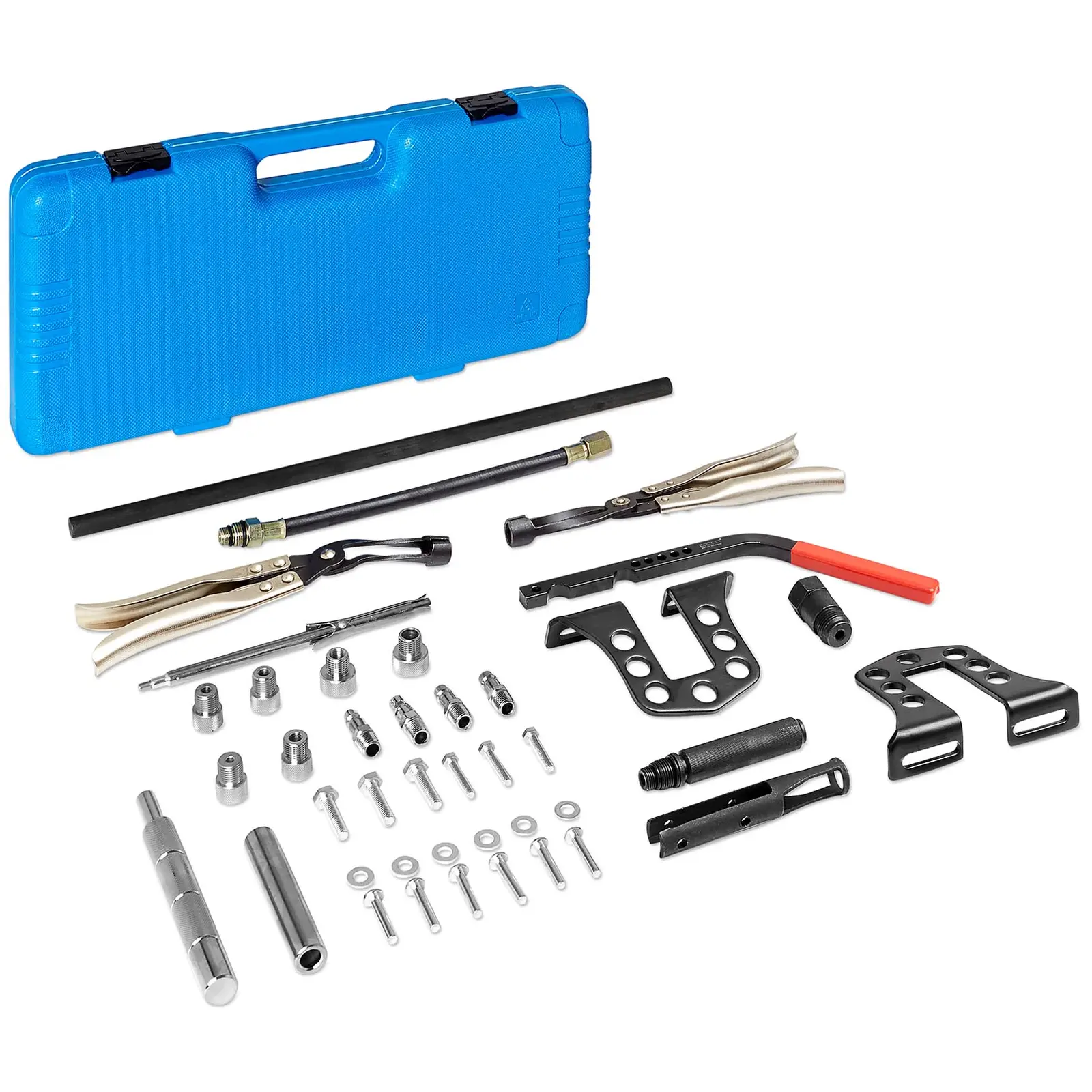 Venttiilijousipuristinsarja on ihanteellinen autotyökalu venttiilijousien ja karatiivisteiden näppärään irrotukseen ja asennukseen. Työkalun toimituksen sisältöön kuuluu kaikki, mitä irrotus- ja asennustyöhön vaaditaan. Venttiilijousipuristin sopii yleisimpiin autotyyppeihin ja sekä bensiini- että dieselmoottoreihin. Sopivuutensa puolesta paineilma venttiilijousipuristinsarja on ihanteellinen autokorjaamoihin; mutta työkalu on myös erinomainen lisä intohimoisten autoharrastajien työkaluvarustukseen. Venttiilijousipuristin sopii käytettäväksi eri merkkisissä autoissa, kuten Audi, Nissan, Toyota, Chrysler, Honda, Mazda, Mitsubishi, Porsche, Volvo, VW jne. Se soveltuu yleisesti monille bensiini- (OHV ja OHC) ja dieselmoottoreille, joissa on 8, 16 tai 24 venttiiliä. Periaatteessa karan tiivisteet, venttiilijouset tai venttiilikiilat voidaan vaihtaa helposti. Kun venttiilikaratiivisteen vaihto halutaan suorittaa paineilman avulla voidaan sylinteriin asettaa paine sopivan adapterin avulla. Tämä toimintatapa helpottaa työtä huomattavasti ja mahdollistaa jopa syvällä istuvien venttiilien ongelmattoman vaihdon. Kätevää tässä venttiilijousipuristinsarjassa on, ettei itse sylinterinkantta tarvitse purkaa. Mukana toimitettavat pihdit mahdollistavat lisäksi yksinkertaisen ja nopean irrotuksen, vaikka venttiilitiivisteet olisivat öljyisiä tai tiukasti istuvia. Adapterien, kahvojen ja hylsyjen uritukset takaavat parhaan pidon öljyisissä olosuhteissa. Ne mahdollistavat myös karan öljytiivisteiden poistamisen suorassa kulmassa vahingoittamatta jousia. Työkalusarja on valmistettu korkealaatuisesta ja kestävästä teräksestä, mikä takaa pitkän käyttöiän. Kätevässä säilytysalkussa sarjan kaikki osat ja tarvikkeet säilyvät selkeästi ja varmasti ja siinä ne on helppo varastoida, kun niitä ei tarvita. Säilytyssalkku mahdollistaa myös venttiilijousipuristinsarjan ongelmattoman liikuteltavuuden.