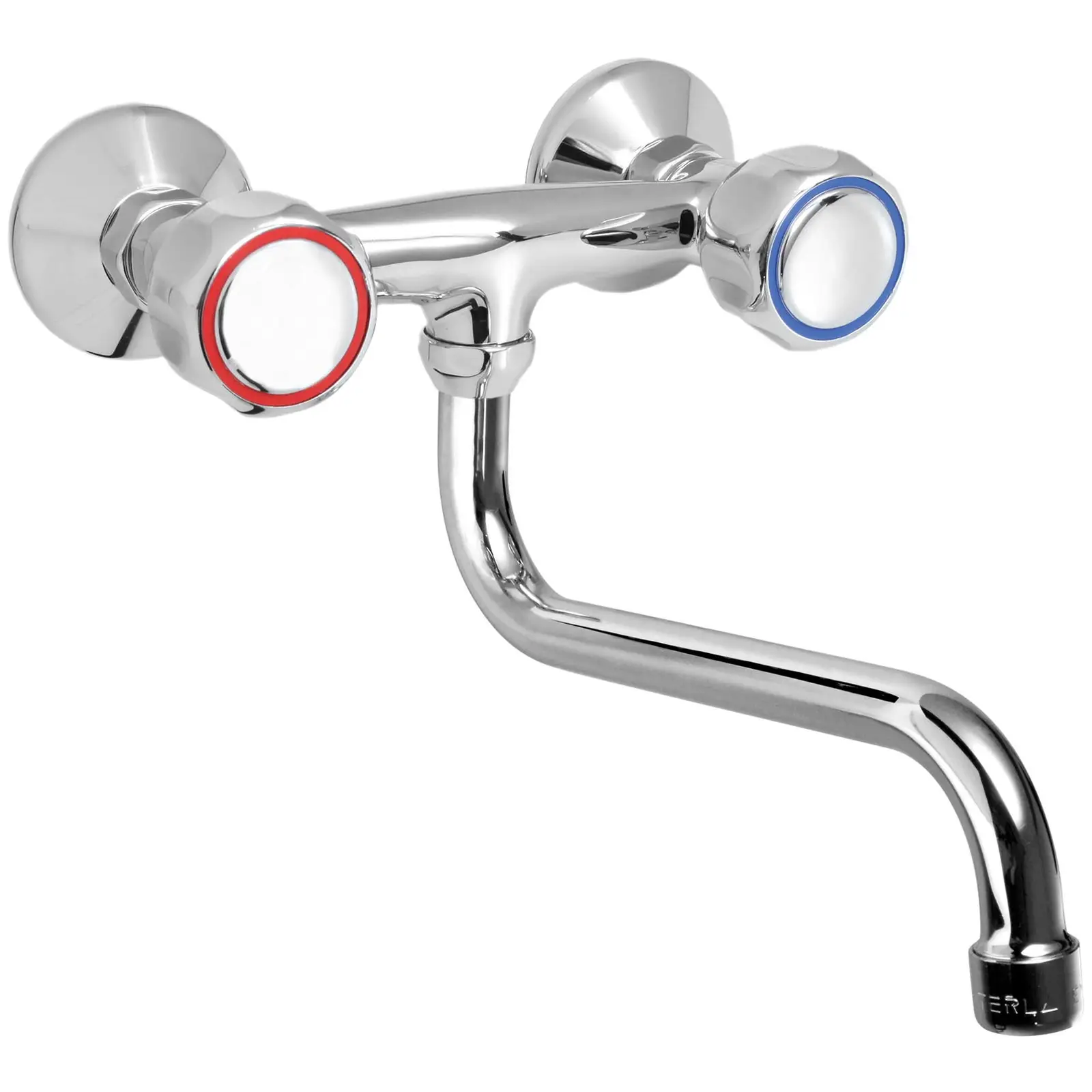 Monikäyttöinen hana kääntyvällä juoksuputkella MO-TA-01 tarjoaa 220 mm pitkällä hanallaan korkeatasoista mukavuutta tiskatessa tai pestessä. Keittiössä tai kylpyhuoneessa, yksityistalouksissa tai ravintoloissa, kouluissa tai muilla käyttöalueilla: Neutraalin muotoilunsa ansiosta hana soveltuu mihin tahansa sisustustyyliin ja on jokaisessa ympäristössä erittäin kätevä. Seinäasennuksen ja pitkittäisen muotonsa ansiosta hana sopii erityisen hyvin korkeiden lasien tai kookkaampien esineiden pesemiseen ammatti- ja yksityisissä keittiöissä. Kaksioteseinähanan materiaaliksi on valikoitunut kromattu messinki sen tarjoamien lukuisten etujen vuoksi: Sileä ja helposti puhdistettava pinta takaa hygieenisen ja vaivattoman työskentelyn haastavissakin tilanteissa. Samanaikaisesti tämä materiaali on erityisen kestävä ja tarjoaa yhdessä erinomaisen työstön kanssa erityisen pitkän käyttöiän. Keittiöon tai kylpyhuoneeseen suunnitellussa hanassa on värilliset merkinnät kylmälle (sininen) ja lämpimälle (punainen) vedelle hanan mutkatonta käyttöä ja oikean lämpötilan nopeaa säätöä varten. G1 / 2 ”- G3/4”- liitännän kautta asennus on hyvin yksinkertaista ja intuitiivista, ja jokainen osaa suorittaa sen ongelmitta. Hana kahdella liitännällä on nopea ja helppo asennettava. Lämpimän tai kylmän veden liitäntöjen on sijaittava 150 ± 20 mm:n etäisyydellä.