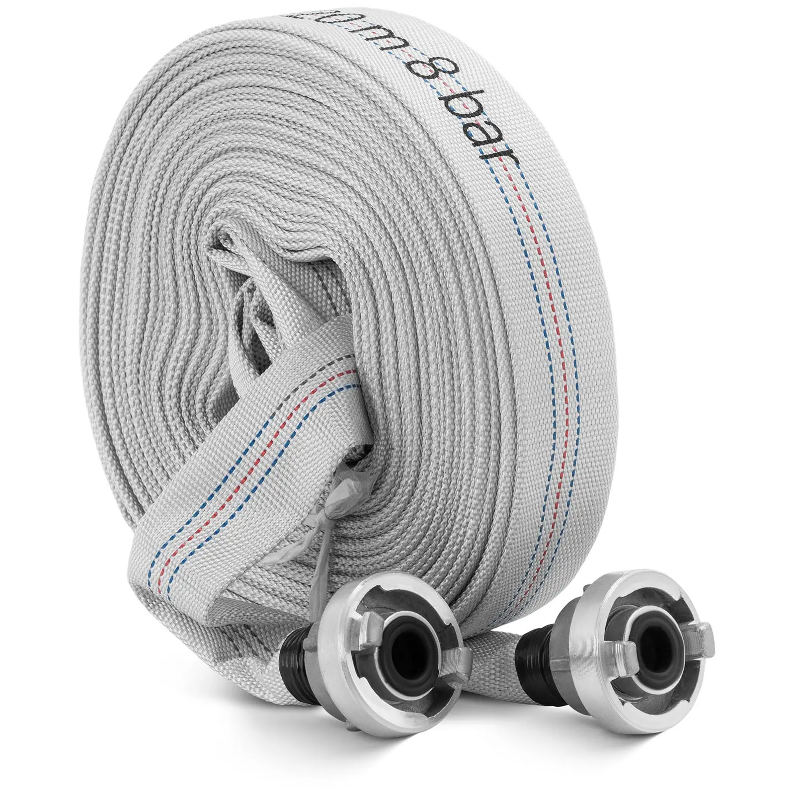 Tämä vesiletku tarjoaa lukuisia etuja: Se on kestävä, voidaan rullata tilaa säästävästi ja tarjoaa monipuolisia käyttömahdollisuuksia. Lisäksi hillvert yhdistää nämä edut erityisen korkeaan laatuun ja kestävyyteen. Polyvinyylikloridista (PVC) valmistettu ja polyesterillä päällystetty litteä letku sopii käytettäväksi jopa 0 – 8 baarin paineella. Tämä tekee letkusta ihanteellisen monenlaisiin haasteisiin kotona, rakennustyömaalla, maataloustöissä ja teollisuuden alalla. Se on esimerkiksi oivallinen kasteluletku viljelytöihin tai imuletku uppopumpulle. Paloletku tarjoaa 1″ halkaisijallaan (25 mm) ja 20 metrin pituudellaan suuren virtausnopeuden erilaisille nesteille. Valikoimastamme löydät myös muita letkumalleja eri halkaisijoilla ja pituuksilla. Voitkin siis helposti valita juuri sinun tarpeisiisi parhaiten sopivan letkun. Tarjoamme sinulle verkkokaupassamme myös sopivat liitännät ja muut tarvikkeet.