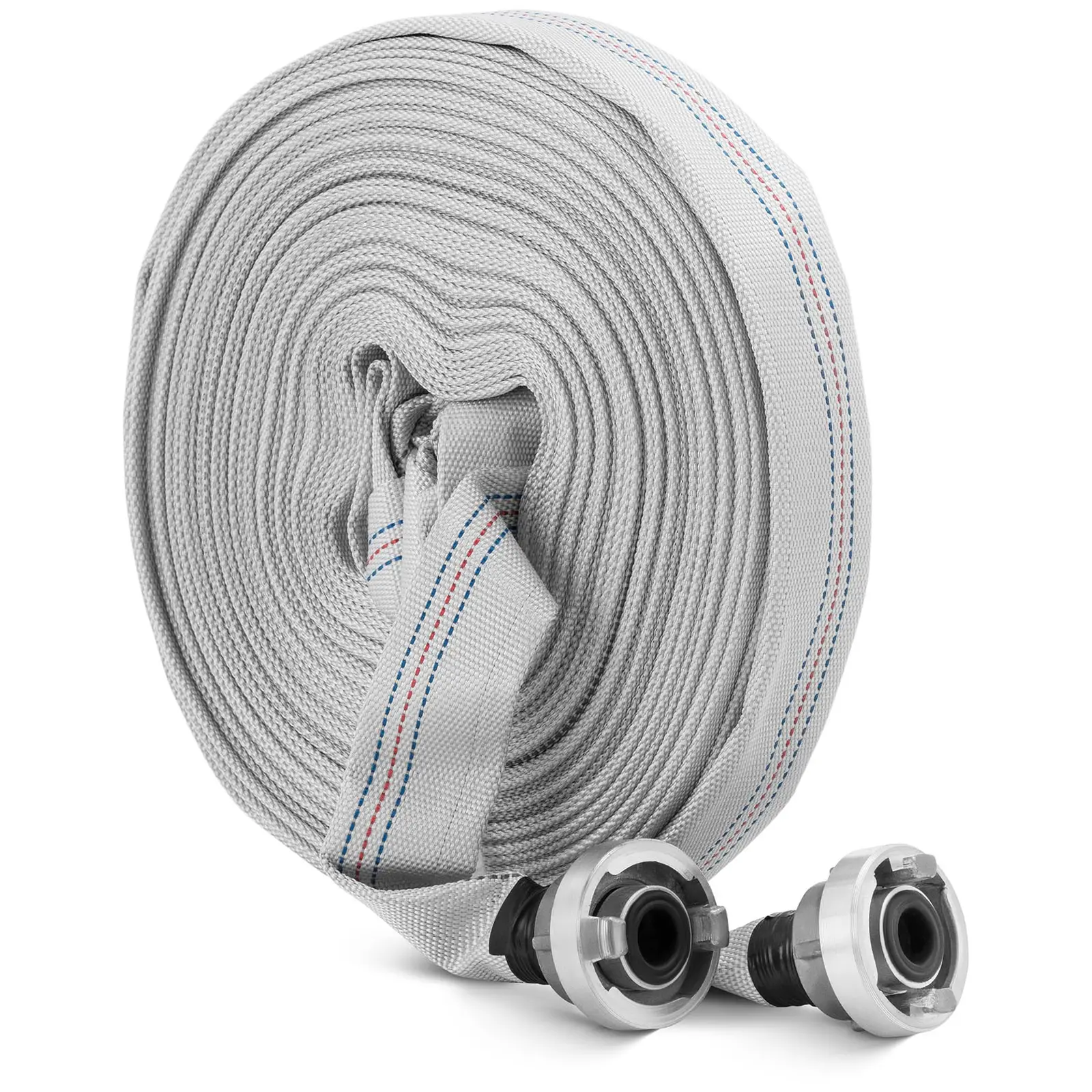 Tämä vesiletku tarjoaa lukuisia etuja: Se on kestävä, voidaan rullata tilaa säästävästi ja tarjoaa monipuolisia käyttömahdollisuuksia. Lisäksi hillvert yhdistää nämä edut erityisen korkeaan laatuun ja kestävyyteen. Polyvinyylikloridista (PVC) valmistettu ja polyesterillä päällystetty litteä letku sopii käytettäväksi jopa 0 – 8 baarin paineella. Tämä tekee letkusta ihanteellisen monenlaisiin haasteisiin kotona, rakennustyömaalla, maataloustöissä ja teollisuuden alalla. Se on esimerkiksi oivallinen kasteluletku viljelytöihin tai imuletku uppopumpulle. Paloletku tarjoaa 1″ halkaisijallaan (25 mm) ja 30 metrin pituudellaan suuren virtausnopeuden erilaisille nesteille. Valikoimastamme löydät myös muita letkumalleja eri halkaisijoilla ja pituuksilla. Voitkin siis helposti valita juuri sinun tarpeisiisi parhaiten sopivan letkun. Tarjoamme sinulle verkkokaupassamme myös sopivat liitännät ja muut tarvikkeet.